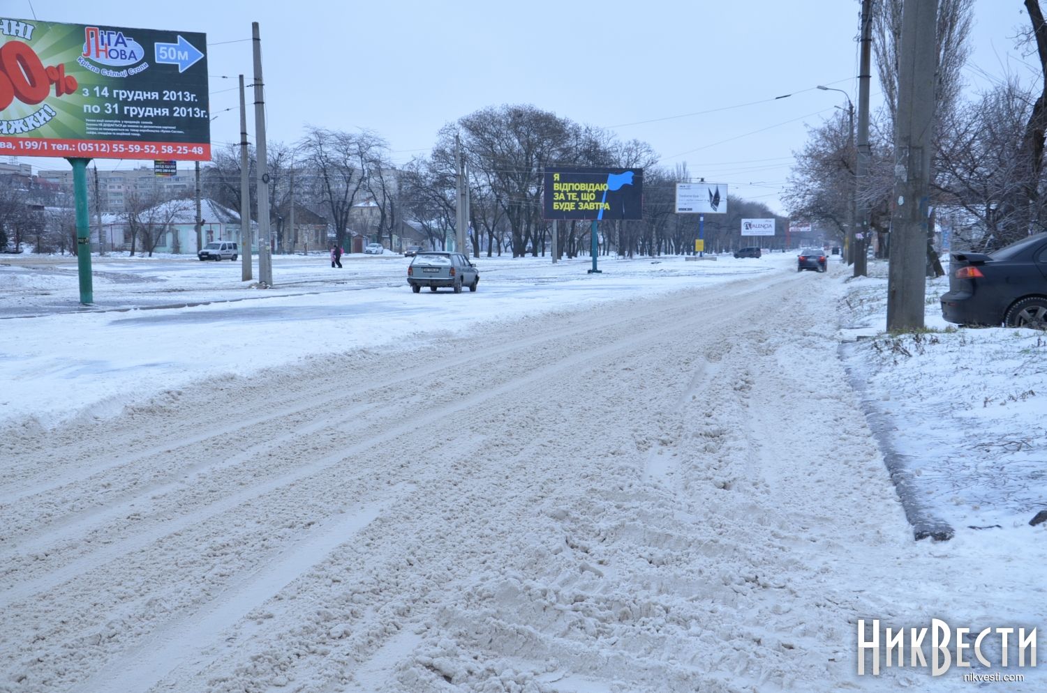 Как известно вчера, в полдень, в Николаеве действительно практически не были расчищены дороги. Снег и гололед наблюдался на ключевых магистралях центральной части города: проспектах Октябрьском, Ленина, Героев Ситалинграда, улицах Чигрина, Чкалова, Скороходова.