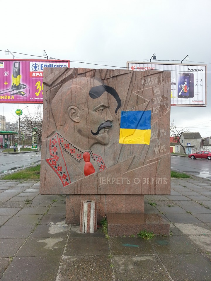 В Николаеве в ночь на 20 апреля неизвестные придали украинский колорит барельефу Ленина, который расположен на проспекте Ленина, возле Херсонского кольца.