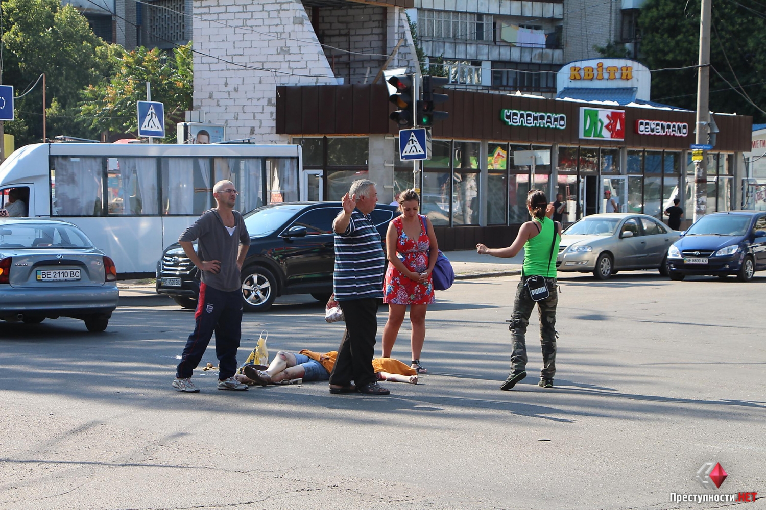 В понедельник, 20 июля, в Николаеве на пересечении проспекта Ленина и улицы Дзержинского произошло ДТП с участием маршрутного такси №21 и троих пешеходов.