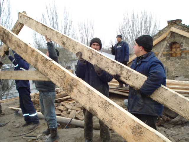 Ремонтная бригада компании «Жилпромстрой - 8» приступила к строительным работам по установке крыши в доме по Образцова, 6, где ранее под натиском снега обвалилась кровля.