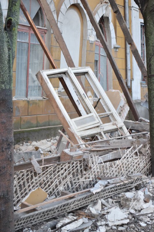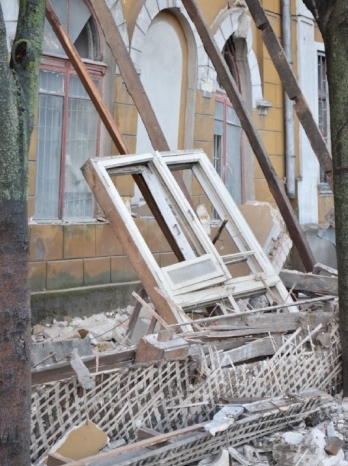 Аварийное здание, расположенное рядом со школой фехтования, полностью обрушилось