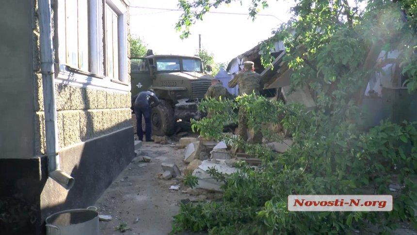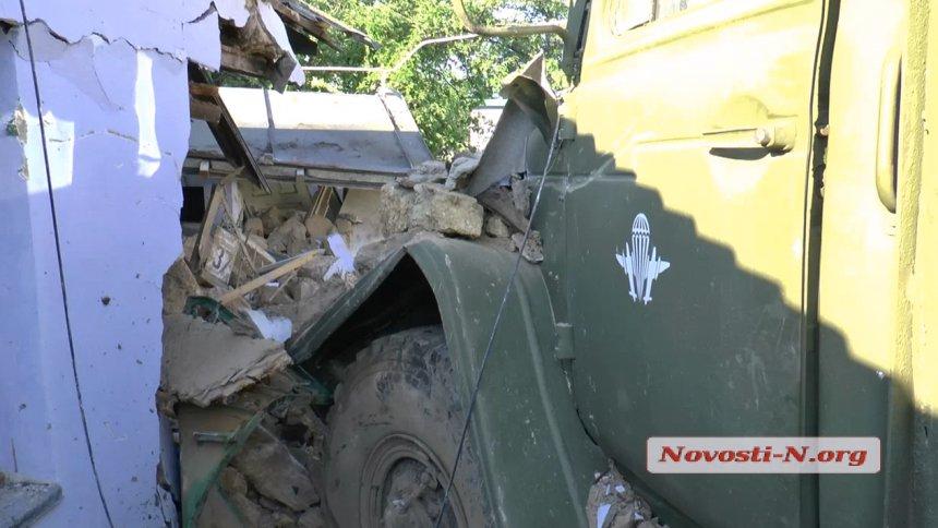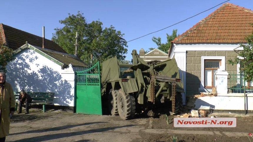Ранним утром в воскресенье, 8 мая, в поселке Терновка в Николаеве военный автомобиль «Урал» разрушил ворота, въехал во двор частного дома, где снес летнюю кухню.