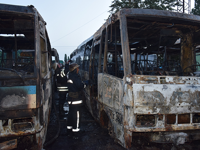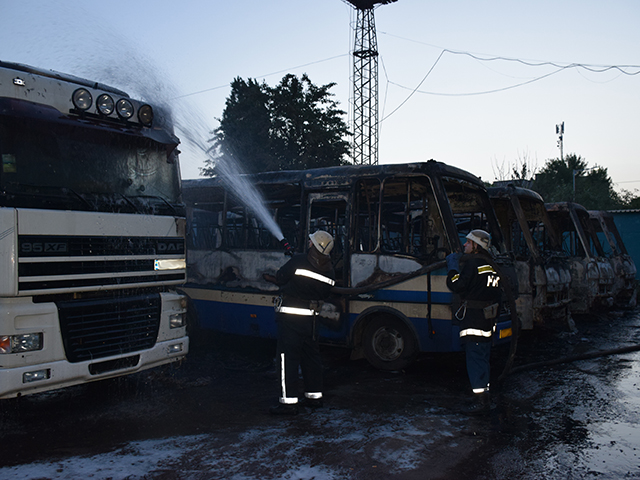 – Трое проникли на территорию предприятия, где фирма арендовала места под свои автобусы, и забросала коктейлями Молотова транспорт предприятия, в результате пострадало 7 автобусов, 6 из них сгорели полностью, – говорится в сообщении Ассоциации на странице в Facebook.