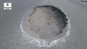 Патрульные предупреждают водителей об опасных выбоинах на дорогах Николаева
