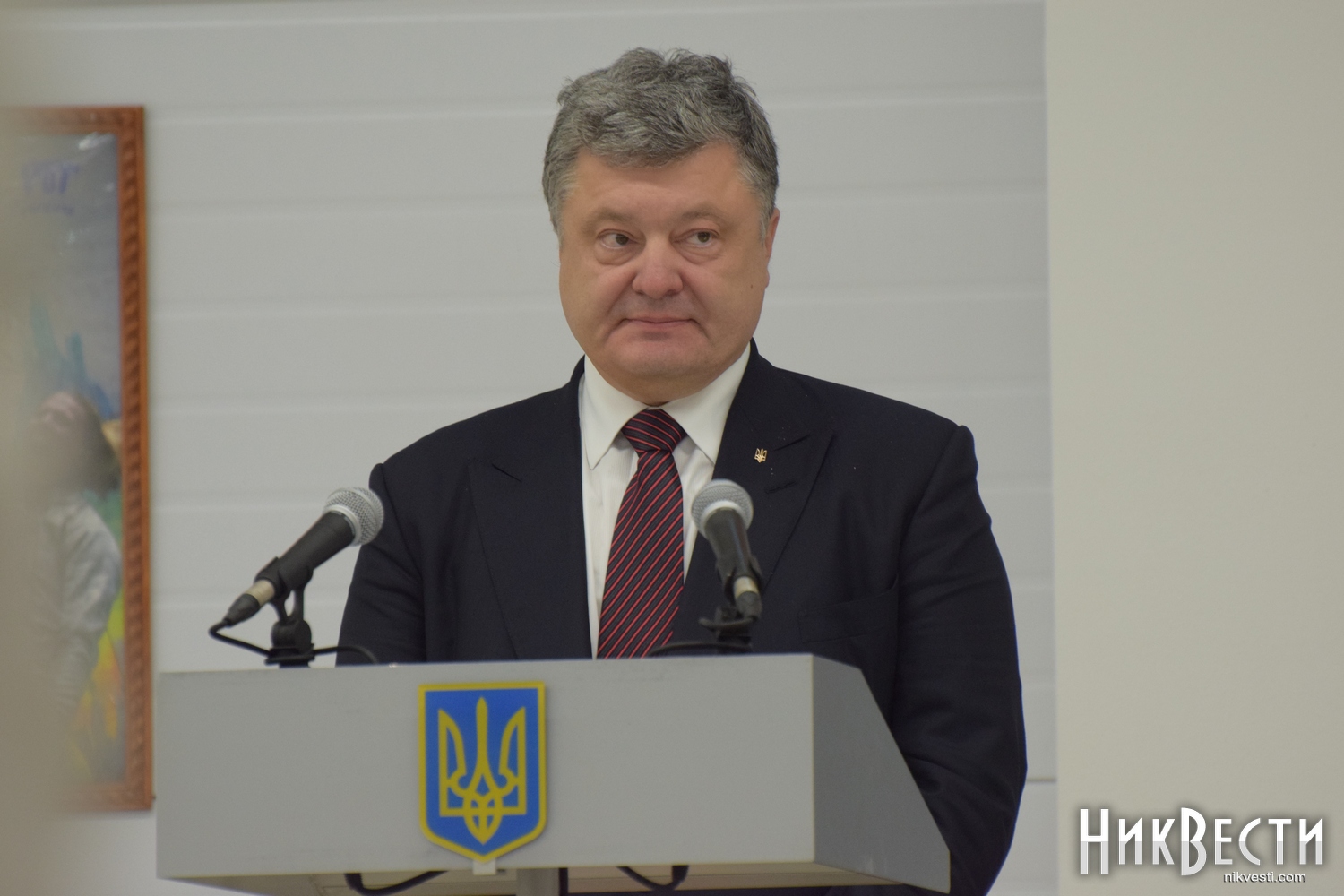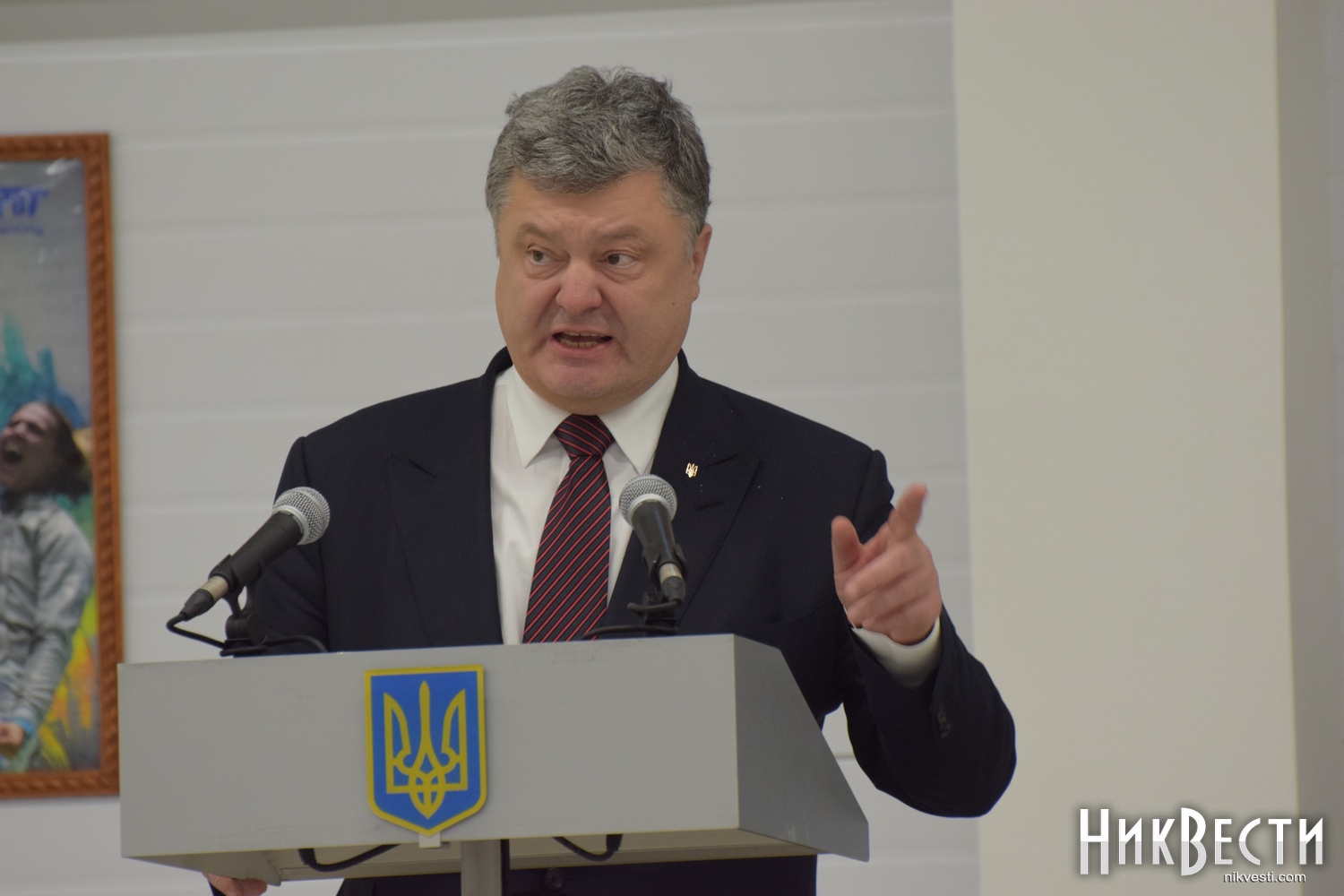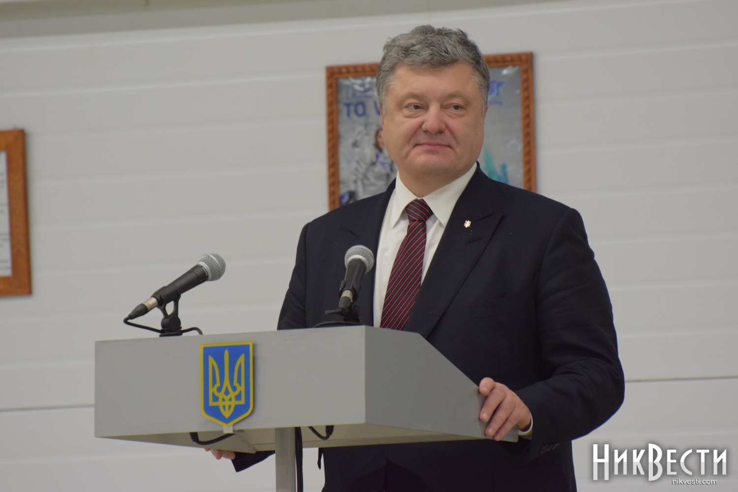 Сегодня, 12 января, президент Украины Петр Порошенко в Николаеве принял участие в официальном открытии нового фехтовального зале в парке «Победа».