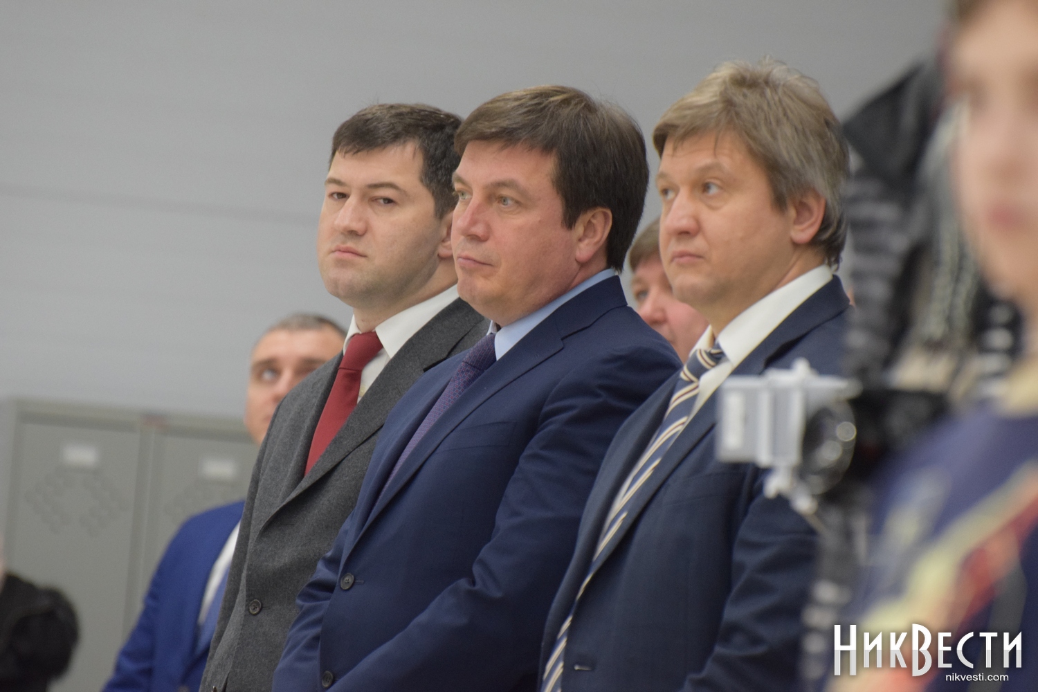 Главу государства сопровождают вице-премьер-министр — министр регионального развития, строительства и жилищно-коммунального хозяйства Украины Геннадий Зубко, члены Кабинета Министров Украины, глава Николаевской облгосадминистрации Алексей Савченко, глава областного совета Виктория Москаленко, городской голова Александр Сенкевич, выдающаяся николаевская фехтовальщица, олимпийская, многократная чемпионка мира и Европы Ольга Харлан, а также народные депутаты Украины.