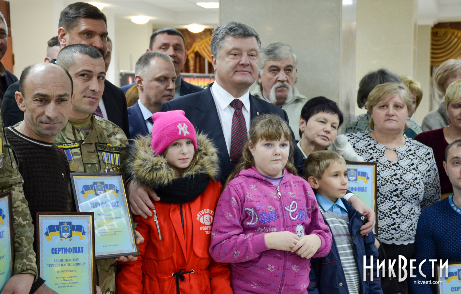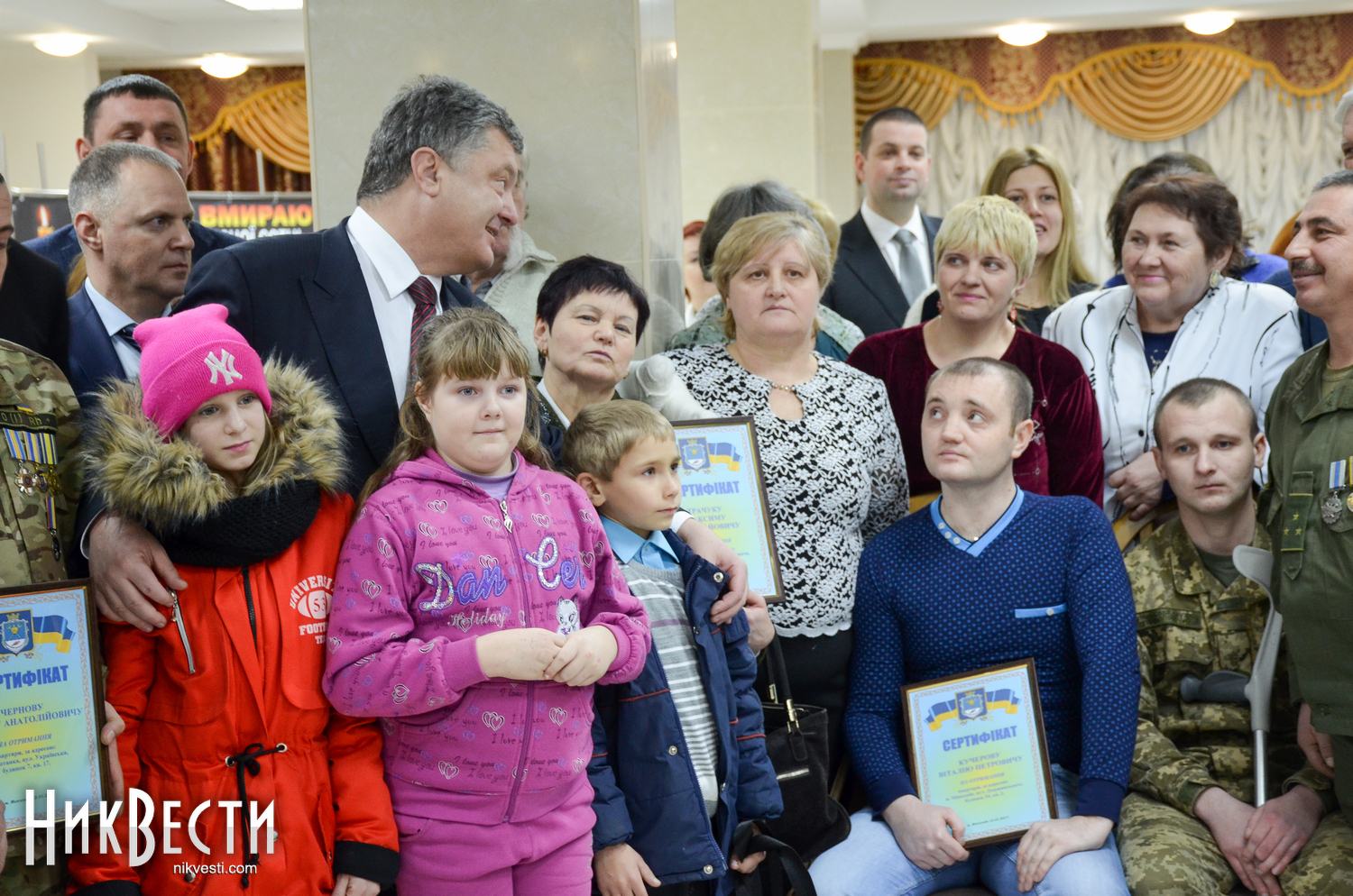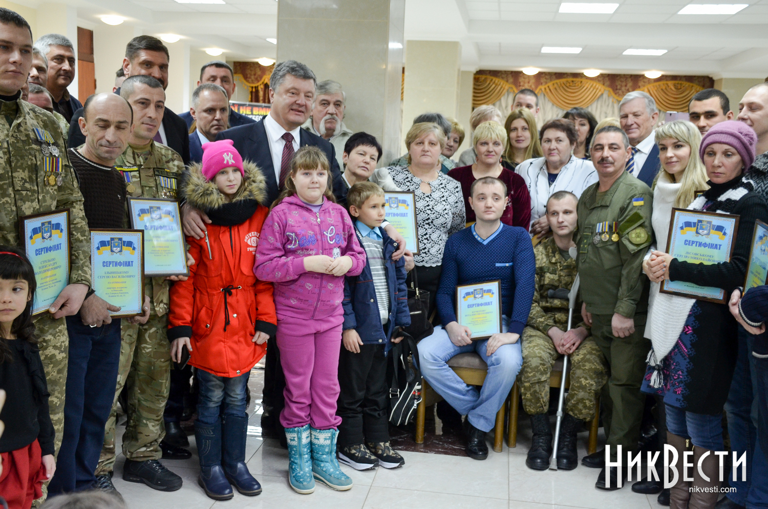 Президент Украины Петр Порошенко вручил сертификаты и ключи от квартир 15 николаевским военнослужащим-ветеранам АТО. Глава государства также отметил председателя Николаевской облгосадминистрации Алексея Савченко за работу с военными.