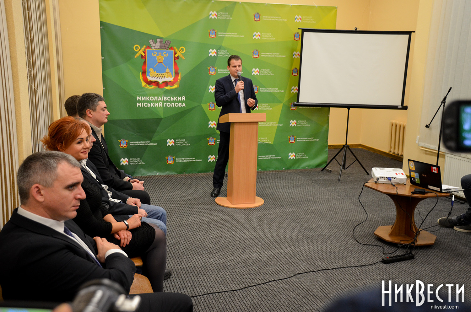 В ходе мероприятия, которое проходило в формате пресс-брифинга, мэр представил свою команду. С презентациями выступили руководитель «Агентства развития Николаева» Василий Гошовский, главный архитектор Николаева Анна Палеха, советник мэра Андрей Ермолаев, заместитель городского головы по вопросам энергоэффективности Александр Омельчук, начальник управления коммунальной собственности Юрий Гавриш, вице-мэры Валентин Гайдаржи и Евгений Шевченко.