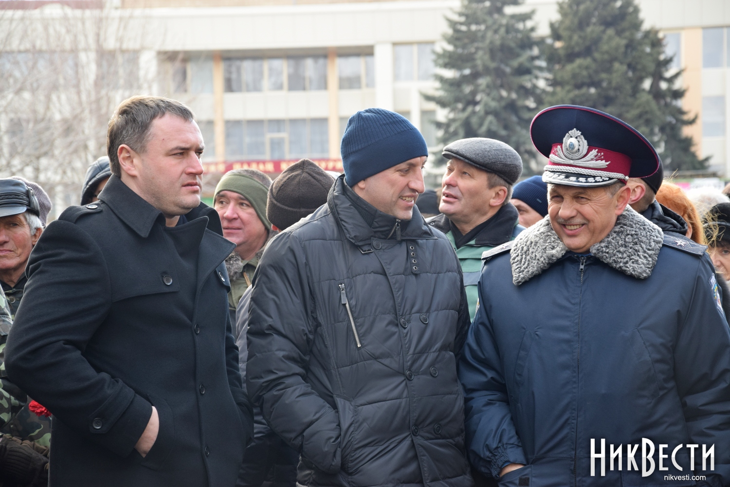 В мероприятии приняли участие представители руководства города: заместители городского головы Валентин Гайдаржи и Евгений Шевченко, управляющий делами городского совета Владимир Степаненко, председатель Николаевской областной организации ветеранов Украины Николай Поротников и руководитель Николаевского областного союза воинов-интернационалистов и запаса Юрий Соловей.
