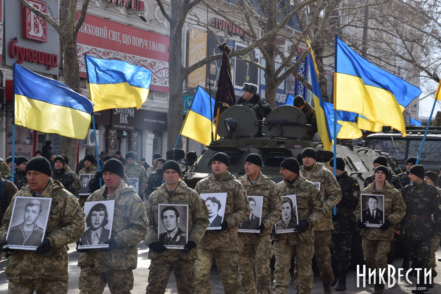 Сегодня, 15 февраля, в День чествования участников боевых действий на территории других государств николаевские воины-интернационалисты вместе с десантниками 79-й отдельной аэромобильной бригады, военнослужащими Национальной гвардии прошлись шествием от областного дворца культуры к мемориальному комплексу воинам-афганцам в парке «Победа».