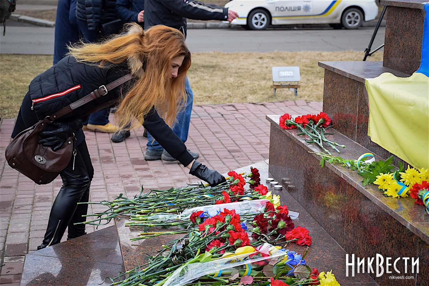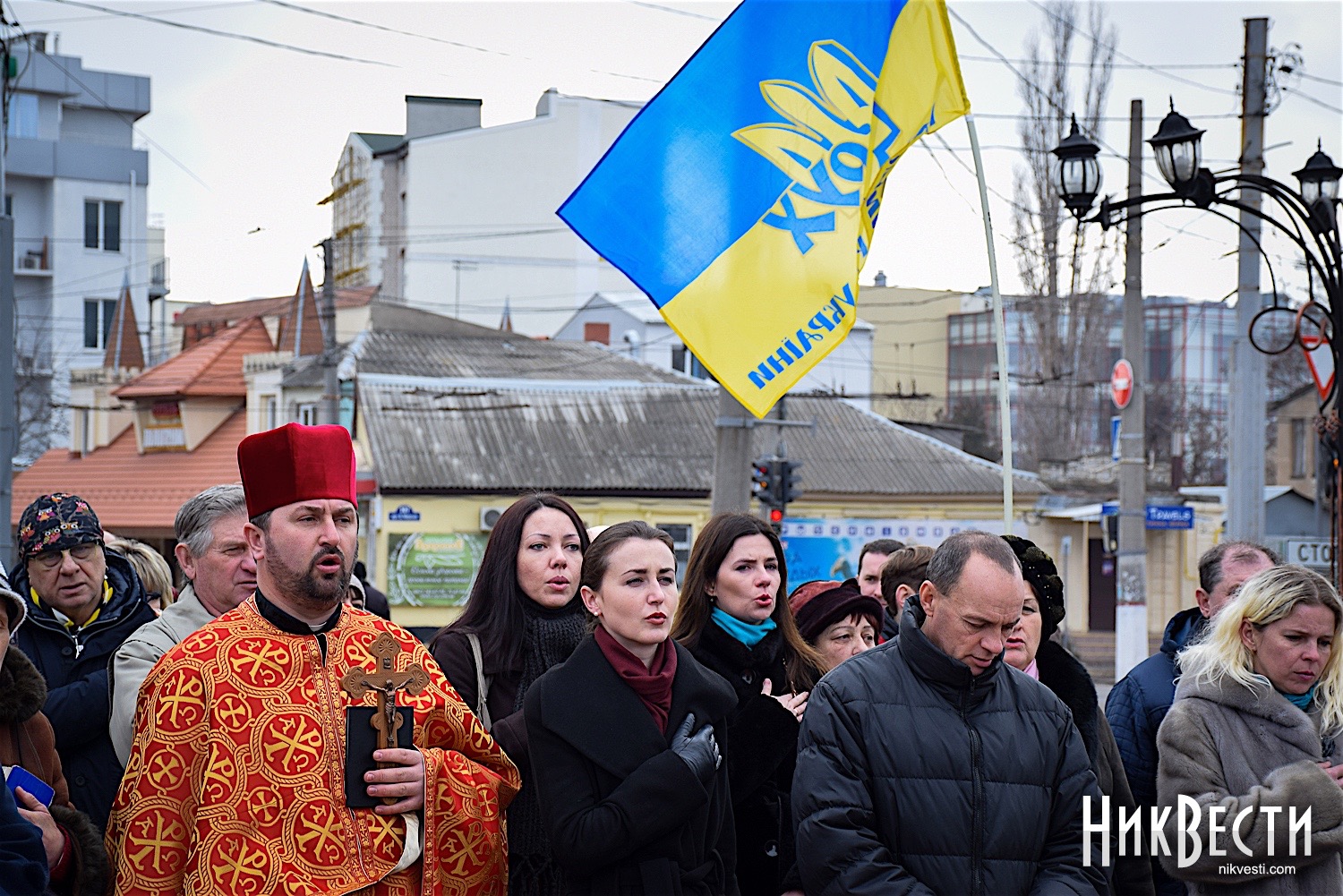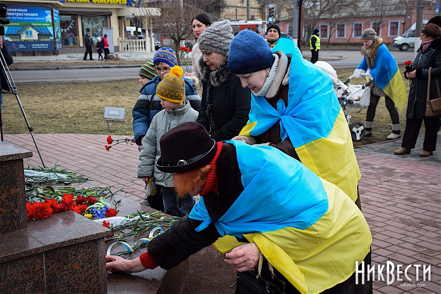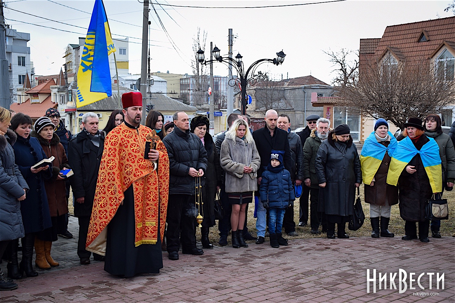 После николаевцы прошли шествием к памятнику Героям Небесной сотни, где состоялась панихида по погибшим во время кровавых событий, передают НикВести.