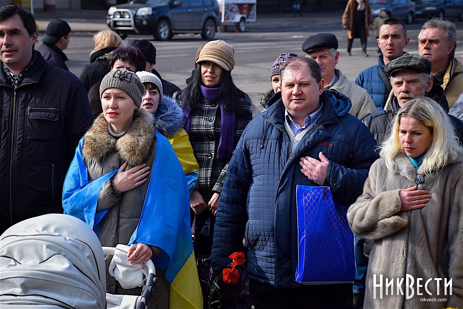 Сегодня, 19 февраля, на Соборной площади Николаева состоялось вече, посвященное третьей годовщине трагических событий на киевском Майдане в феврале 2014 года.