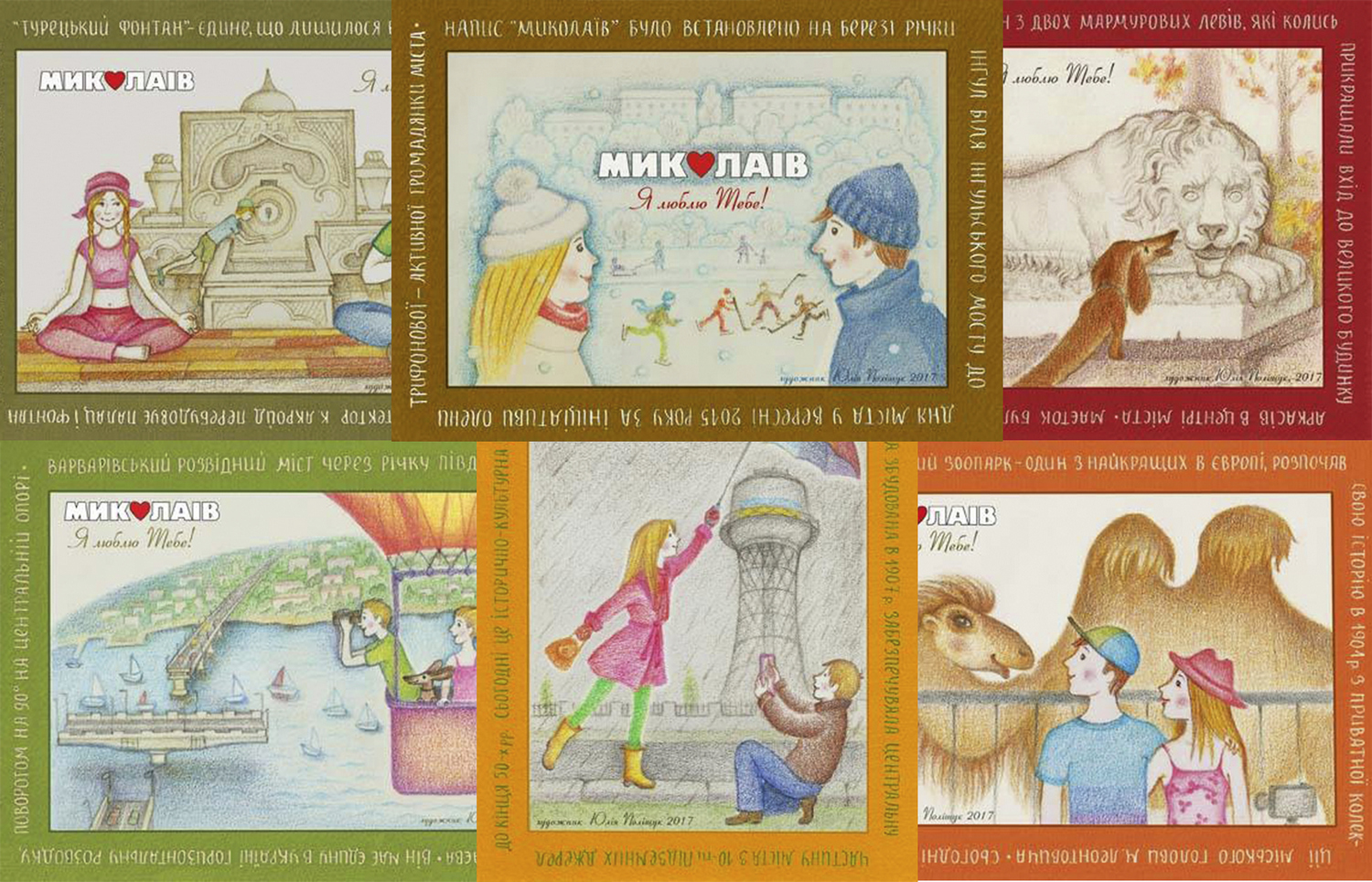 Во время презентации Юлия Полищук рассказала о каждой из шести открыток с изображением башни Шухова, Турецкого фонтана, аркасовского льва, Николаевского зоопарка, Варваровского разводного моста и приветственной надписи «Николаев».