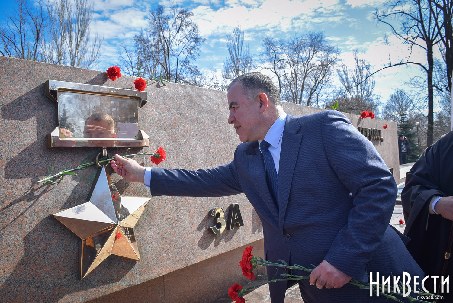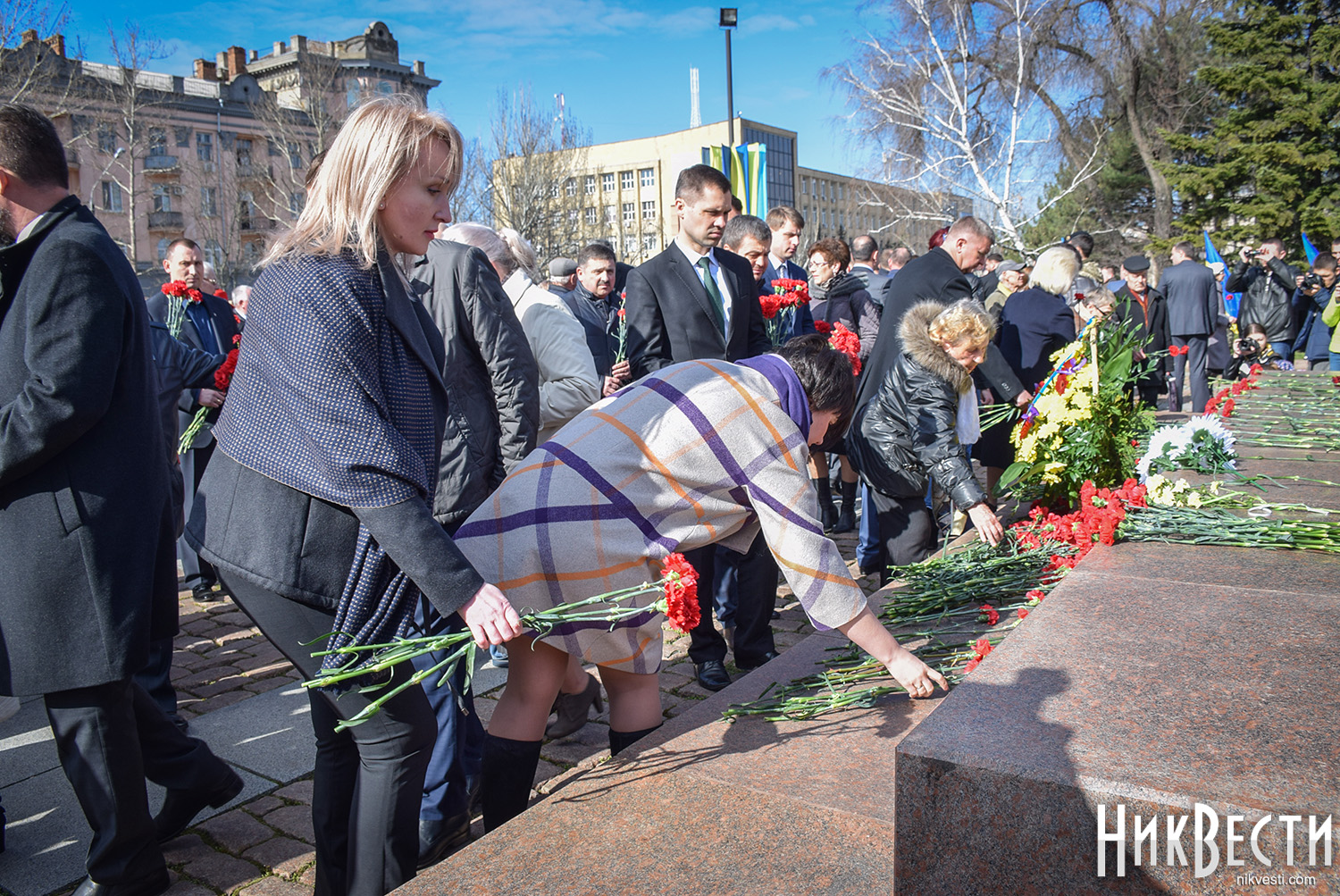 Вместе с горожанами цветы к памятнику возложил председатель Николаевской облгосадминистрации 2014-2016 годов Вадим Мериков.