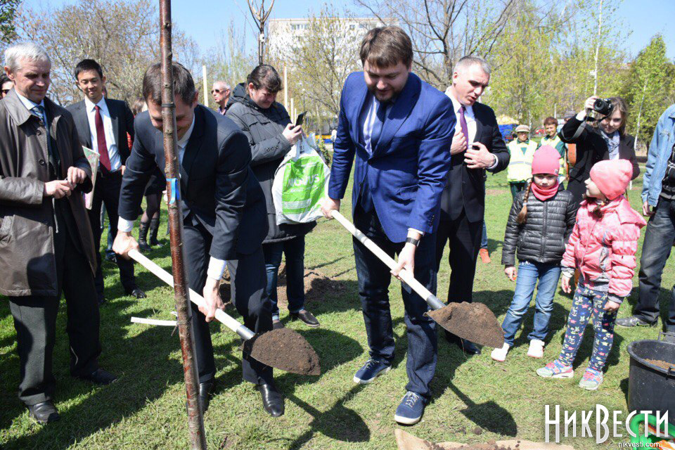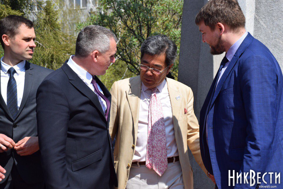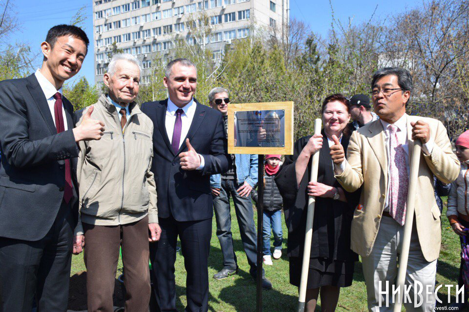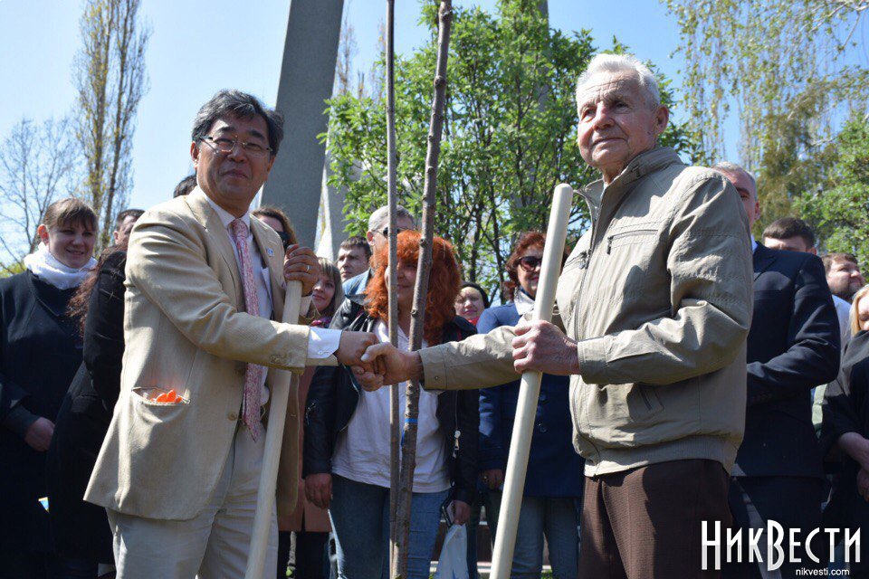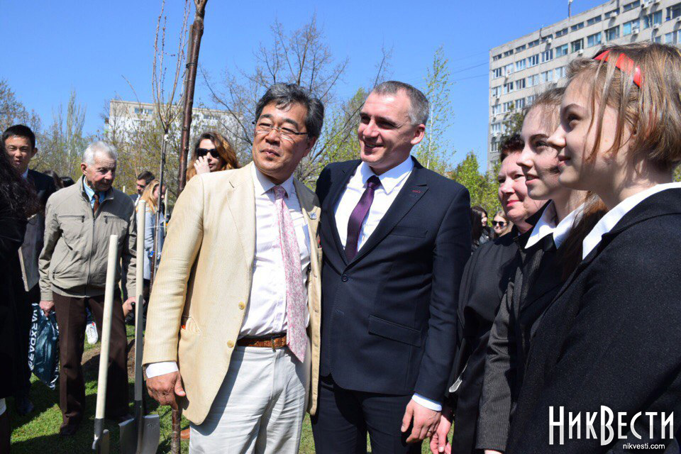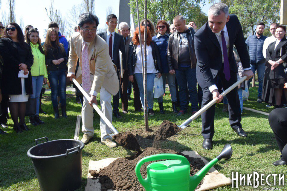 Деревья высаживали заместитель главы миссии, министр-советник Посольства Японии в Украине, господин Мичио Харада, дипломат Рьоскэ Уэно, городской голова Александр Сенкевич с заместителями Антоном Турупаловым и Мкртичом Мкртчяном. Также на мероприятии присутствовали глава Николаевского городского молодежного просветительского общества "Татикадзе" Галина Зиновьева, депутаты обласного и городского совета, - передает корреспондент НикВестей.