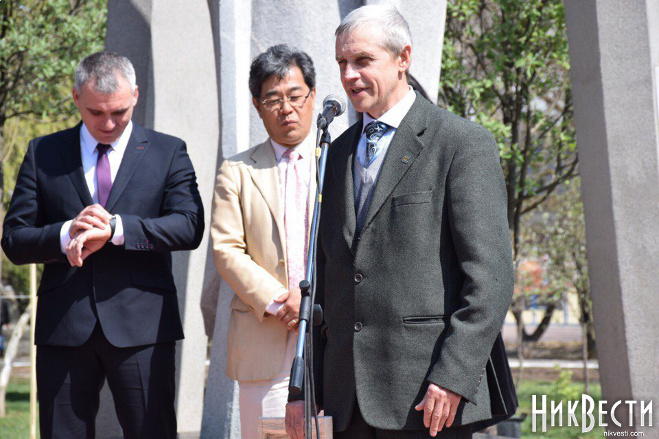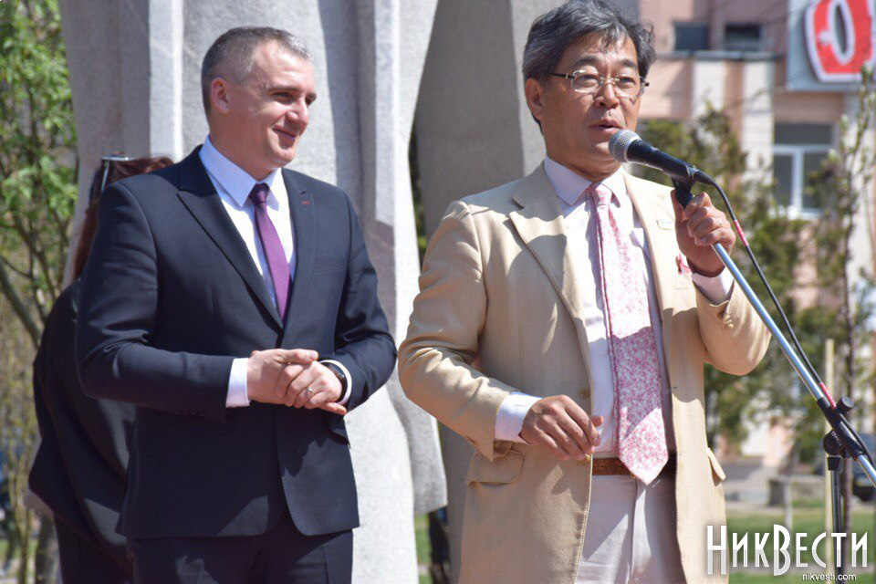 Перед самим высаживанием деревьев мэр Александр Сенкевич рассказал про планы относительно возможного дальнейшего сотрудничества Николаева и Японии.