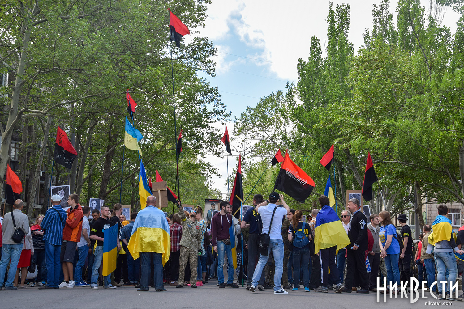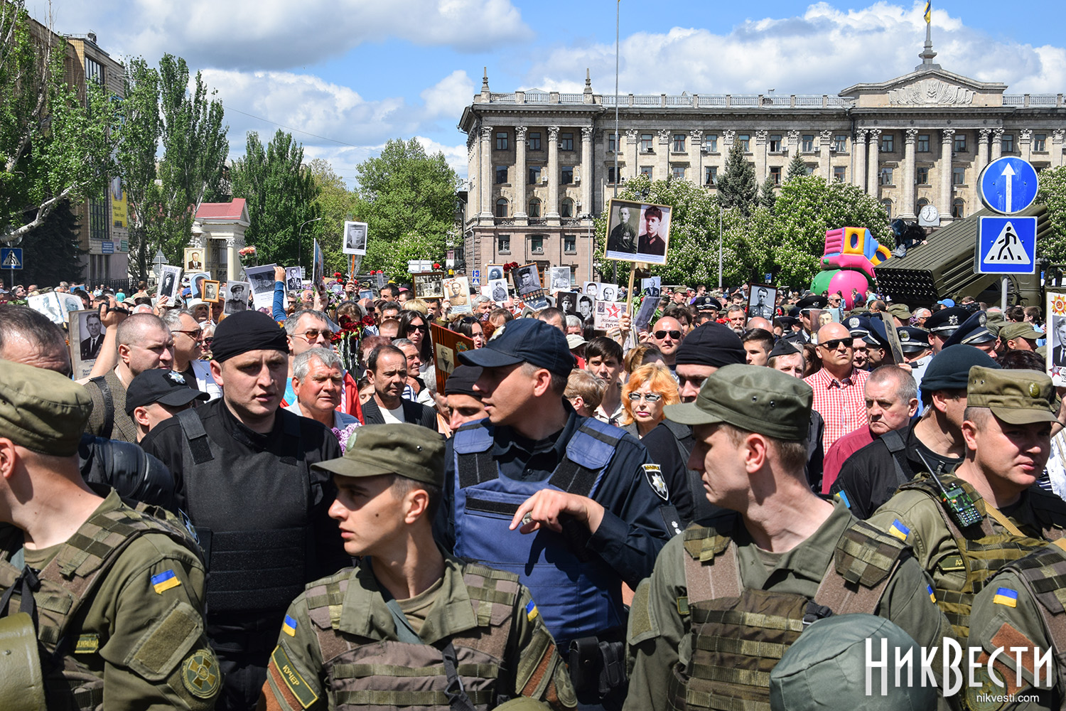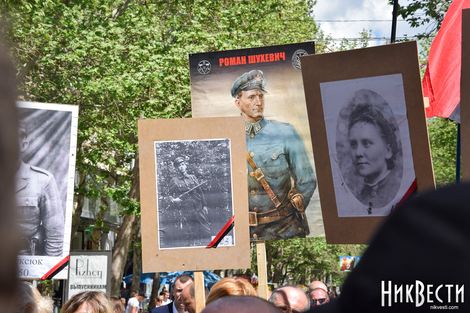 После этого на Соборной началась акция «Бессмертный полк», которая сопровождалась потасовками между националистами и участниками марша.