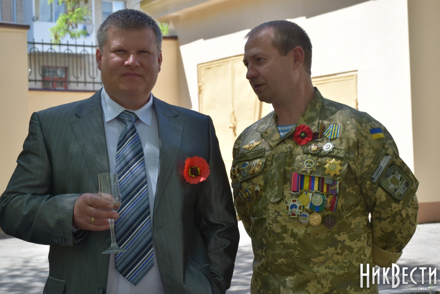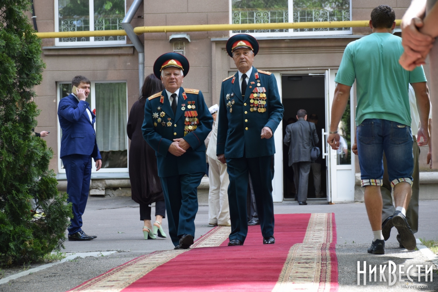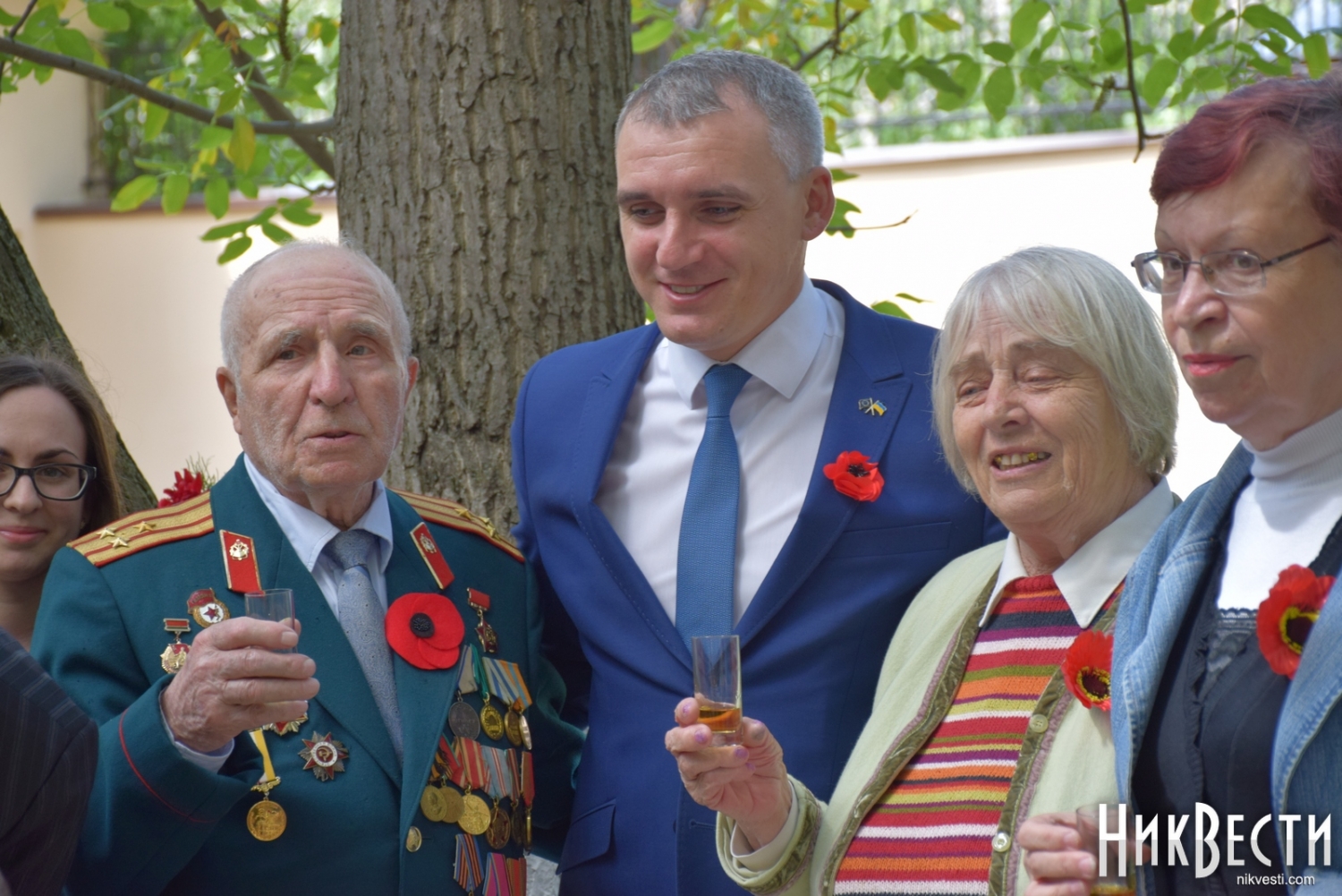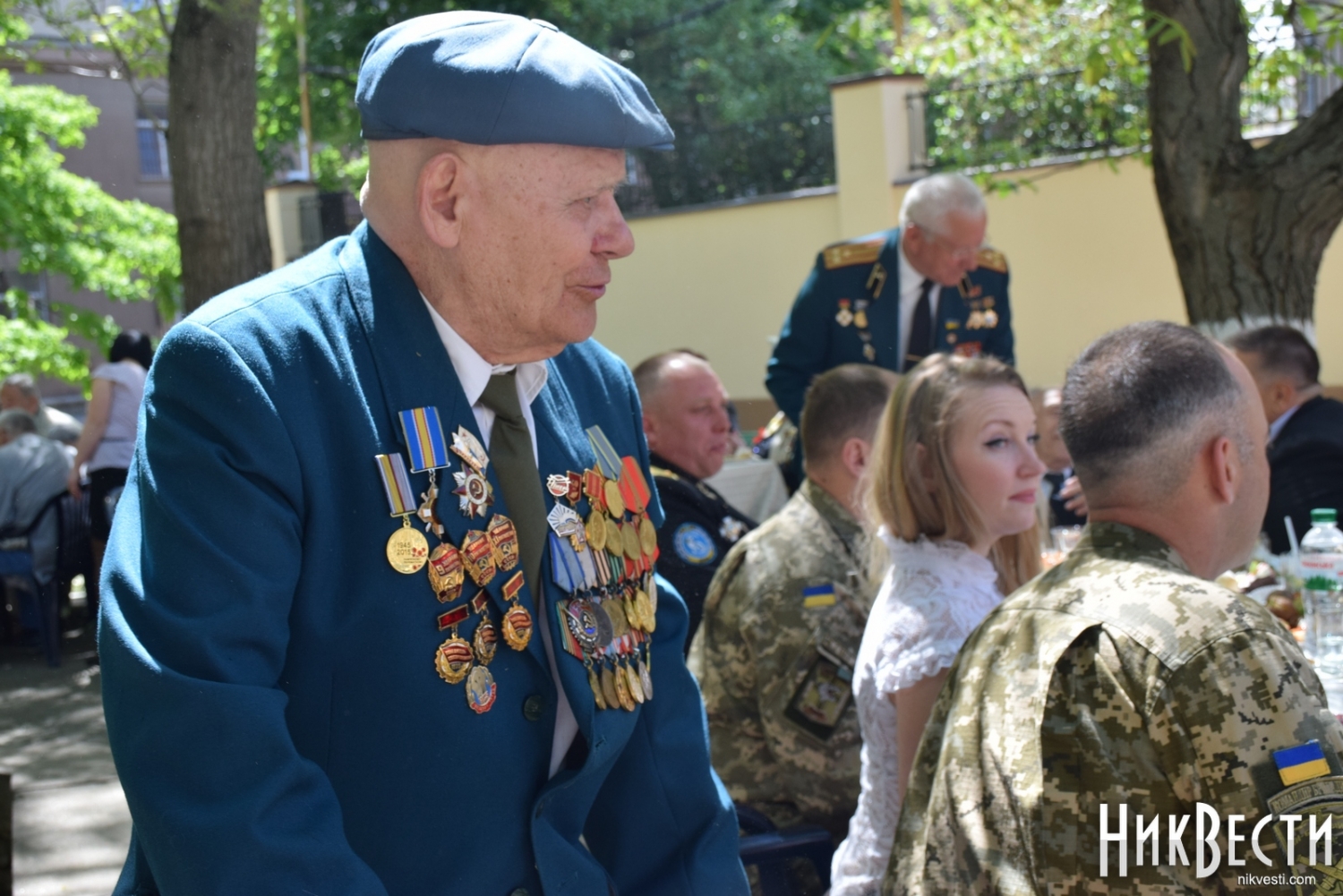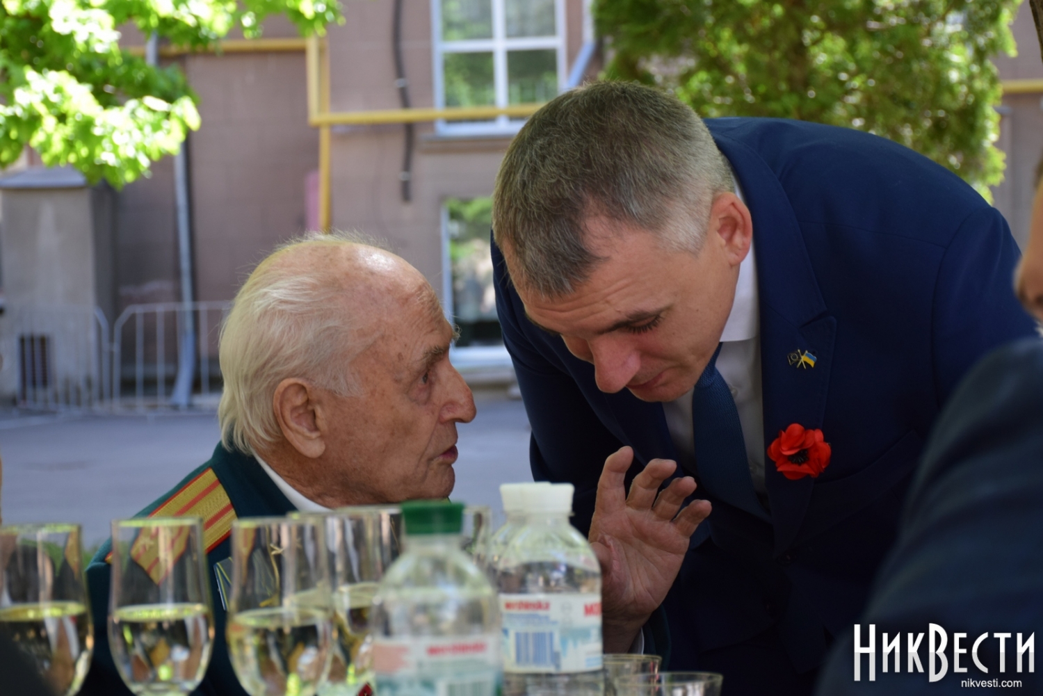 Ветераны пришли в мэрию, на задний дворик, где для них накрыли банкет. Мероприятие посетила глава Николаевского областного совета Виктория Москаленко, народный депутат Александр Жолобецкий, а также Митрополит Николаевский и Очаковский Питирим.