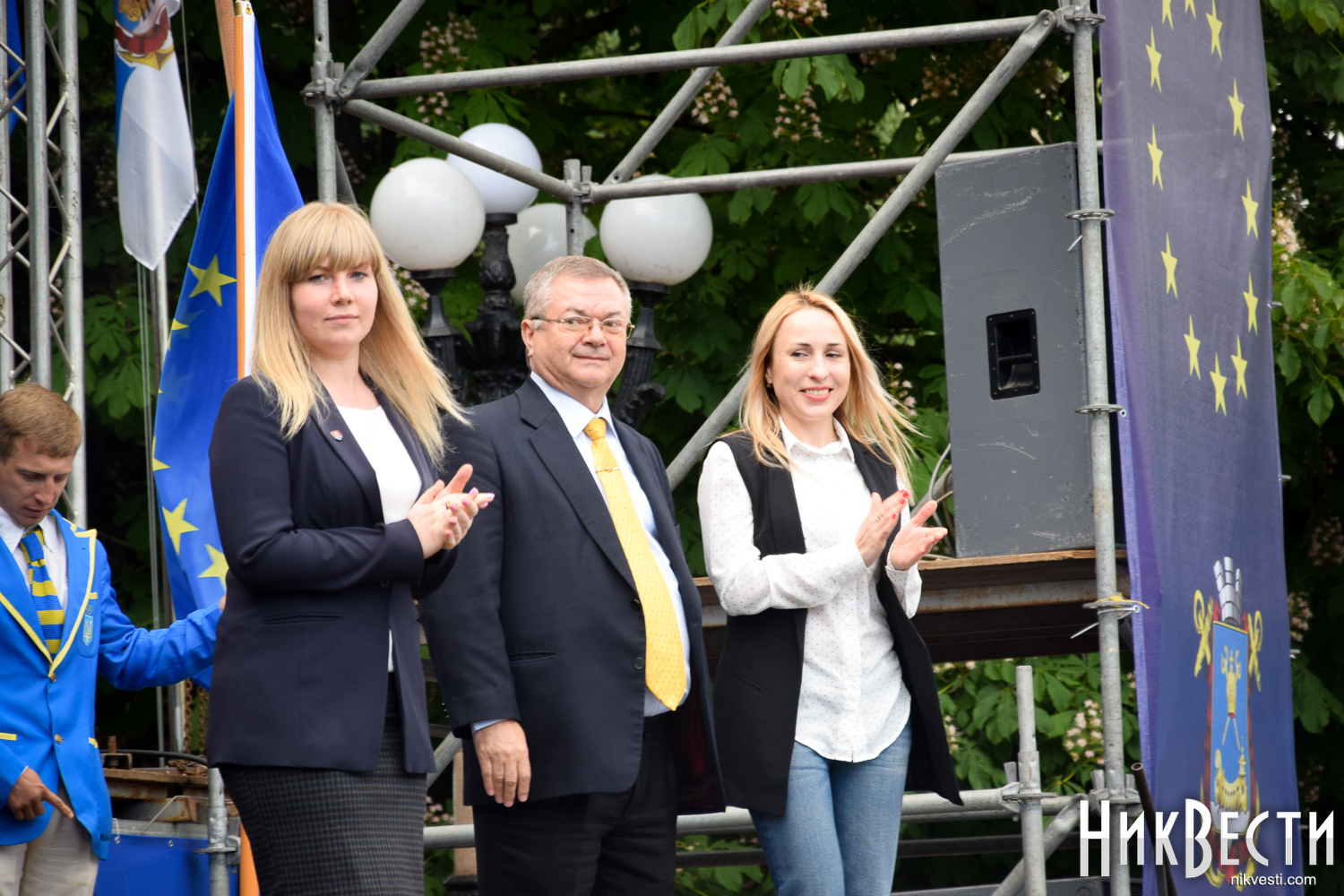 Поздравить николаевцев с Днем Европы пришли мэр Александр Сенкевич, глава областного совета Виктория Москаленко и генеральный консул Румынии в Одессе Эмил Рапча, передают НикВести.