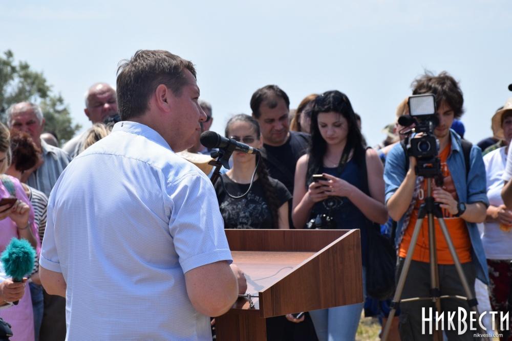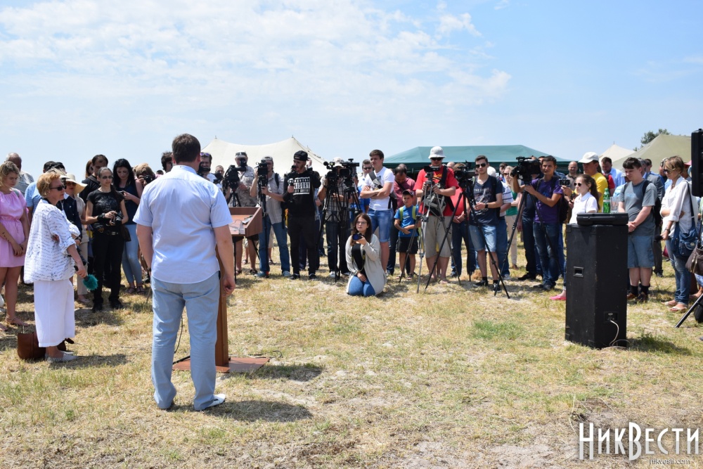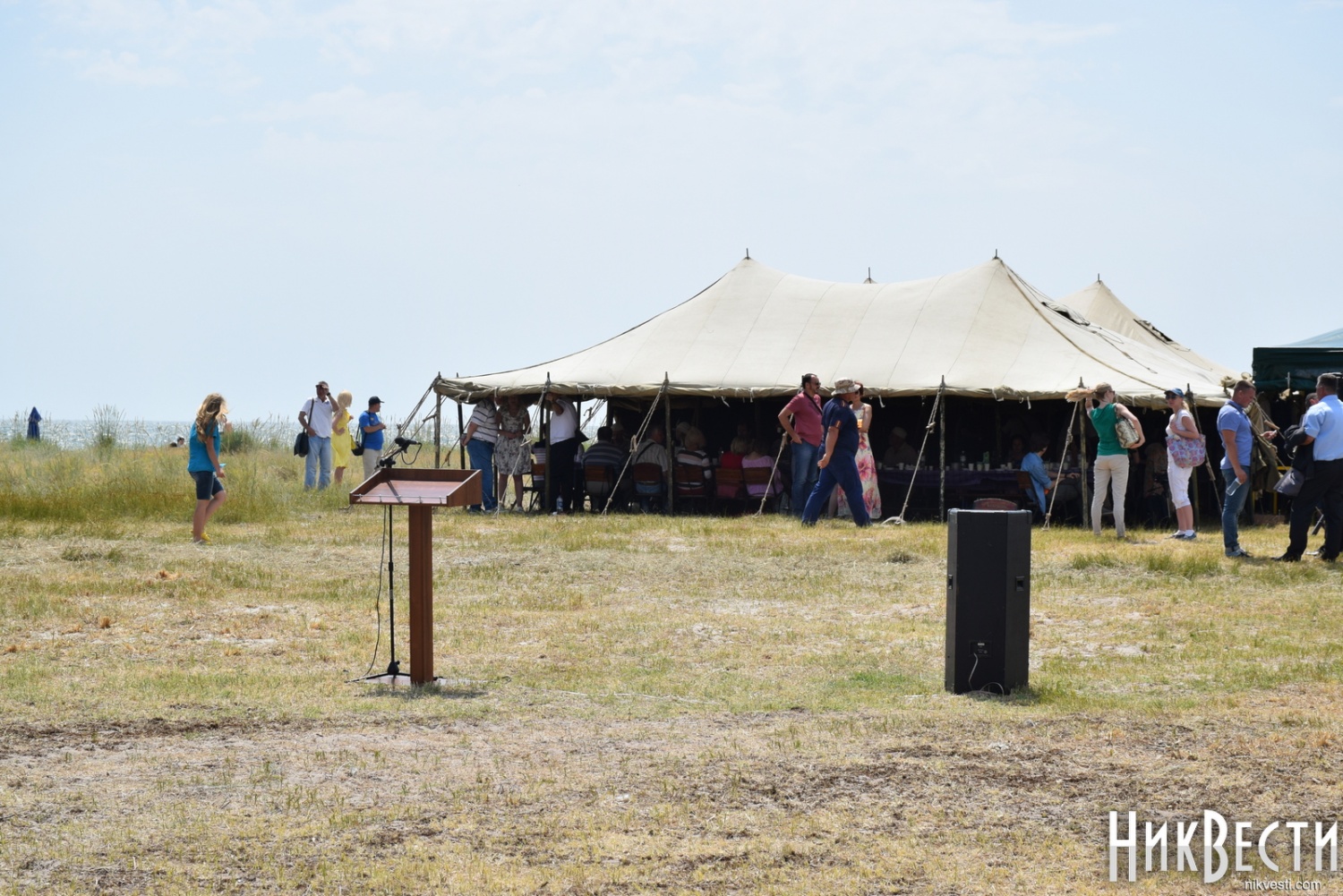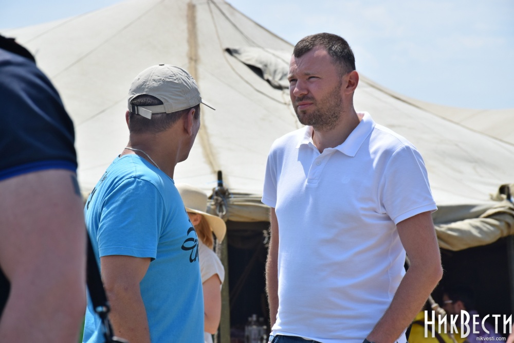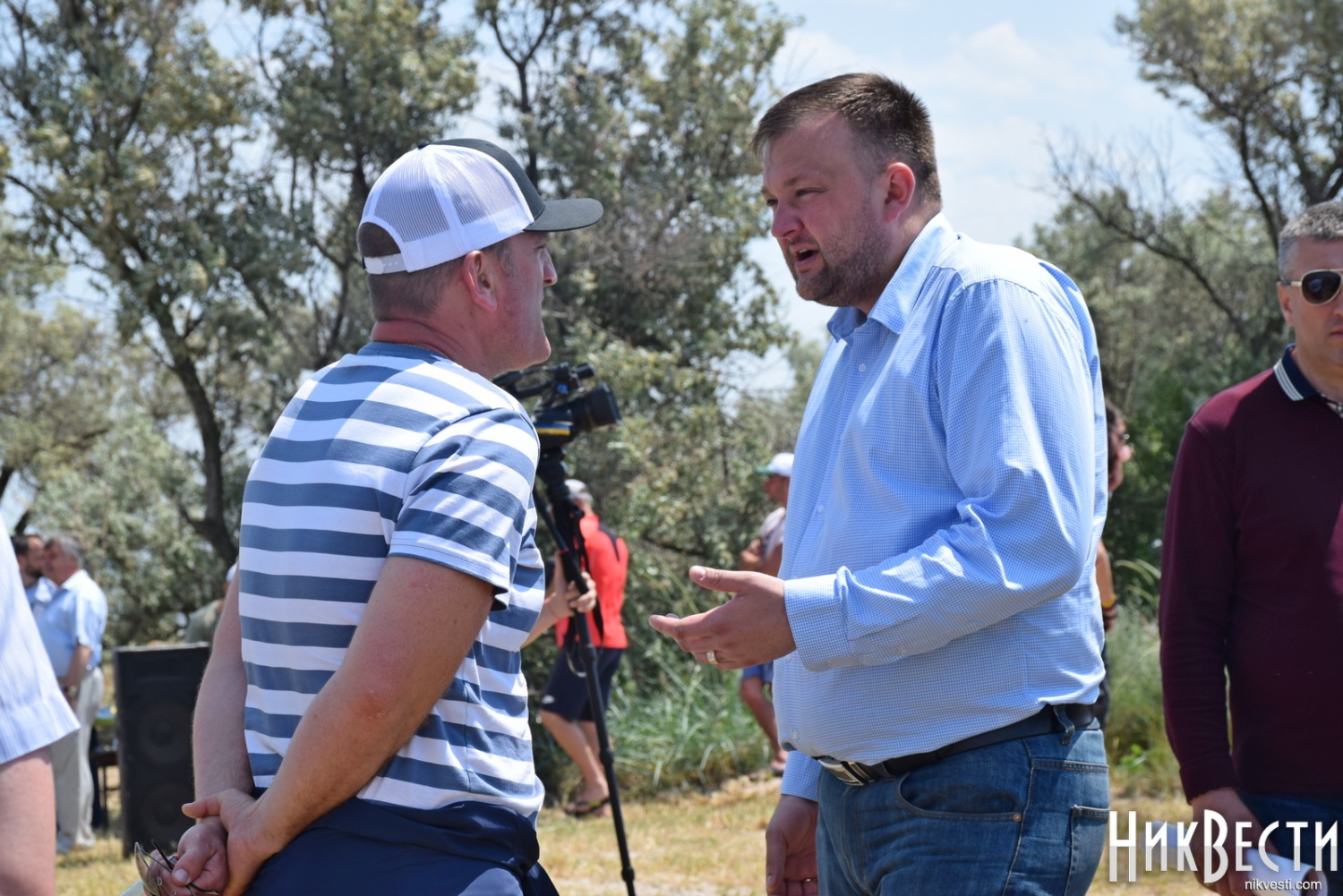 На Кинбурн одновременно прибыло сразу две «ракеты» - из Николаева и Херсона. Главу Херсонской области Андрея Гордеева на причале встретил председатель Николаевской областной государственной администрации Алексей Савченко. После встречи николаевская и херсонская делегации спустились на берег, где торжественно открыли причал.