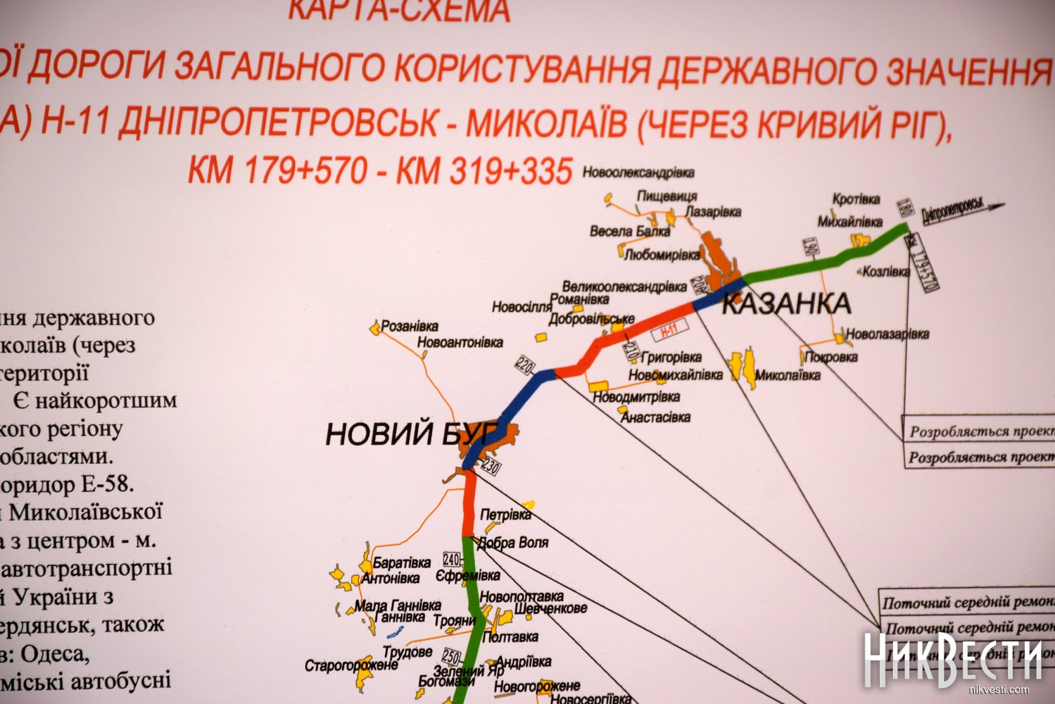В четверг, 29 июня, в Николаевской области начались дорожные работы на трех участках трассы Н-11 Днепропетровск – Николаев, на месте работ глава Николаевской облгосадминистрации Алексей Савченко объявил, что это позволит «объединить два района: Новобугский и Казансковский, а сейчас проехать между районами невозможно».