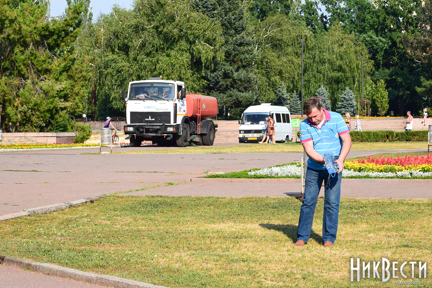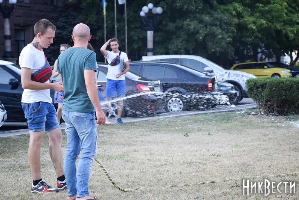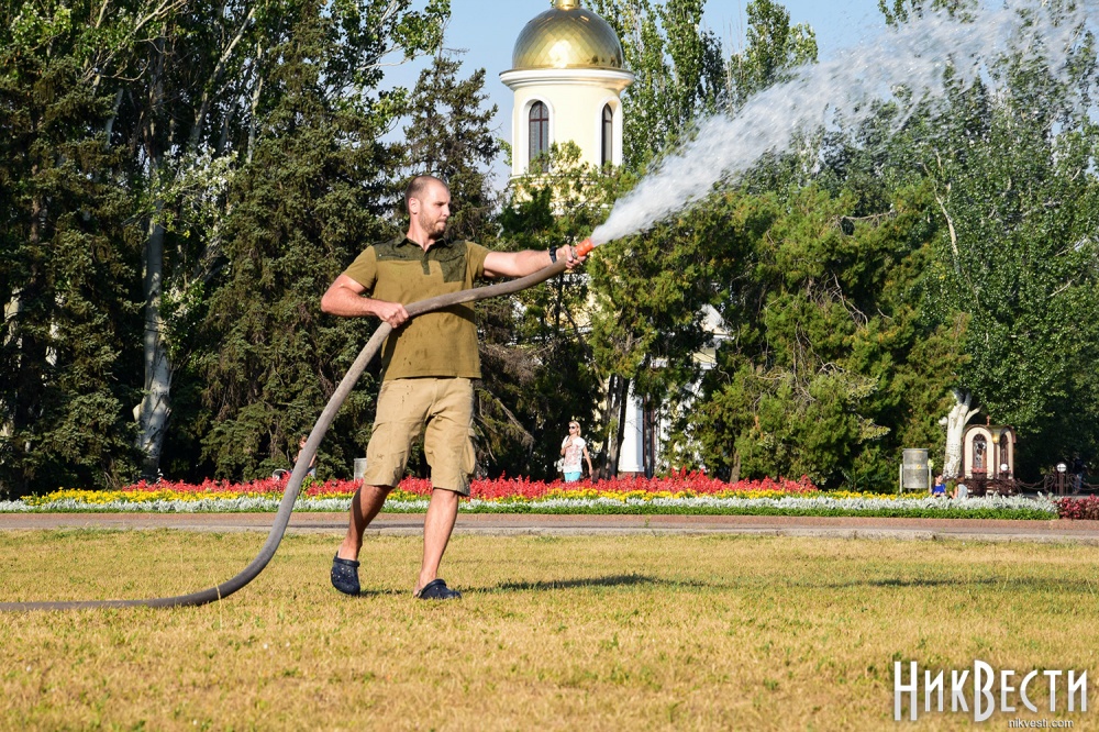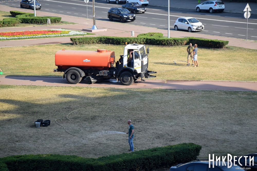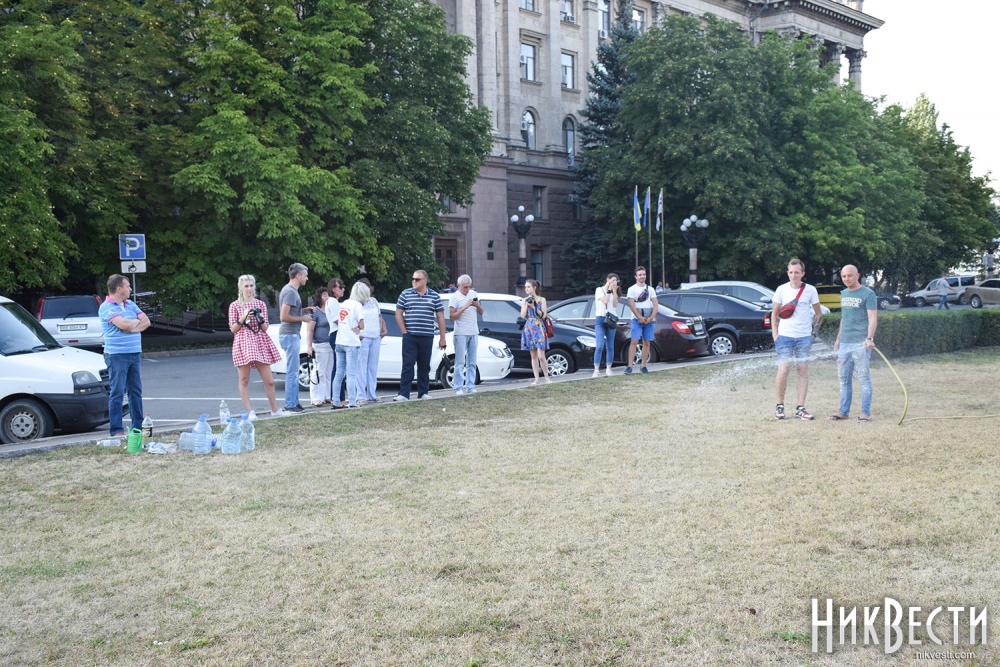 Сегодня, 26 июля, активные николаевцы собрались на акцию на Соборной площади Николаева, в рамках которой полили газон, который засох из-за отсутствия полива.