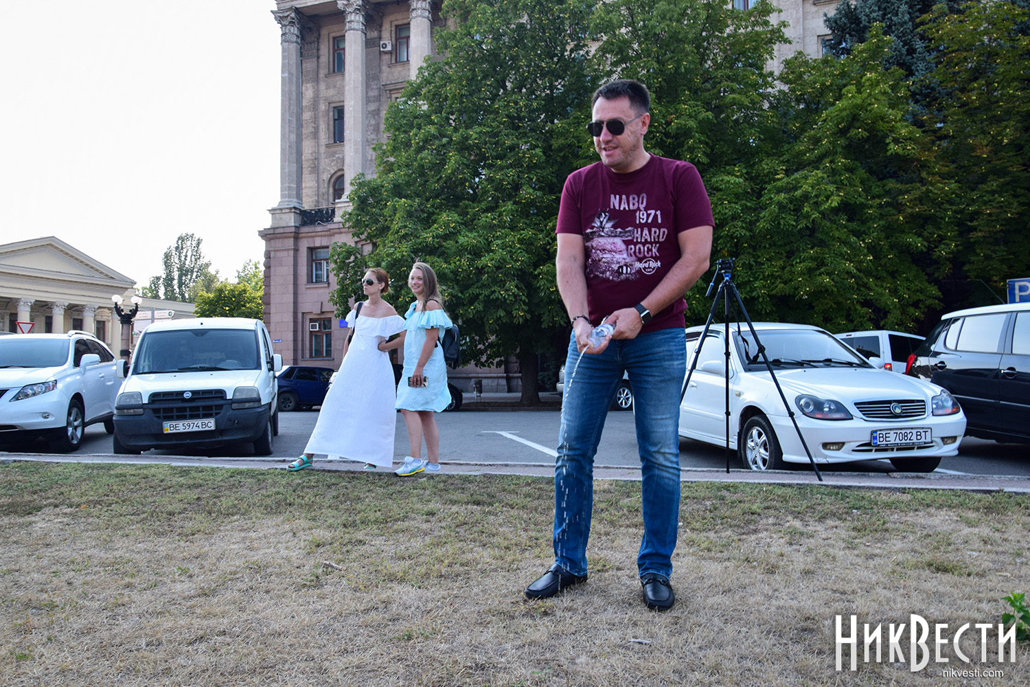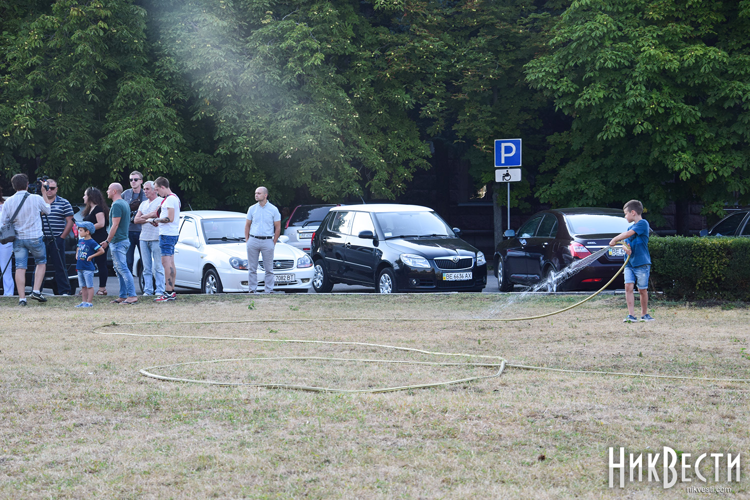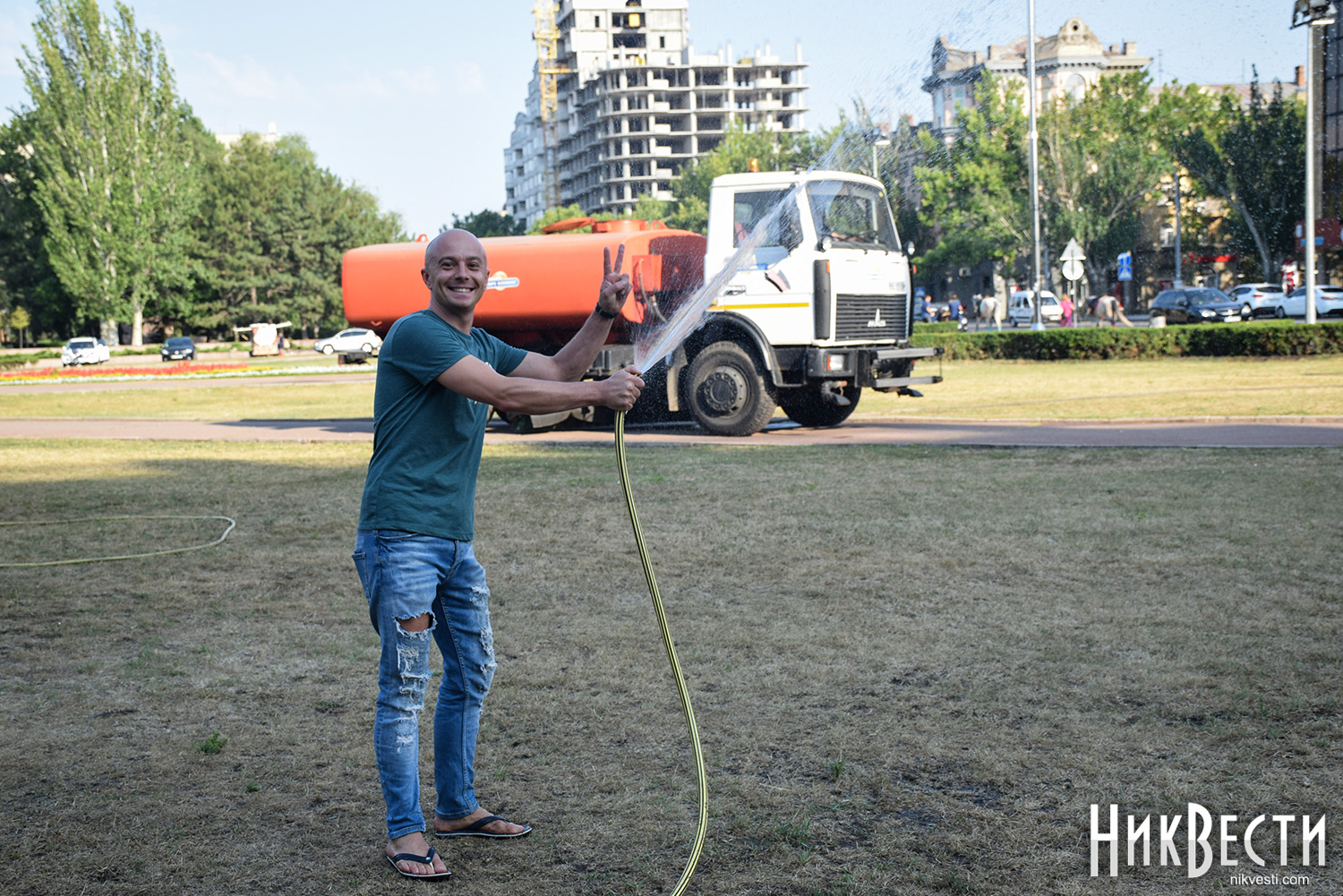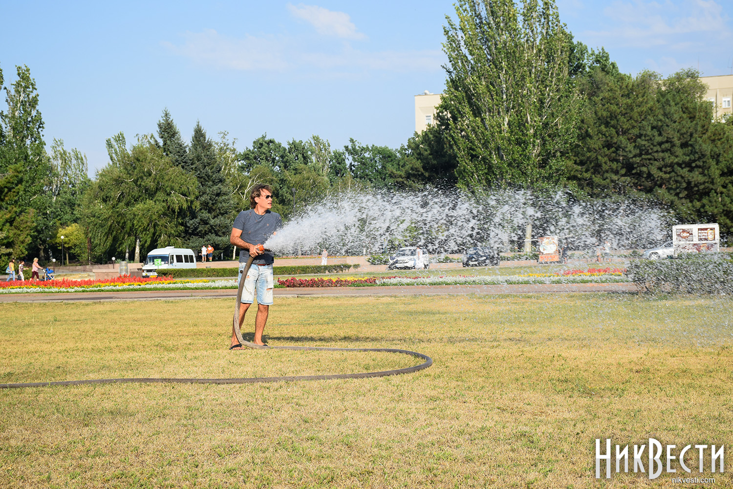 Сегодня, 26 июля, активные николаевцы собрались на акцию на Соборной площади Николаева, в рамках которой полили газон, который засох из-за отсутствия полива.