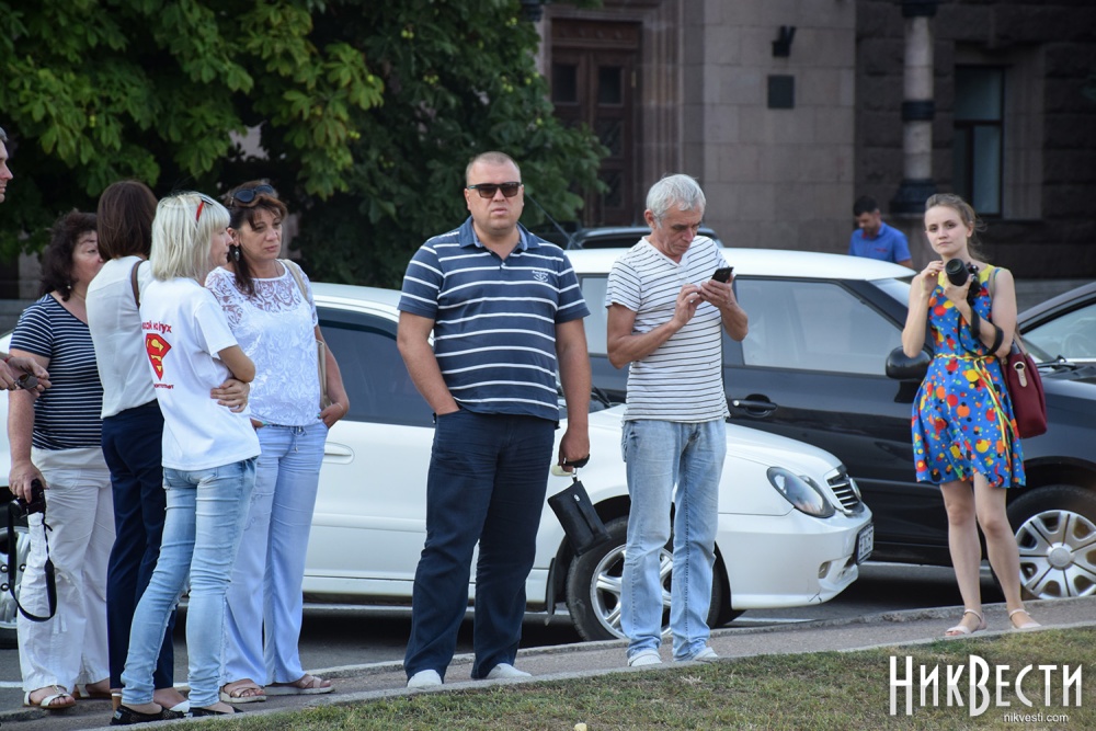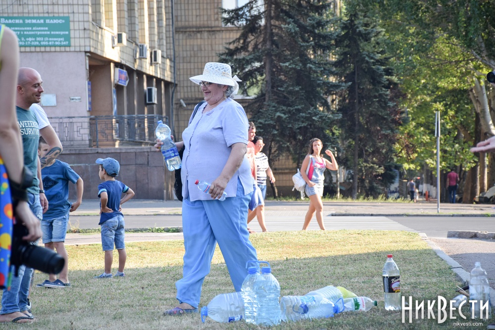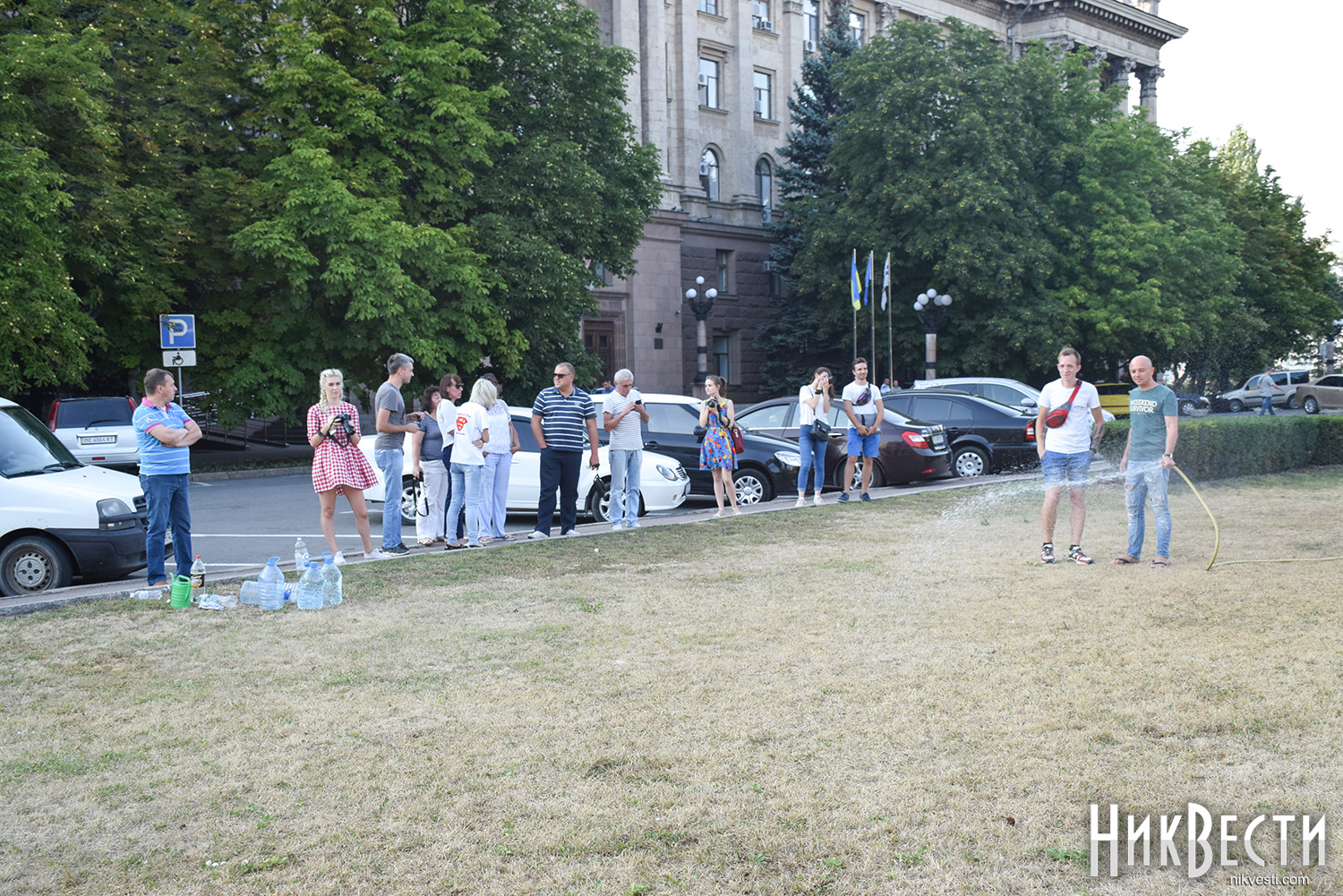 Николаевцы пришли на Соборную площадь с ведрами, чтобы полить засохший газон