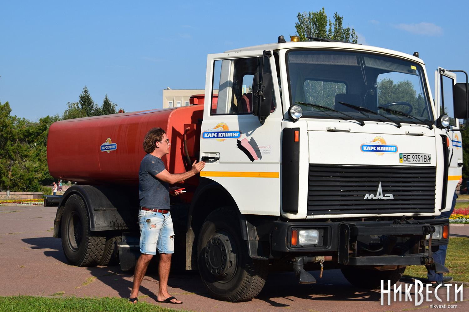 Кто-то принес по несколько ведер воды, некоторые принесли с собой бутылки и баклажки с водой, а спустя некоторое время после начала акции на площадь подъехала водовозная машина.