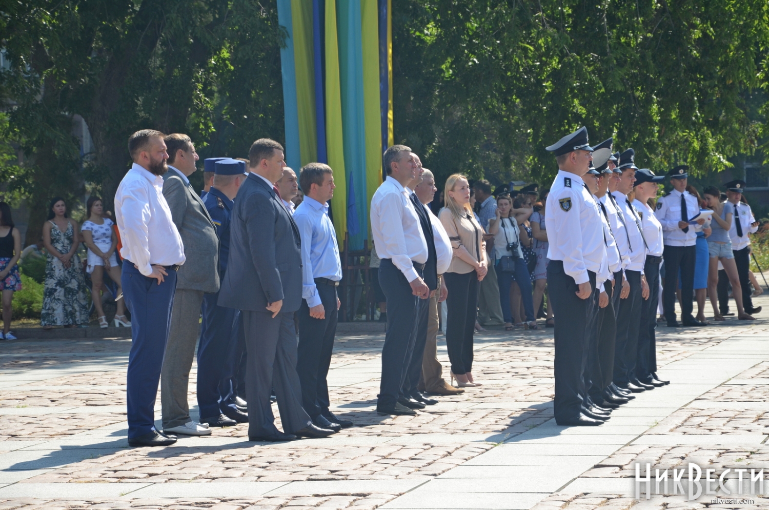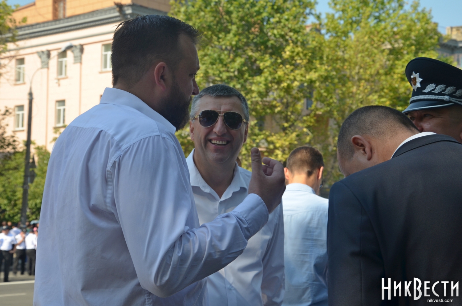 Поздравили полицейских первые лица города и области – первый заместитель председателя Николаевской облгосадминистрации Вячеслав Бонь, заместители Валентин Гайдаржи и Александр Кушнир, глава Николаевского областного совета Виктория Москаленко, заместитель Николаевского городского головы Мкртич Мкртчян, начальник Главного управления Национальной полиции в Николаевской области Юрий Мороз, прокурор Николаевской области Тарас Дунас, начальник управления Службы безопасности Украины Алексей Лях, начальник главного управления Государственной службы по чрезвычайным ситуациям Украины в Николаевской области Максим Грицаенко, а также народный депутат Украины Вадим Пидберезняк.