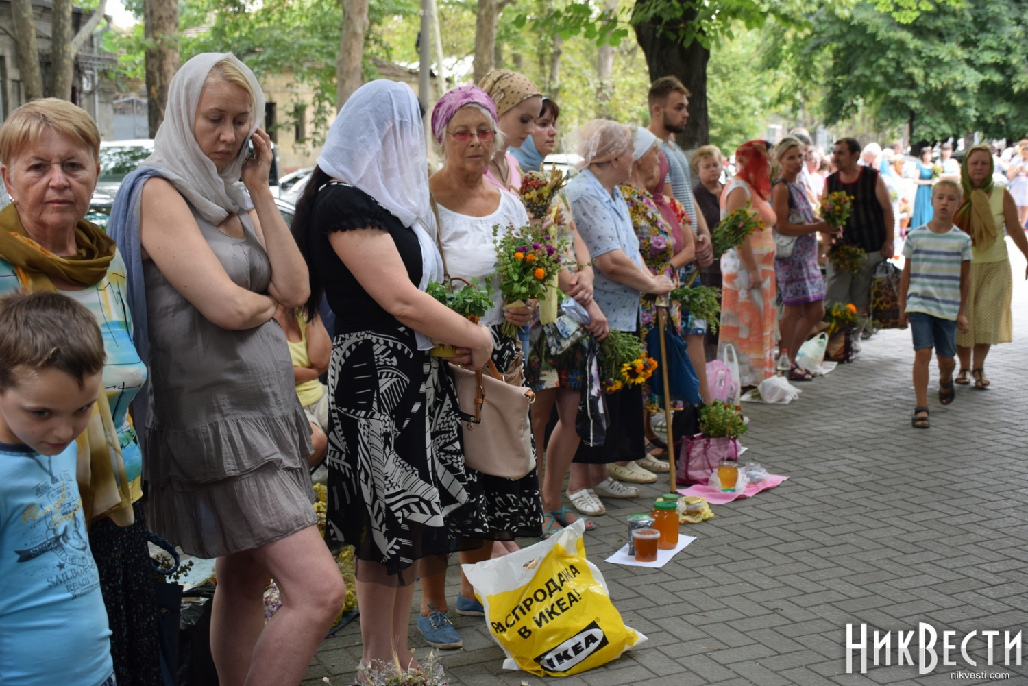 Православные николаевцы, почитая традиции христианского мира, сутра собрались у церквей города для того, чтобы посетить церковную службу, освятить букеты-обереги и мед собственного приготовления и выставить их на ярмарку. В это же время в самих храмах проходит обряд Святого Причастия.