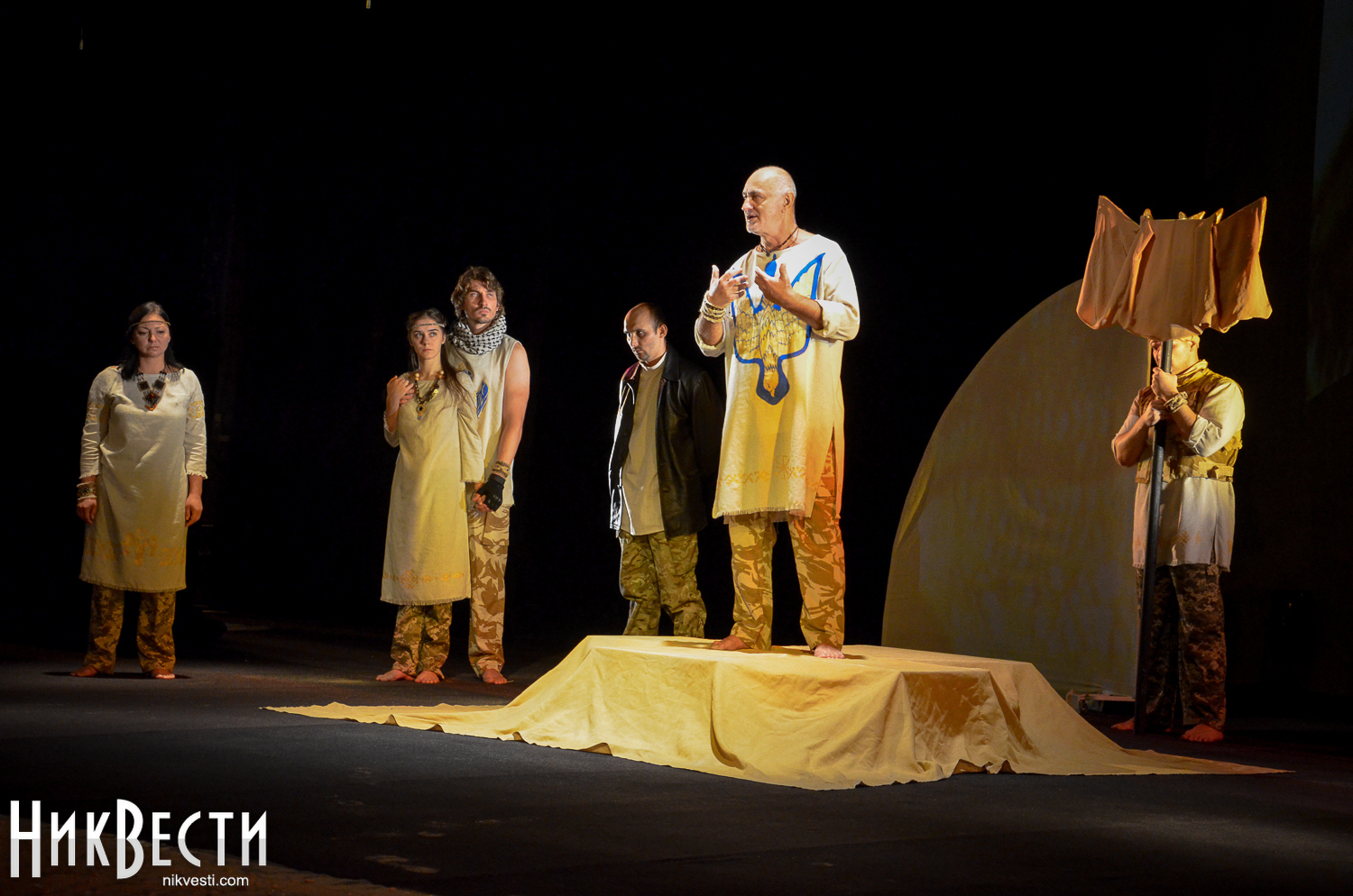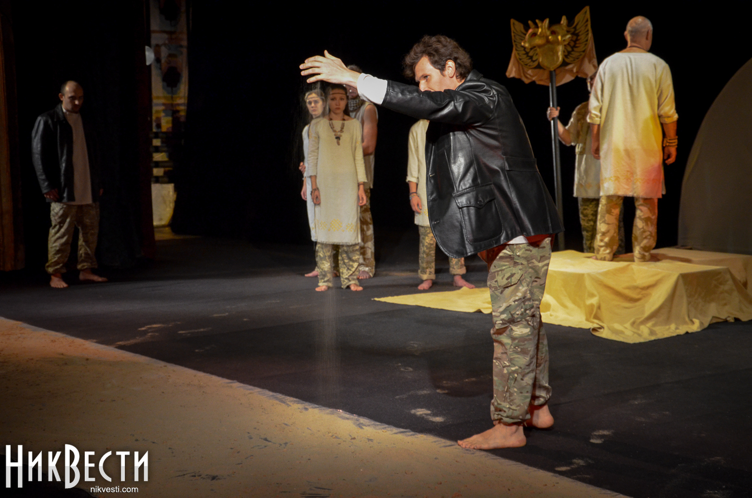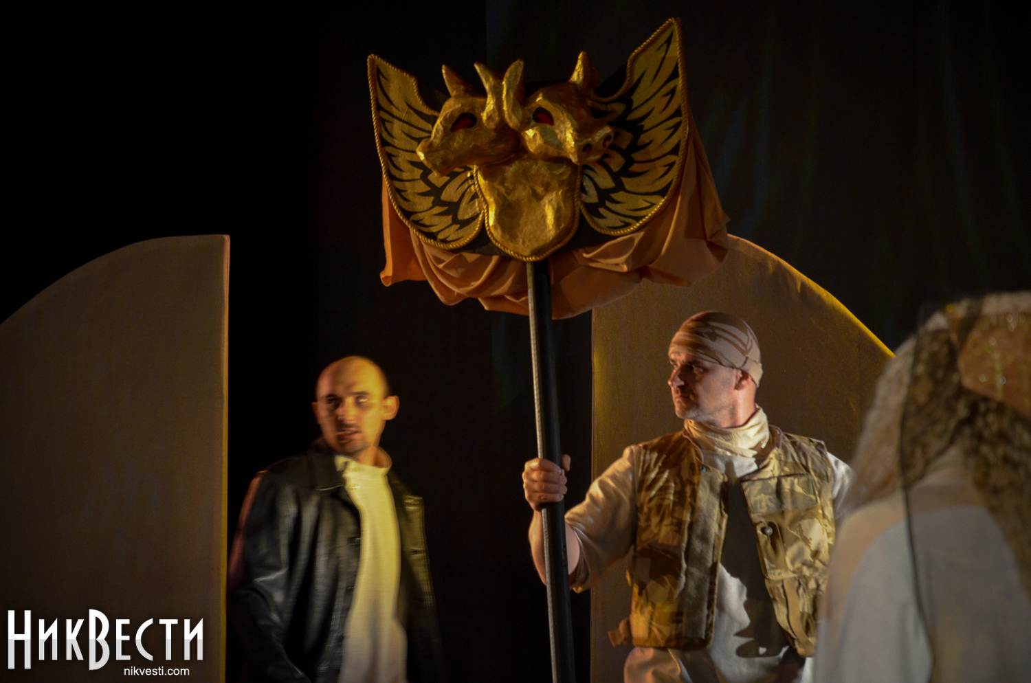 – Вот, например, наш знаменосец, который стоит с вымпелом. Если вы наблюдали за ним, то заметили, какая у него наполненность, какие внутренние монологи! Это дорогого стоит и называется профессионализмом. Еще, конечно, Моисей, которого играет народный артист Украины Василий Остафийчук. Я восхищаюсь им, это невероятный артист! Азазель – актриса пластичная, талантливая. Все артисты меня грели. Когда я работаю над спектаклем, я влюбляюсь во всех. У меня нет такого, чтобы мне кто-то не нравился, потому что в этом случае положительного результата никогда не добьешься, – поделился Евгений Олейник.
