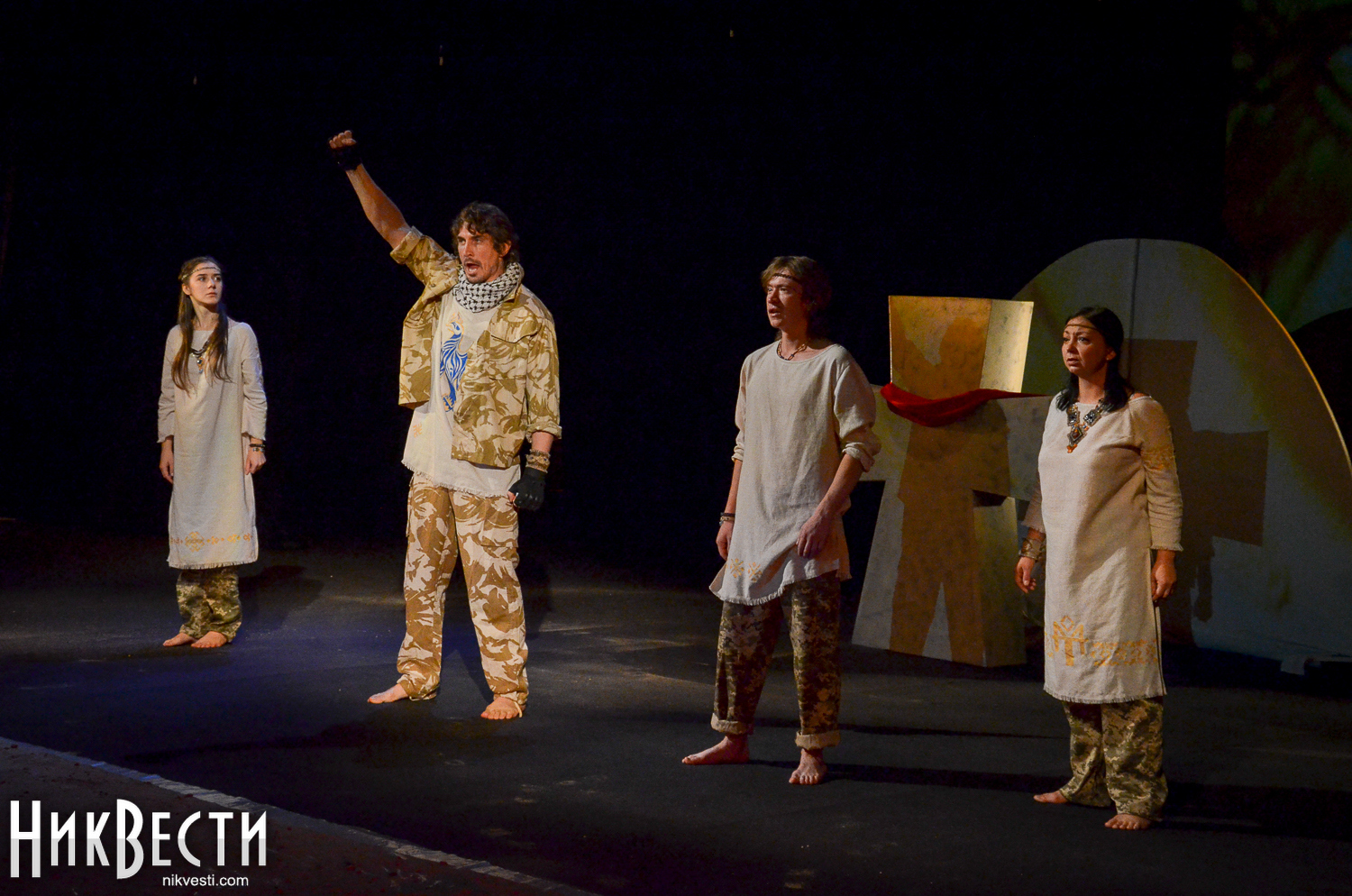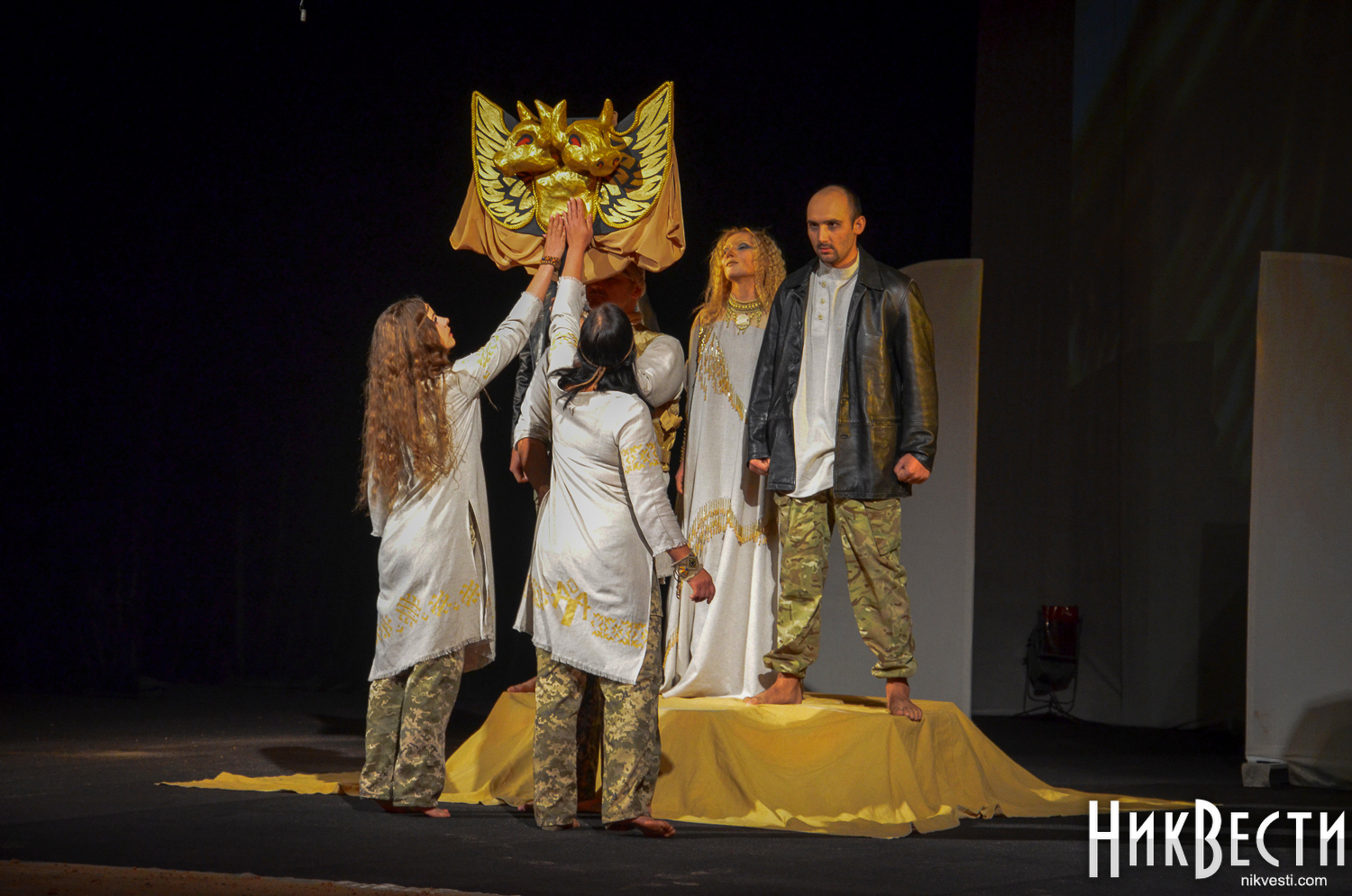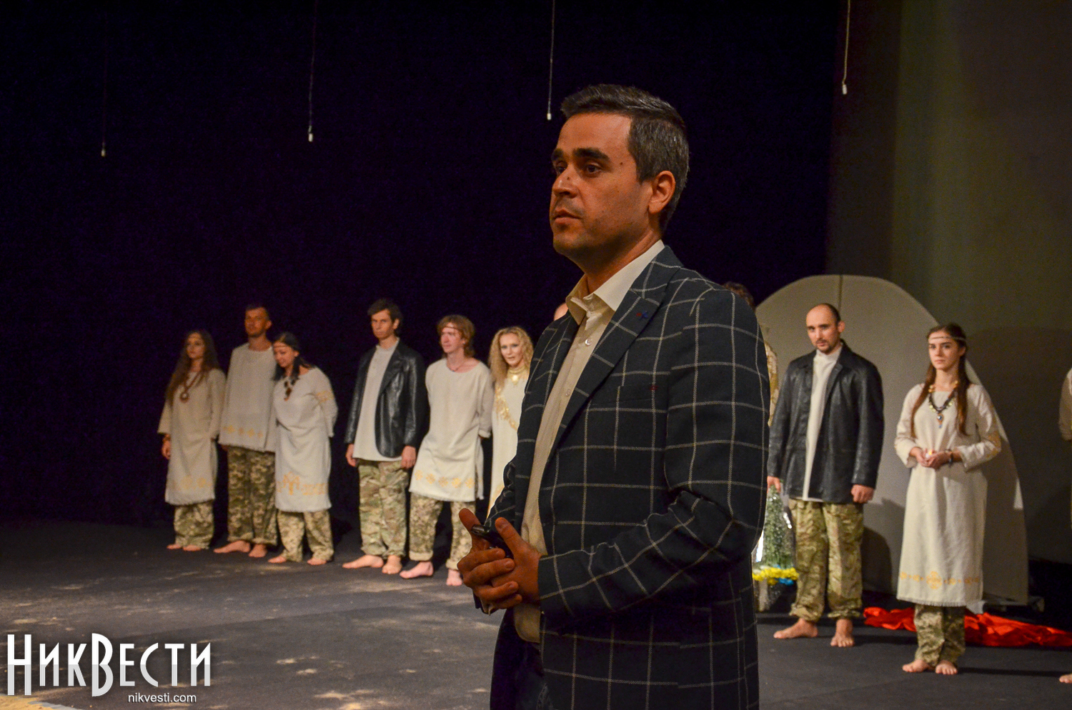 – Вот, например, наш знаменосец, который стоит с вымпелом. Если вы наблюдали за ним, то заметили, какая у него наполненность, какие внутренние монологи! Это дорогого стоит и называется профессионализмом. Еще, конечно, Моисей, которого играет народный артист Украины Василий Остафийчук. Я восхищаюсь им, это невероятный артист! Азазель – актриса пластичная, талантливая. Все артисты меня грели. Когда я работаю над спектаклем, я влюбляюсь во всех. У меня нет такого, чтобы мне кто-то не нравился, потому что в этом случае положительного результата никогда не добьешься, – поделился Евгений Олейник.