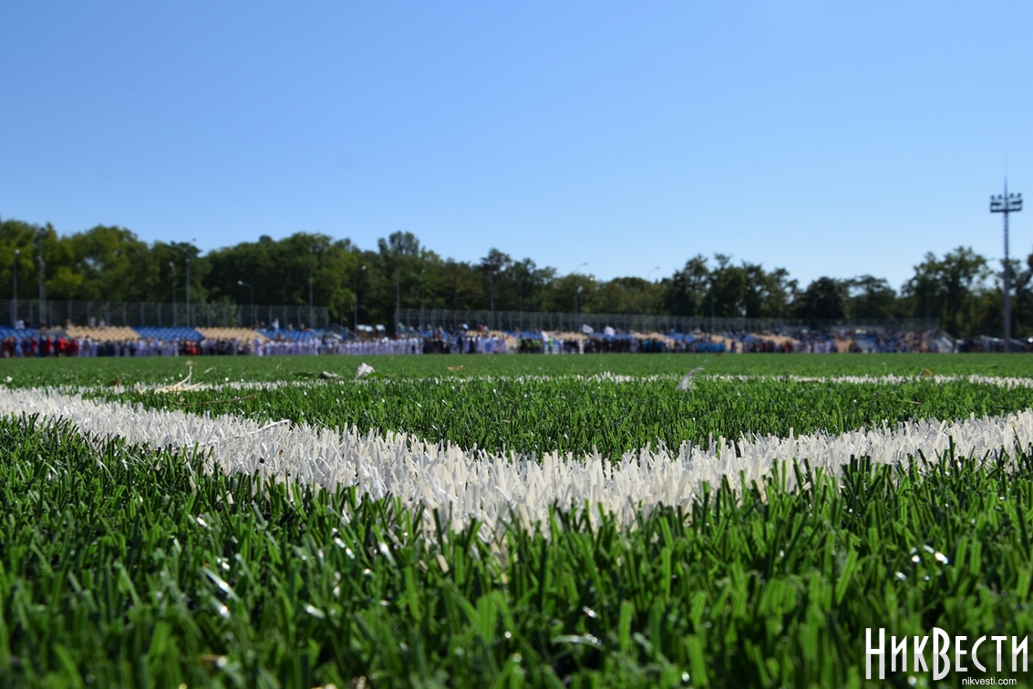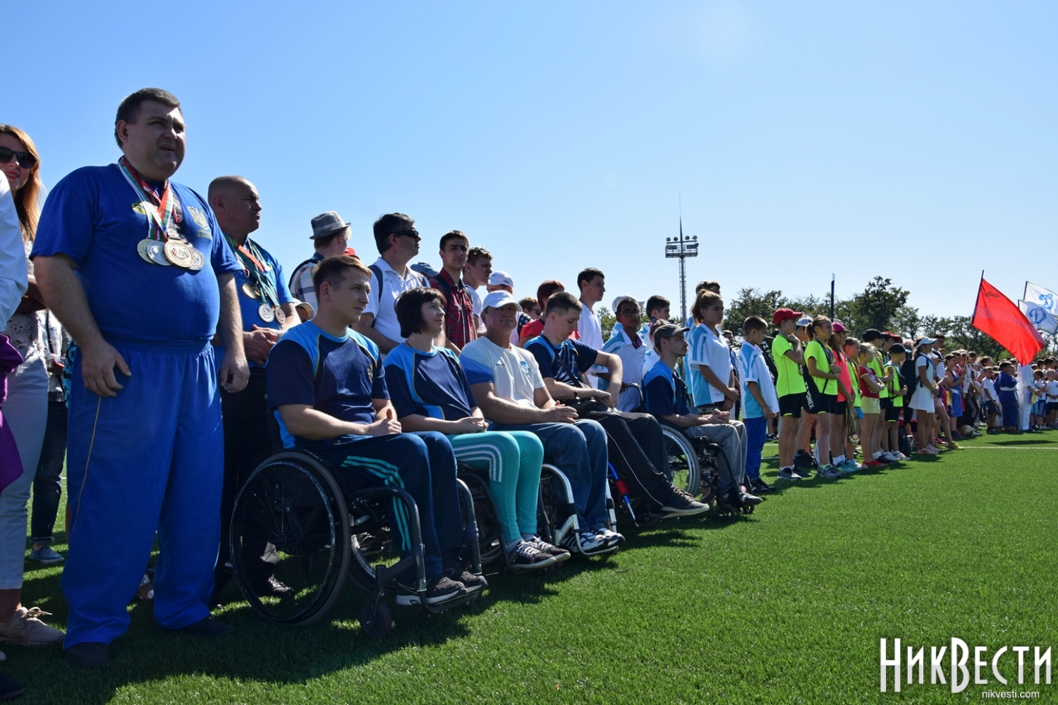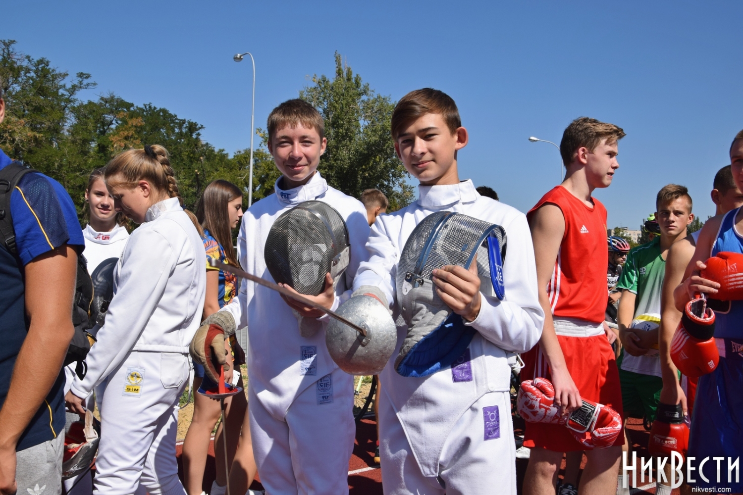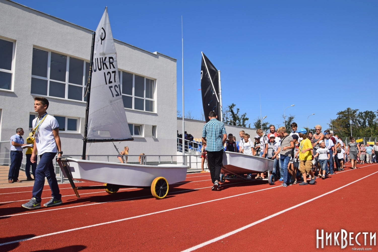 Торжественное открытие стадиона началось с парада всех николаевских спортивных школ, федераций и клубов. Гимнасты, футболисты, баскетболисты, борцы, велосипедисты, фехтовальщики, шахматисты и многие другие прошлись по реконструированному стадиону, тем самым показав громадный спортивный потенциал города и области. Своих спортсменов представили МОК КДЮСШ №1, МО ШВСМ, ОСДЮШОР областной яхт-клуб, ДЮСШ «Динамо», Николаевская федерация шахмат, Николаевский клуб MMA, спортивно-танцевальный клуб Slice, паралимпийские спортсмены, а также федерация киокушин карате.