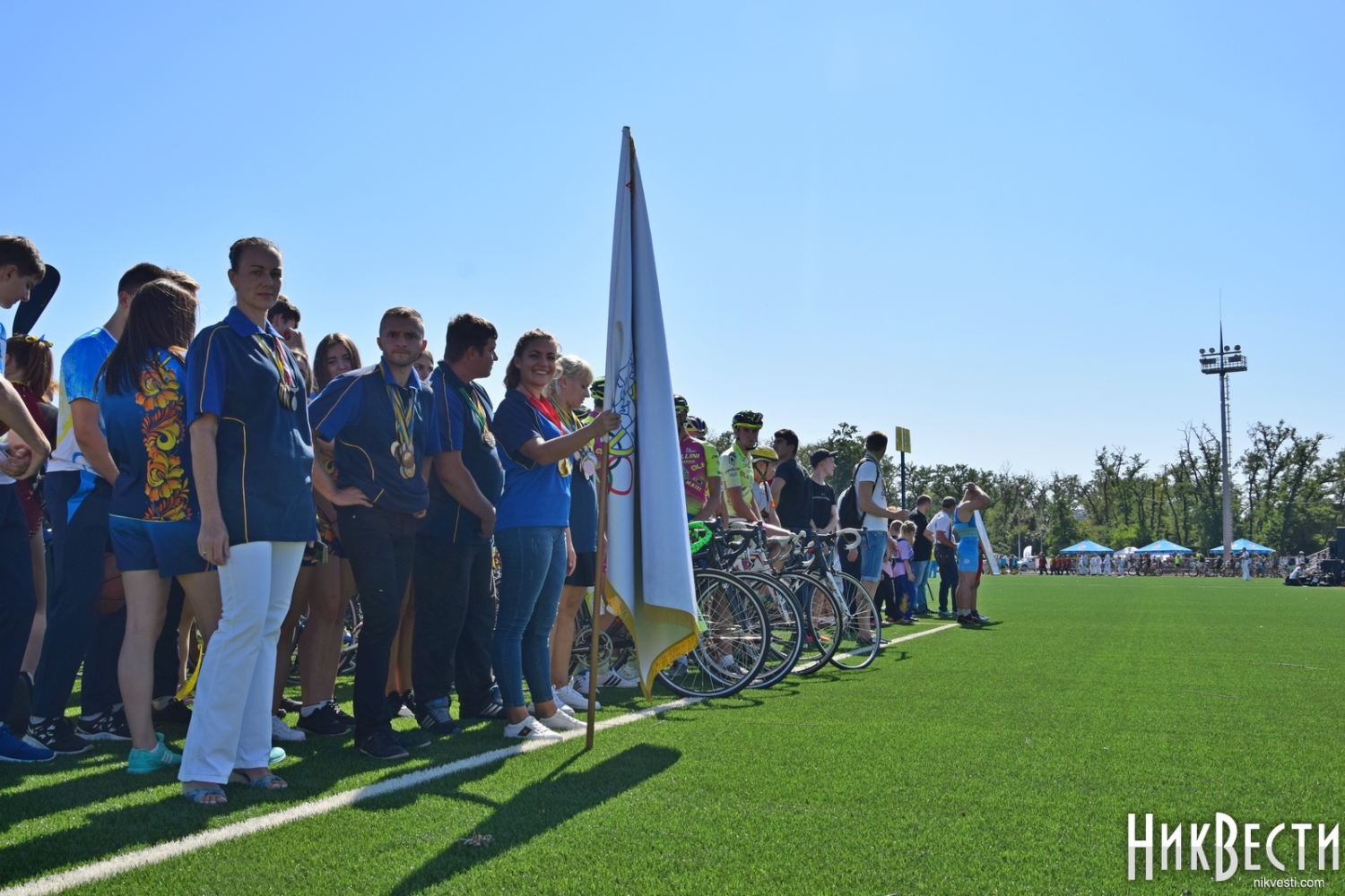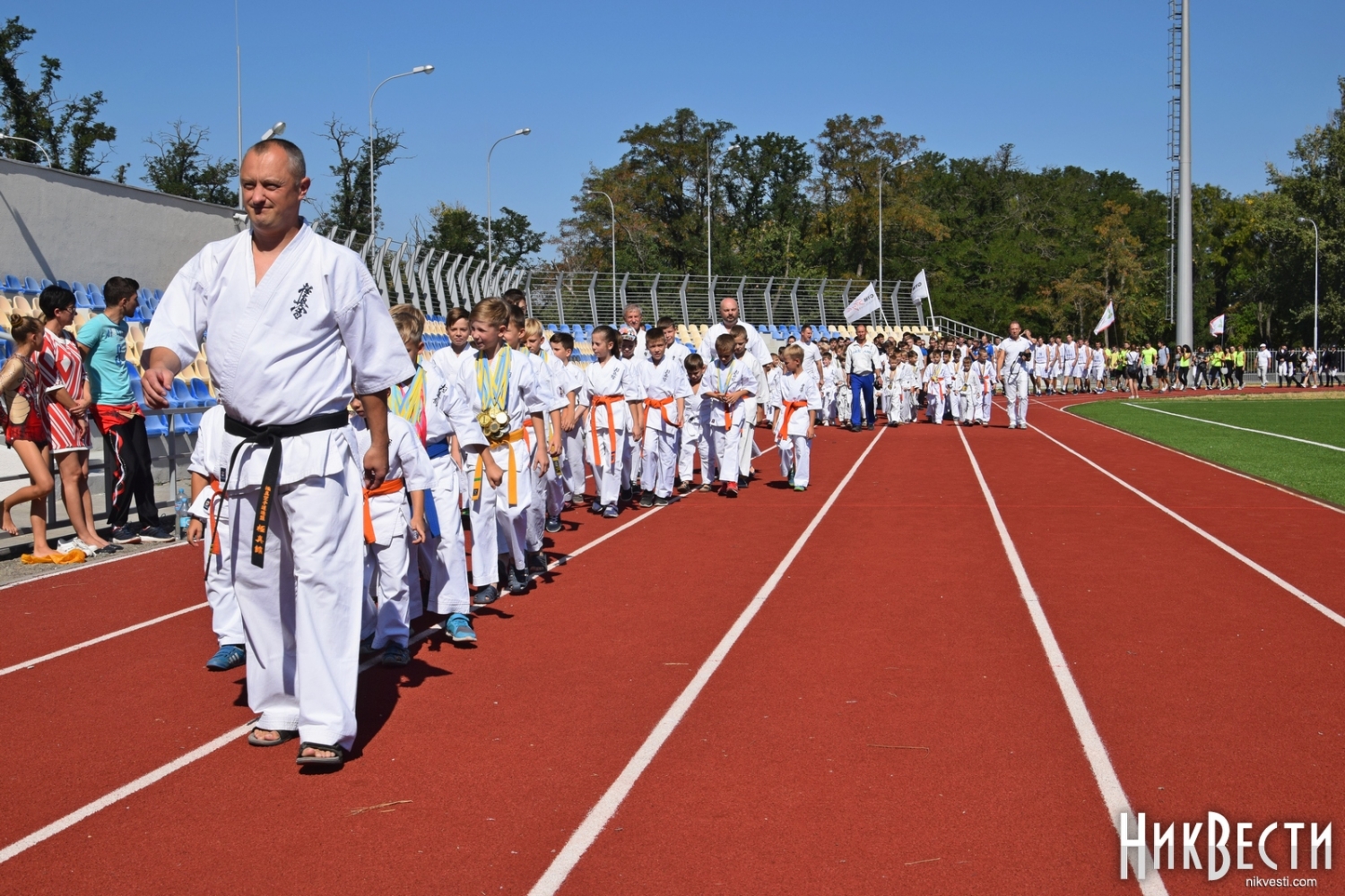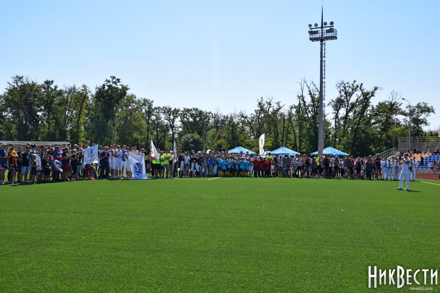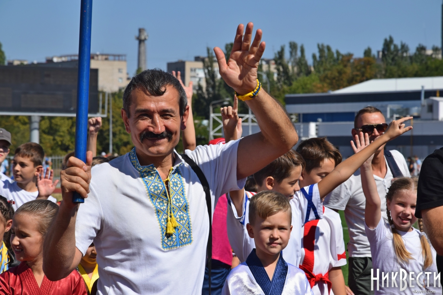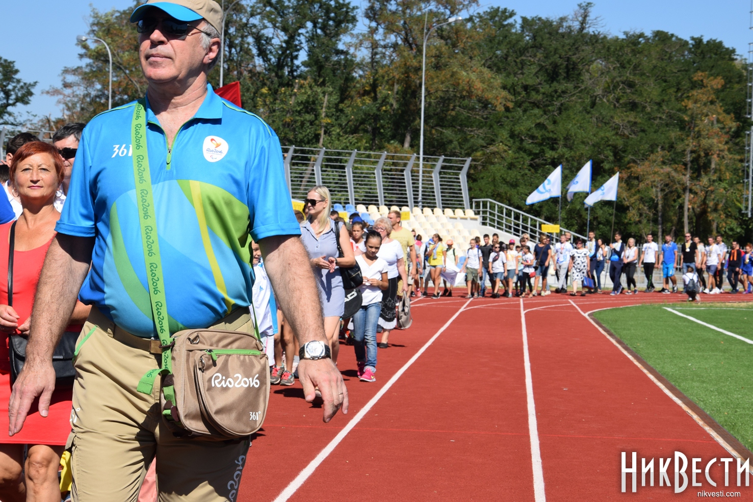 Торжественное открытие стадиона началось с парада всех николаевских спортивных школ, федераций и клубов. Гимнасты, футболисты, баскетболисты, борцы, велосипедисты, фехтовальщики, шахматисты и многие другие прошлись по реконструированному стадиону, тем самым показав громадный спортивный потенциал города и области. Своих спортсменов представили МОК КДЮСШ №1, МО ШВСМ, ОСДЮШОР областной яхт-клуб, ДЮСШ «Динамо», Николаевская федерация шахмат, Николаевский клуб MMA, спортивно-танцевальный клуб Slice, паралимпийские спортсмены, а также федерация киокушин карате.