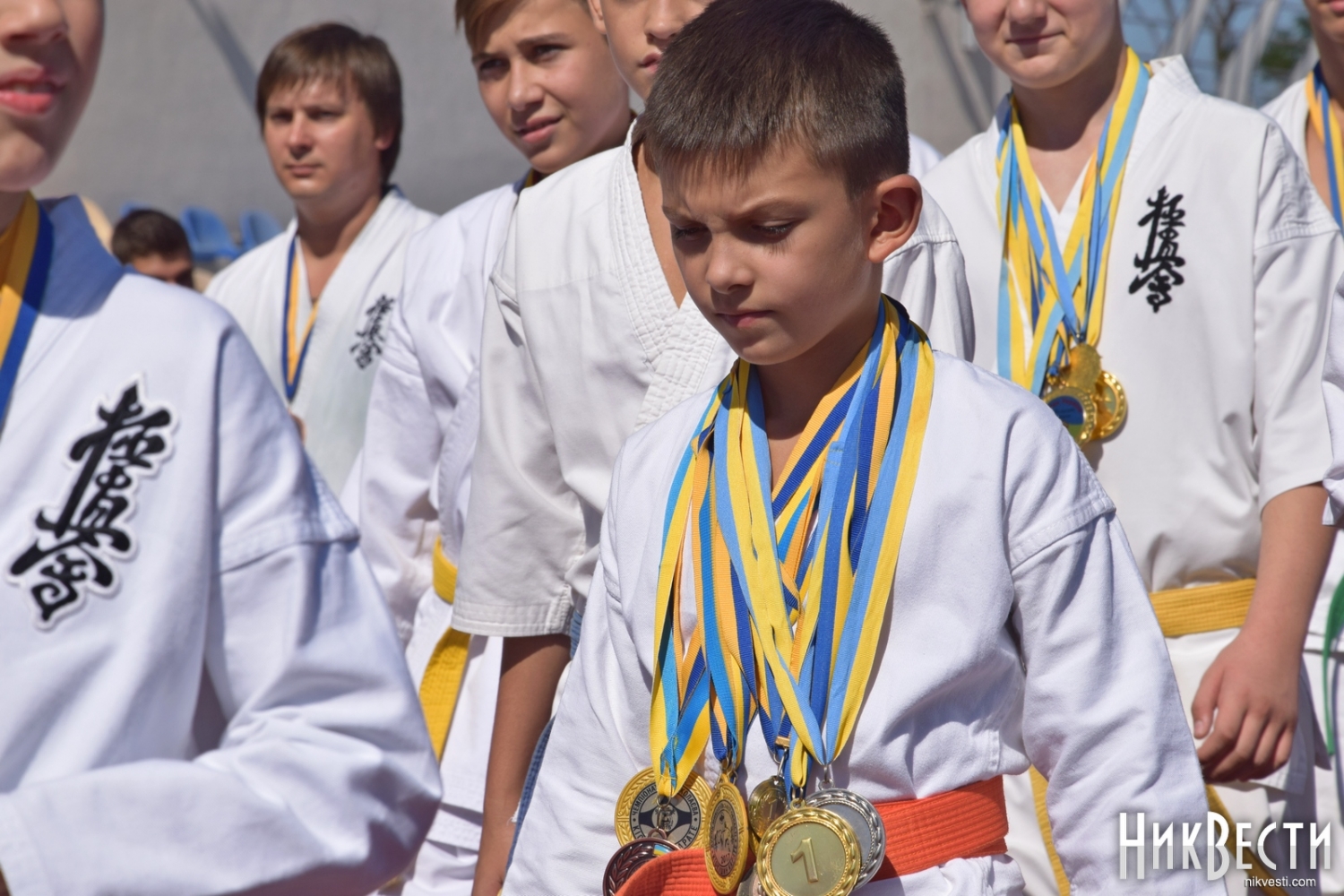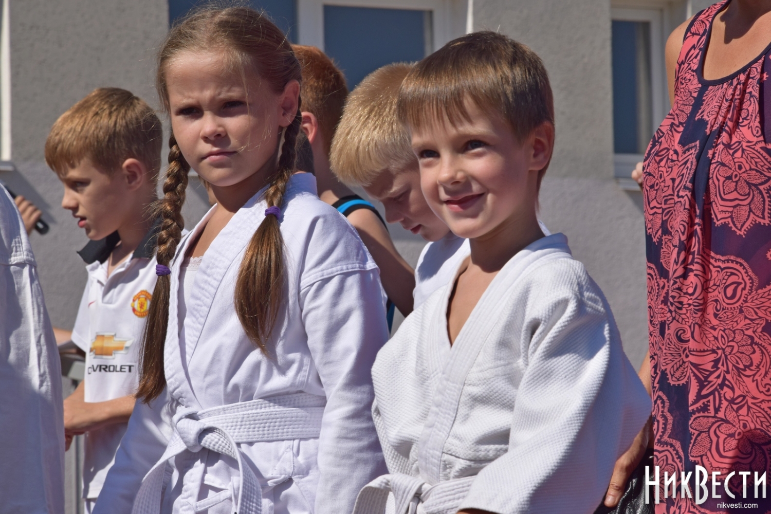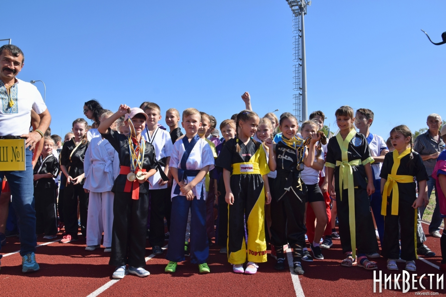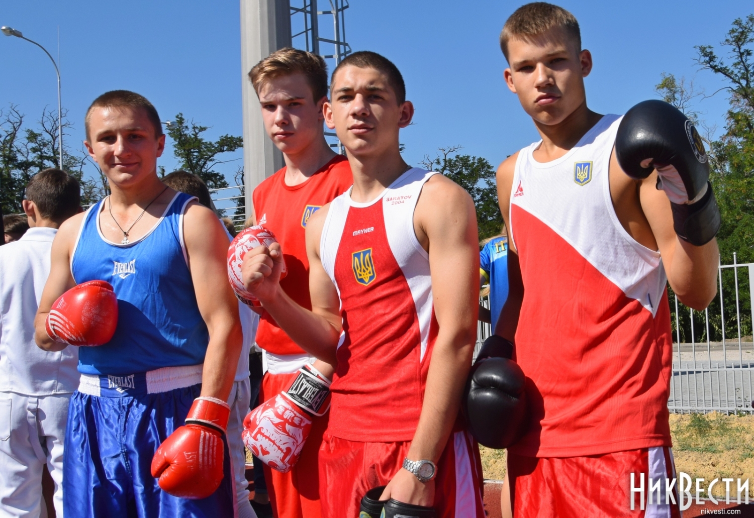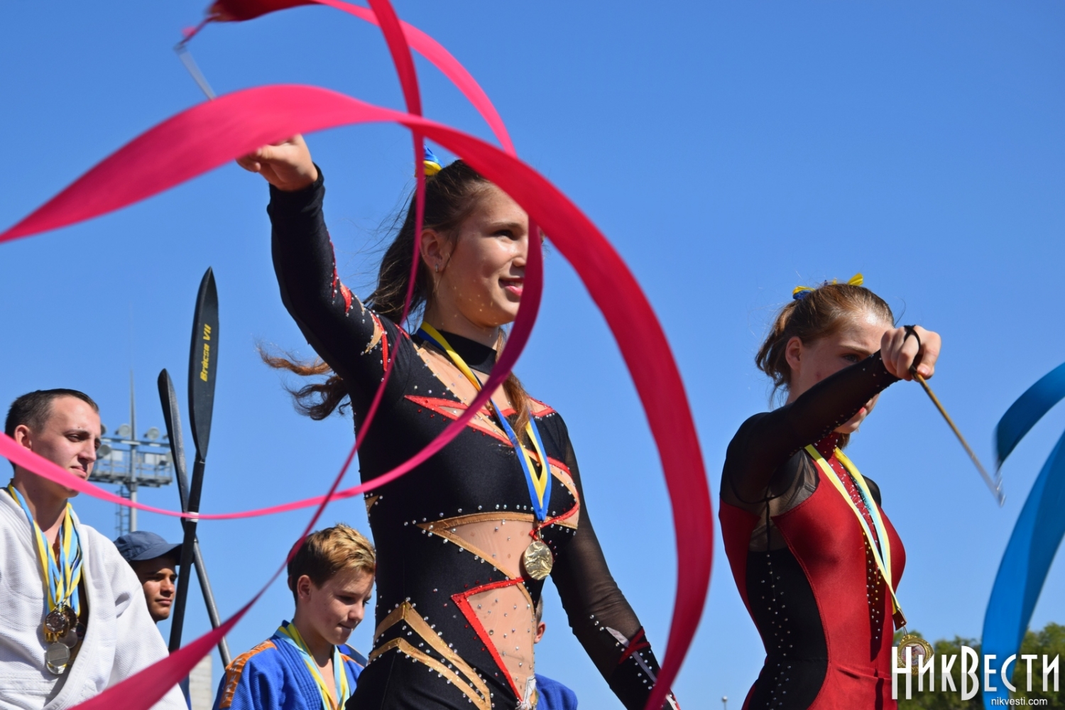 Торжественное открытие стадиона началось с парада всех николаевских спортивных школ, федераций и клубов. Гимнасты, футболисты, баскетболисты, борцы, велосипедисты, фехтовальщики, шахматисты и многие другие прошлись по реконструированному стадиону, тем самым показав громадный спортивный потенциал города и области. Своих спортсменов представили МОК КДЮСШ №1, МО ШВСМ, ОСДЮШОР областной яхт-клуб, ДЮСШ «Динамо», Николаевская федерация шахмат, Николаевский клуб MMA, спортивно-танцевальный клуб Slice, паралимпийские спортсмены, а также федерация киокушин карате.