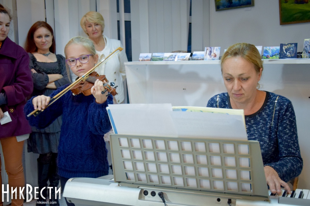 Помимо картин, художница подготовила еще два приятных сюрприза для посетителей галереи. После официального открытия состоялся розыгрыш трех репродукций Татьяны Дердей, а маленькая скрипачка, ученица 2-го класса Катерина Громова под аккомпанемент бабушки сыграла произведение Моцарта.