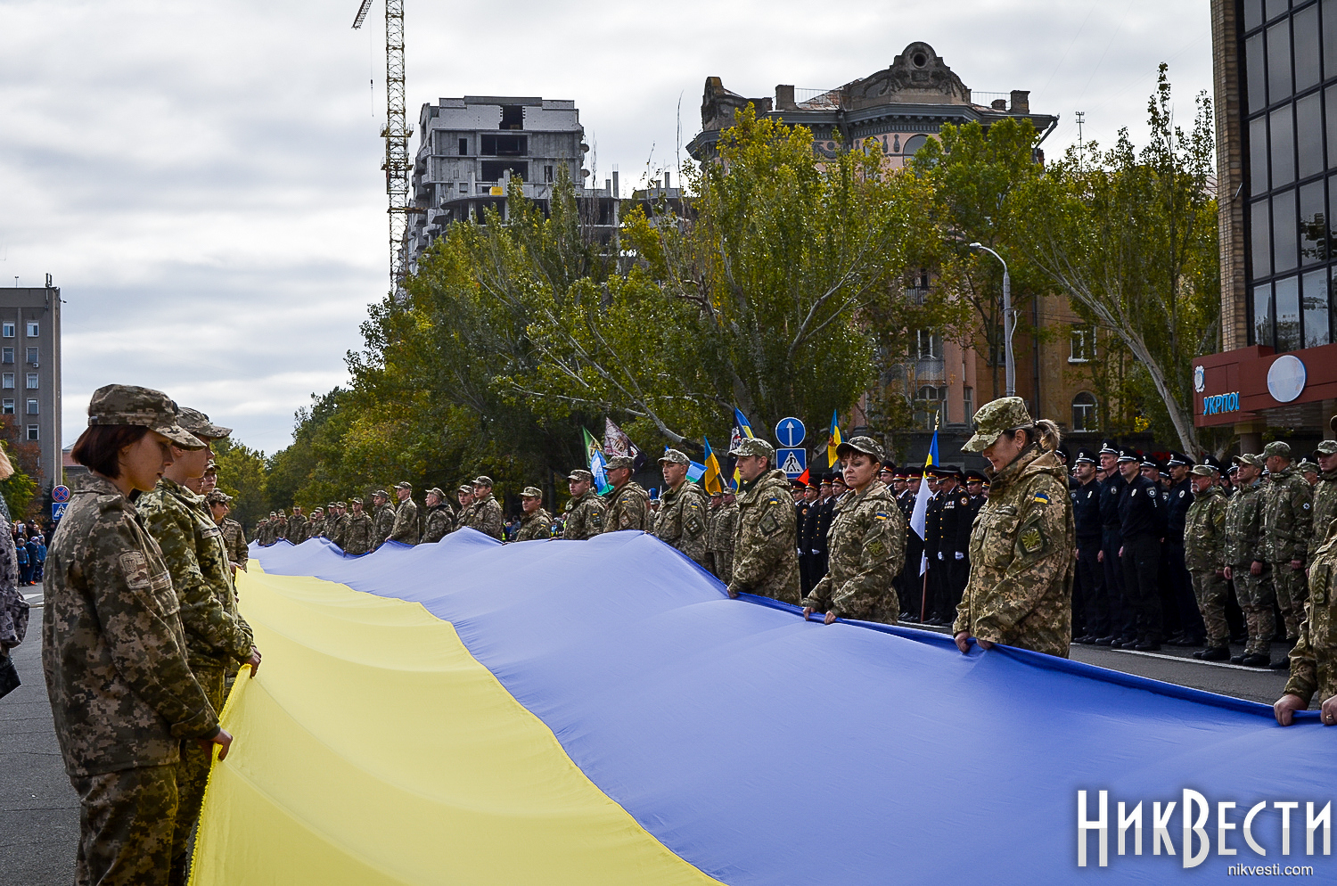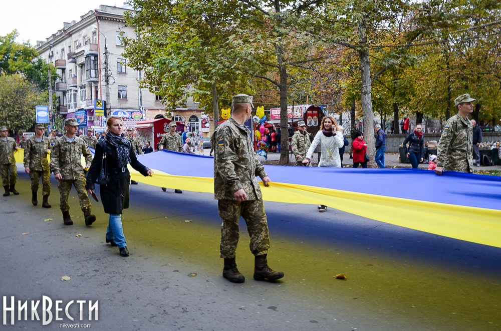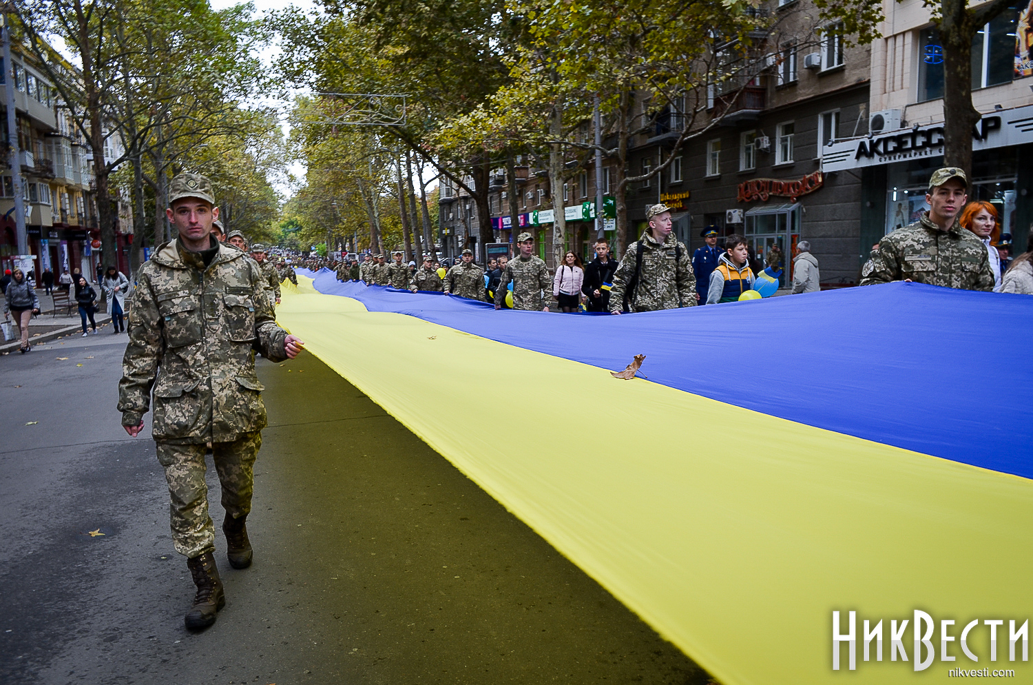 День защитника Украины в Николаеве: 300-метровый национальный флаг и марш военных и волонтеров