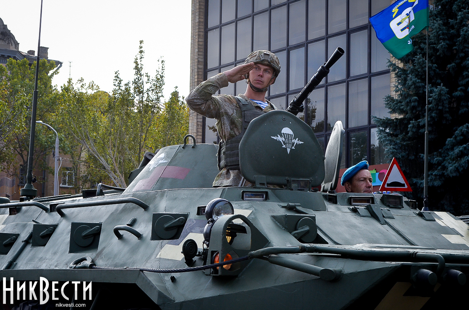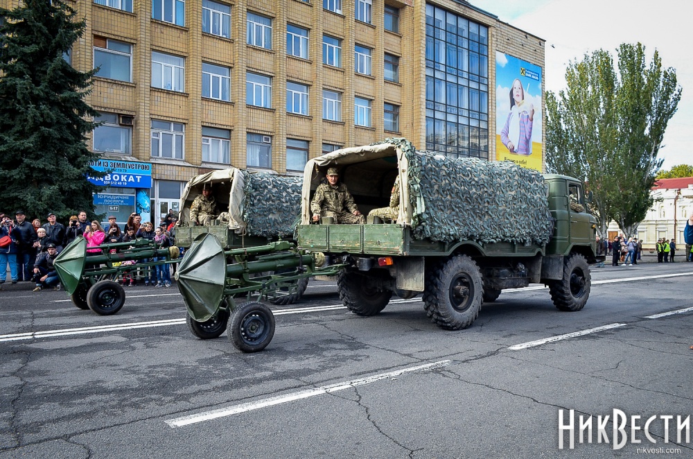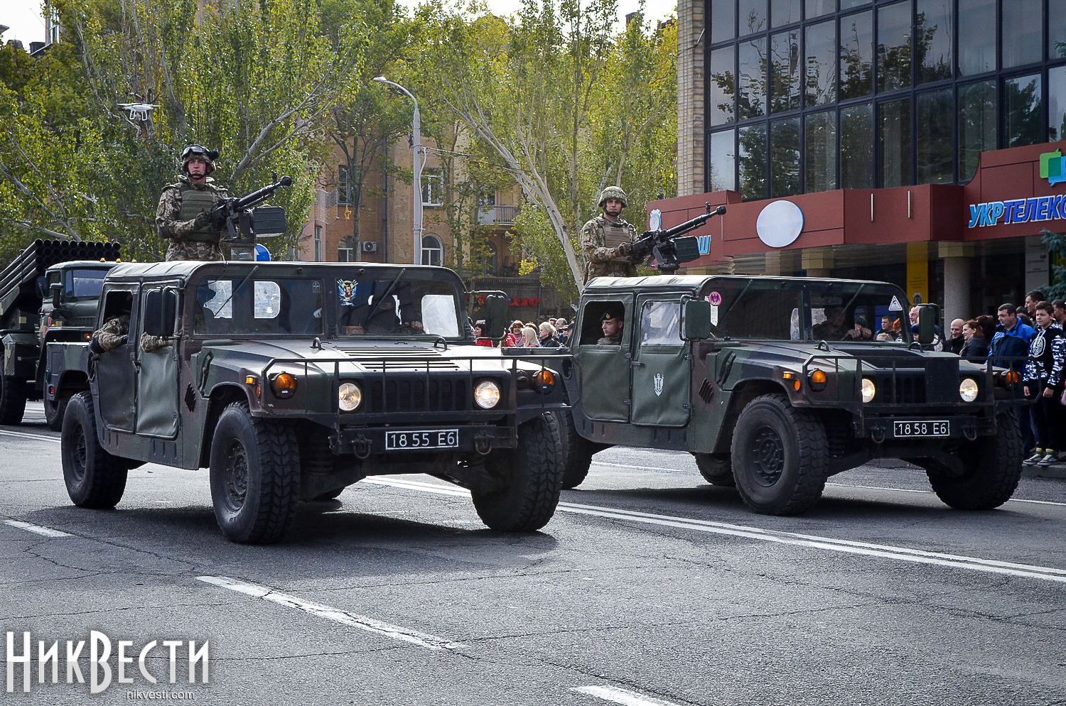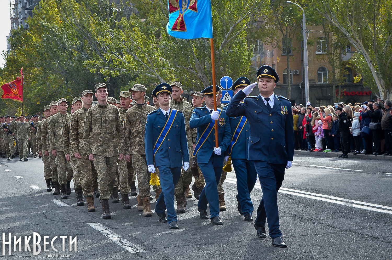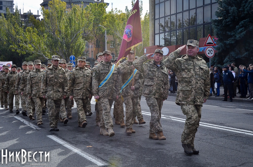 Утром Соборной площадью прошагали колонны личного состава Николаевского гарнизона, Нацгвардии, Нацполиции, Государственной службы по чрезвычайным ситуациям, в том числе, военнослужащие ВМС Вооруженных Сил Украины, высокомобильные Десантные Войска ВСУ и представители Николаевского военного госпиталя. После официальной части мероприятия центром города проехала боевая техника.