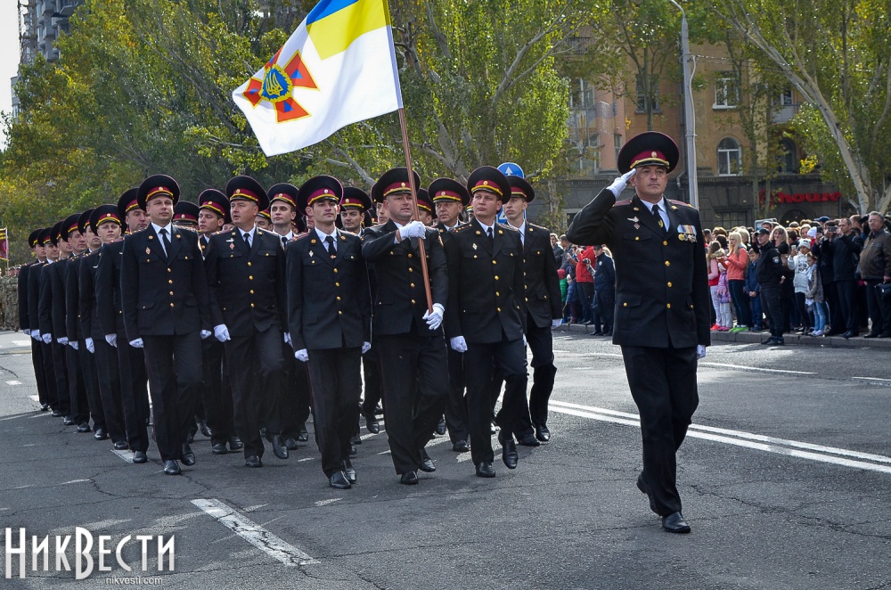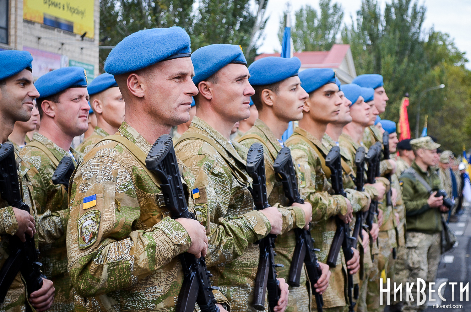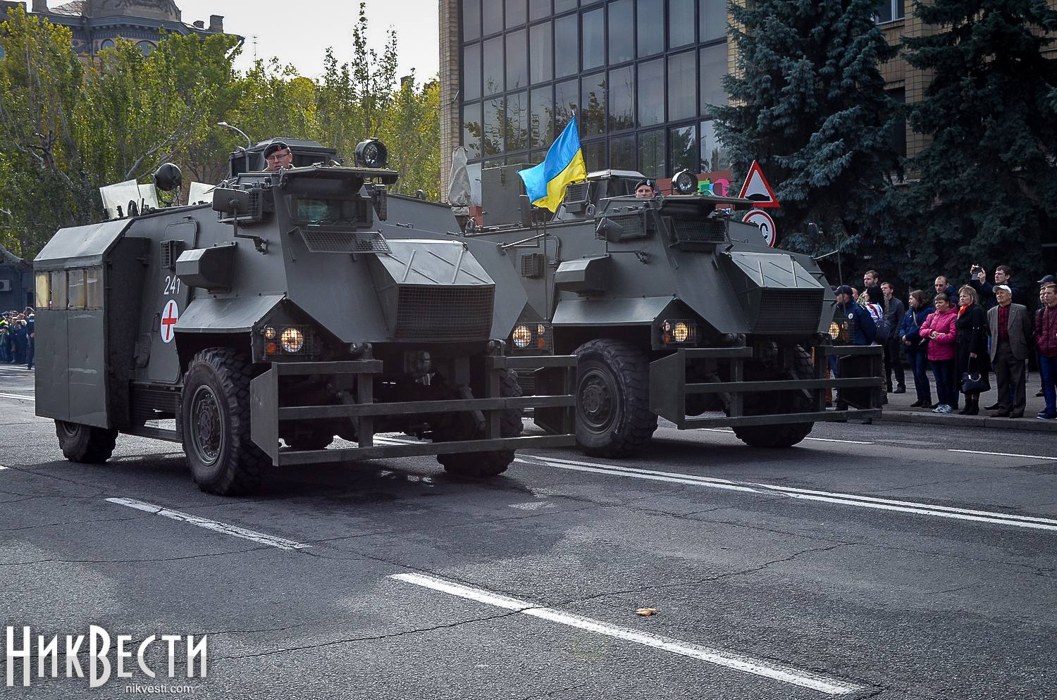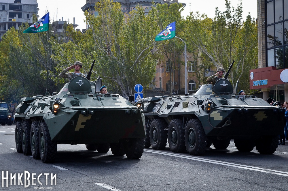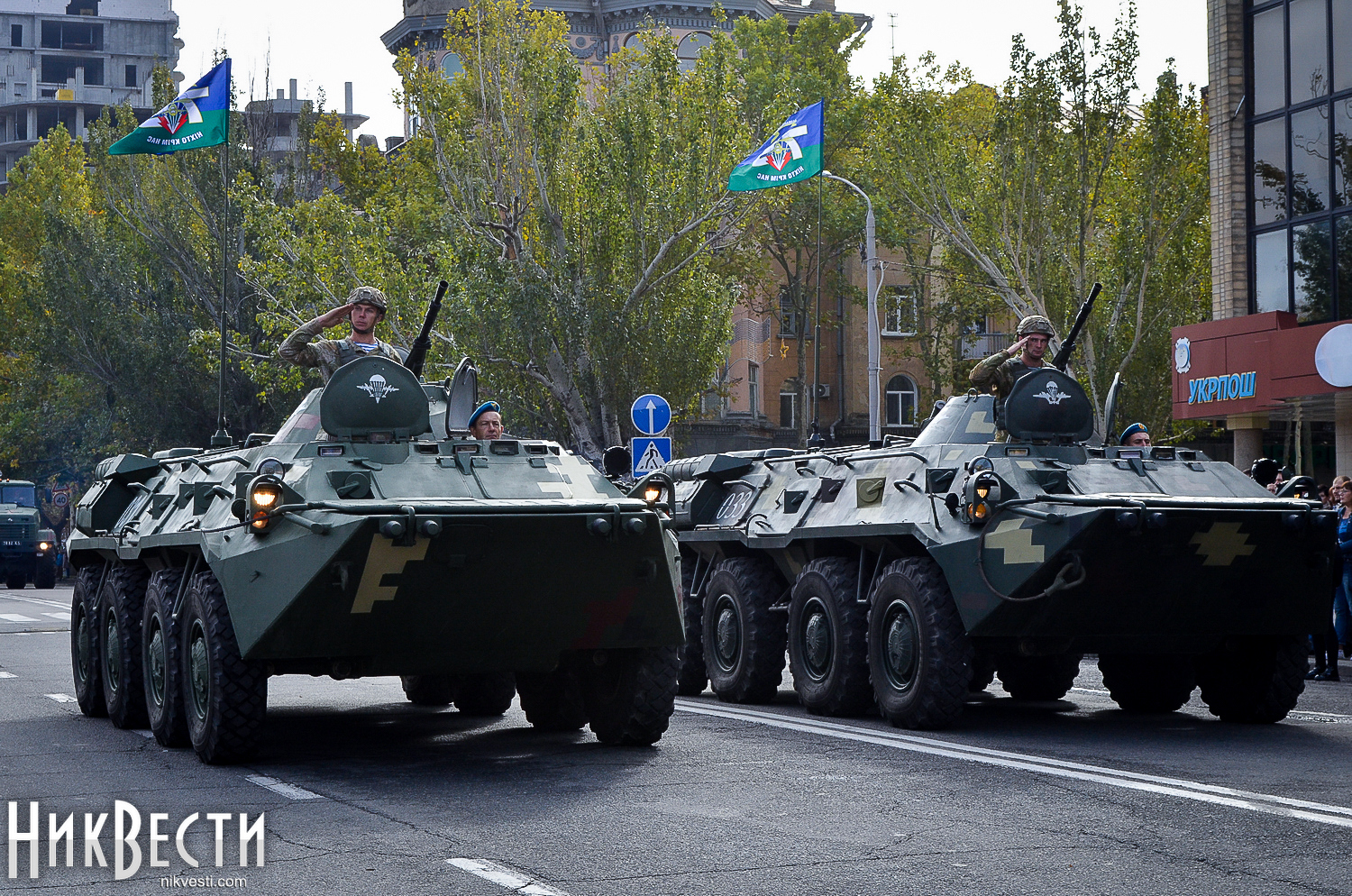 Утром Соборной площадью прошагали колонны личного состава Николаевского гарнизона, Нацгвардии, Нацполиции, Государственной службы по чрезвычайным ситуациям, в том числе, военнослужащие ВМС Вооруженных Сил Украины, высокомобильные Десантные Войска ВСУ и представители Николаевского военного госпиталя. После официальной части мероприятия центром города проехала боевая техника.