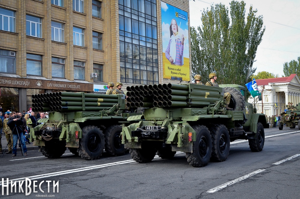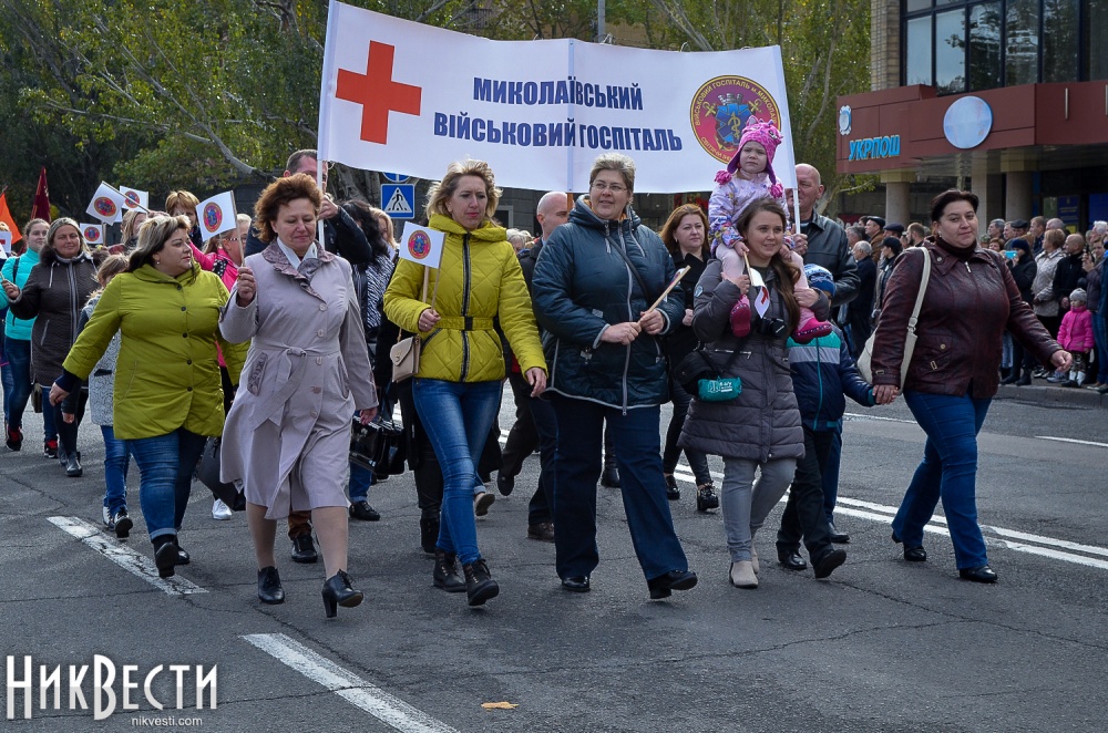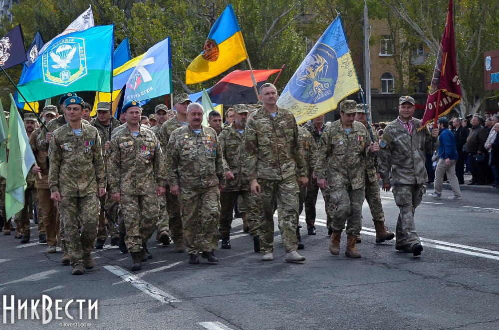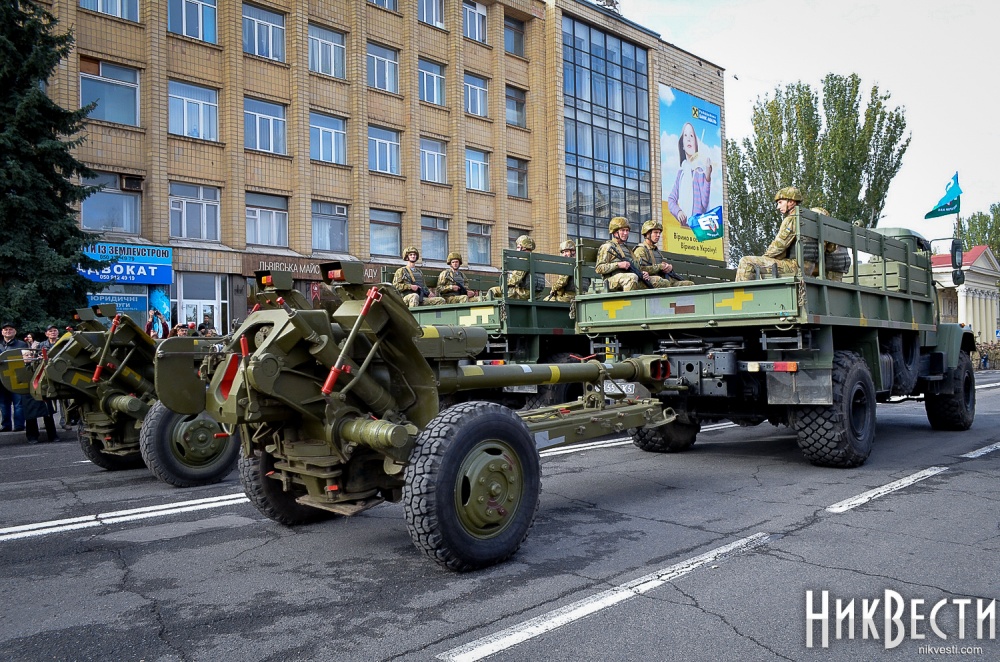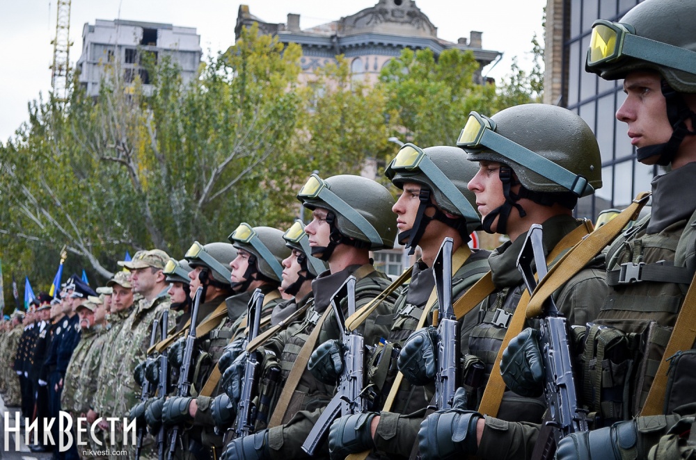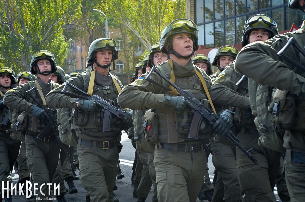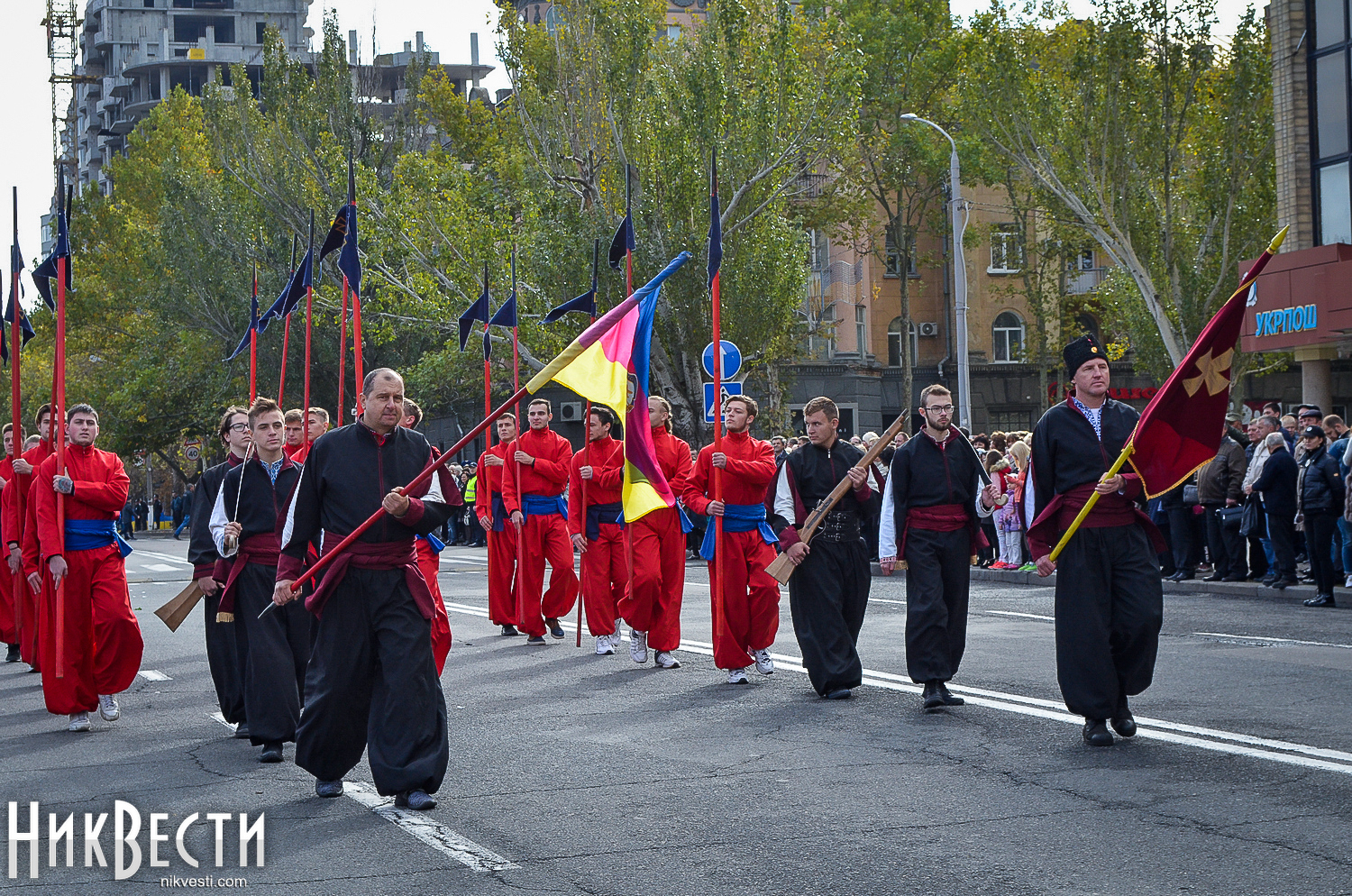 Утром Соборной площадью прошагали колонны личного состава Николаевского гарнизона, Нацгвардии, Нацполиции, Государственной службы по чрезвычайным ситуациям, в том числе, военнослужащие ВМС Вооруженных Сил Украины, высокомобильные Десантные Войска ВСУ и представители Николаевского военного госпиталя. После официальной части мероприятия центром города проехала боевая техника.