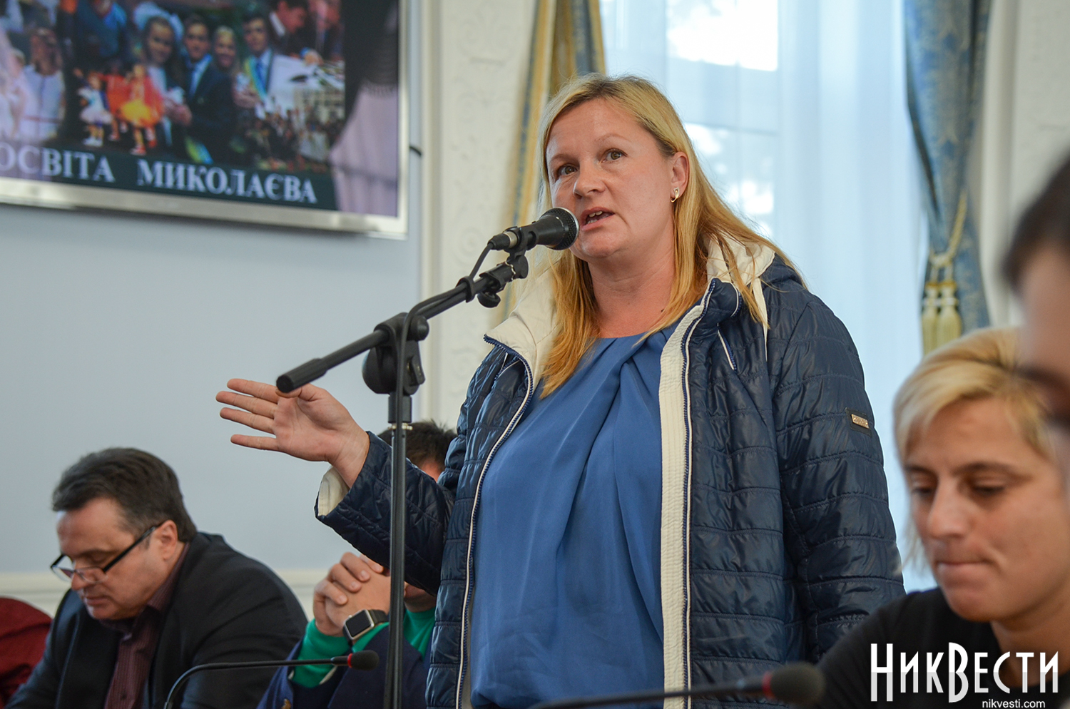 В ходе публичного отчета заместителя городского головы Евгения Шевченко отчитались начальница управления здравоохранения Ирина Шамрай, директор Департамента труда и социальной защиты населения Сергей Бондаренко, начальница управления образования Анна Деркач, начальник управления по вопросам культуры и охраны культурного наследия Николаевского городского совета Юрий Любаров, начальник службы по делам детей Ирина Шамарина, начальник управления молодежной политики Олег Соколик, начальник управления физкультуры и спорта Олег Машкин, директор Центра социальных служб для семьи, детей и молодежи Вера Гончарук.