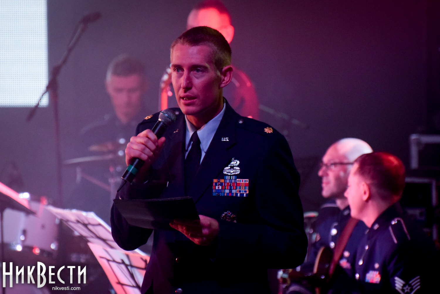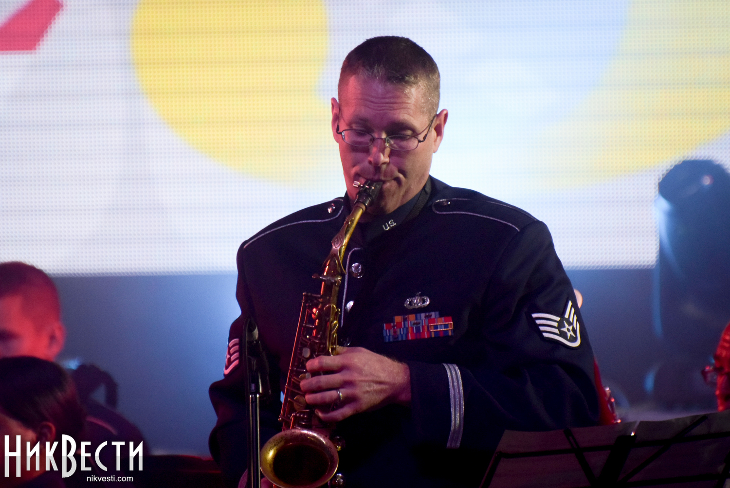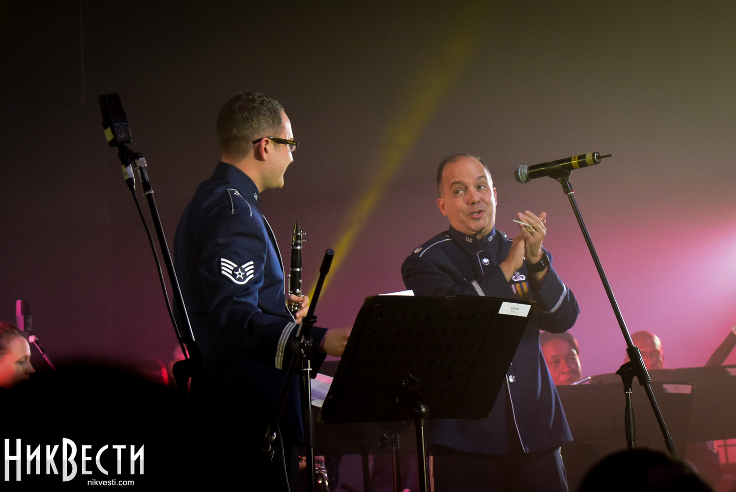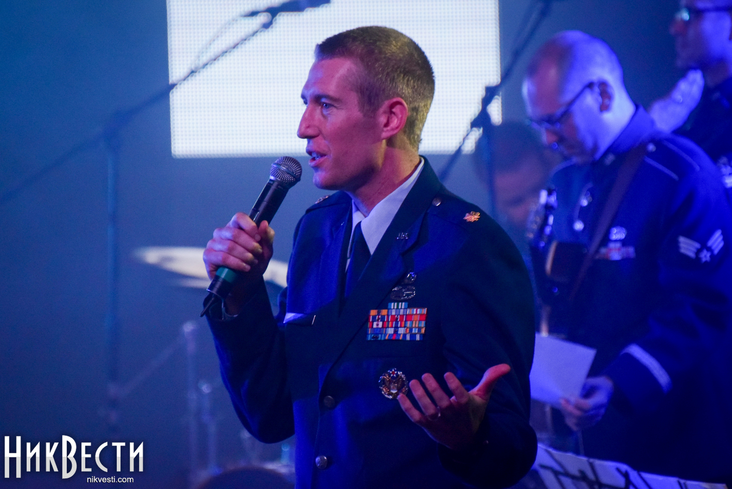 – Для нас это большое удовольствие выступать в Николаеве. Нам очень понравилось время, проведенное в вашем городе. Очень жаль, что мы не можем задержаться здесь подольше. Николаев – это замечательное место. Сегодня мы исполним разную музыку – от американского джаза до традиционной украинской музыки и всемирно известного рок-н-ролла. Мы обратимся к языку музыки, чтобы объединить культуры США и Украины, – сказал ведущий программы и один из участников оркестра.