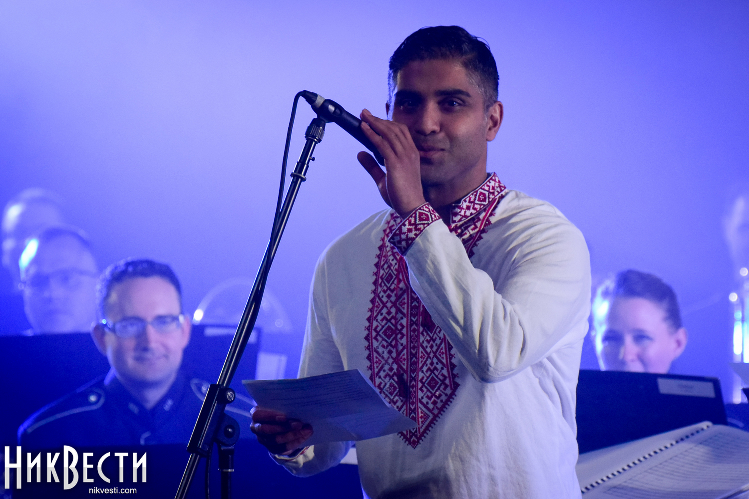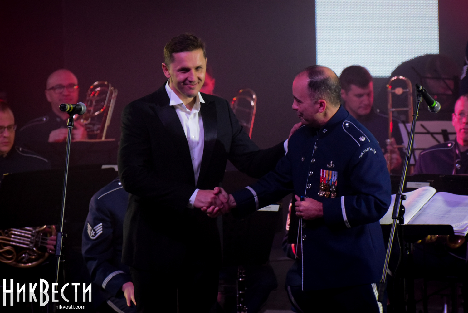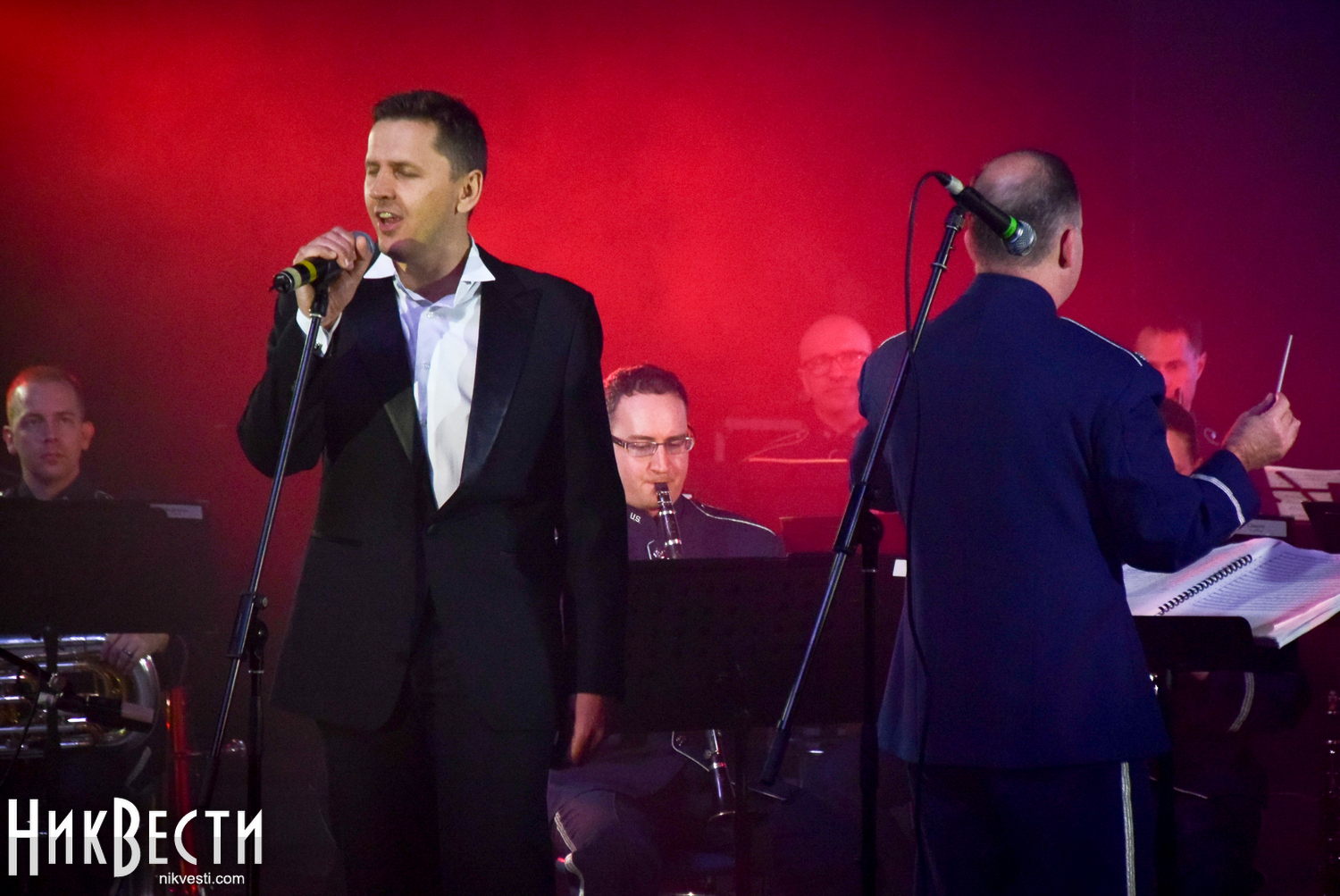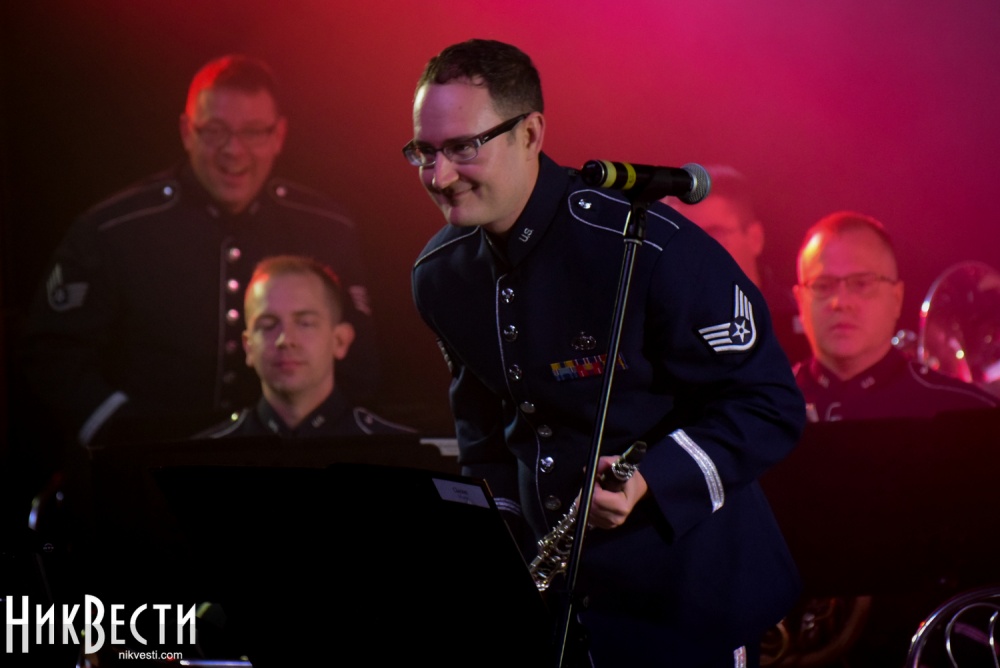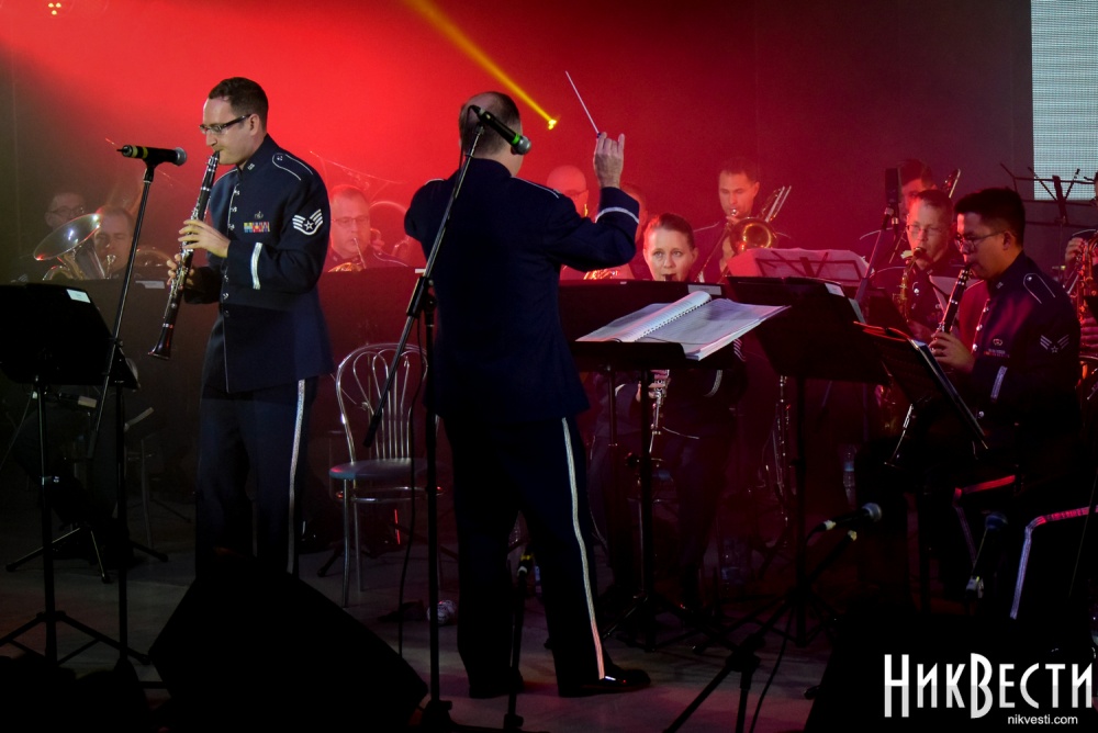 – Для нас это большое удовольствие выступать в Николаеве. Нам очень понравилось время, проведенное в вашем городе. Очень жаль, что мы не можем задержаться здесь подольше. Николаев – это замечательное место. Сегодня мы исполним разную музыку – от американского джаза до традиционной украинской музыки и всемирно известного рок-н-ролла. Мы обратимся к языку музыки, чтобы объединить культуры США и Украины, – сказал ведущий программы и один из участников оркестра.