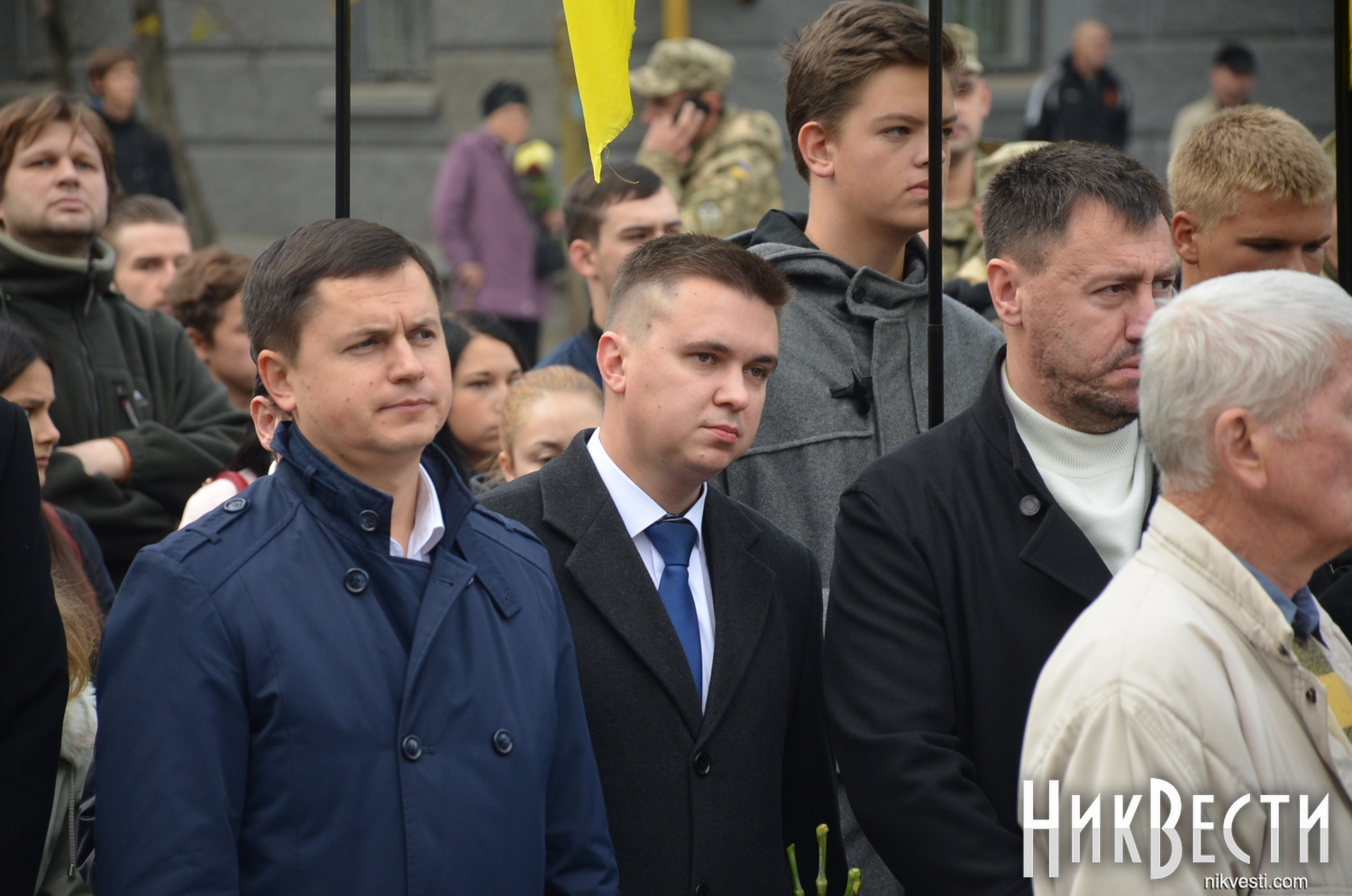В возложении также приняло участие руководство города и области: первый вице-губернатор Вячеслав Бонь, глава Николаевского облсовета Виктория Москаленко, первый зампред облсовета Иван Кухта, первый вице-мэр Николаева Андрей Дадиверин, заместители городского головы Евгений Шевченко и Юрий Степанец, главы Центральной и Ингульской районных администраций Александр Береза и Светлана Гладун, депутаты горсовета, руководство Нацполиции и прокуратуры области, сообщает корреспондент НикВестей.