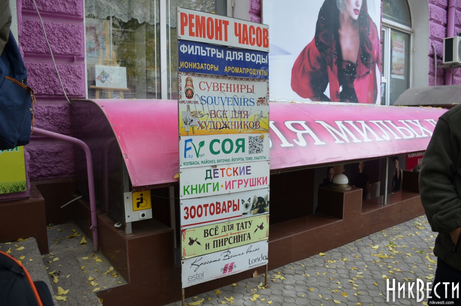 Согласно решению исполкома Николаевского горсовета от 12 июня 2015 года №496, штендеры не должны превышать размеры 90х70 сантиметров и стоять на пешеходной или зеленой зонах, мешая людям ходить. Руководствуясь этим решением, сотрудники заходили в каждое заведение, рекламный штендер к которому размещен не по закону либо не соответствует принятым нормам размера.