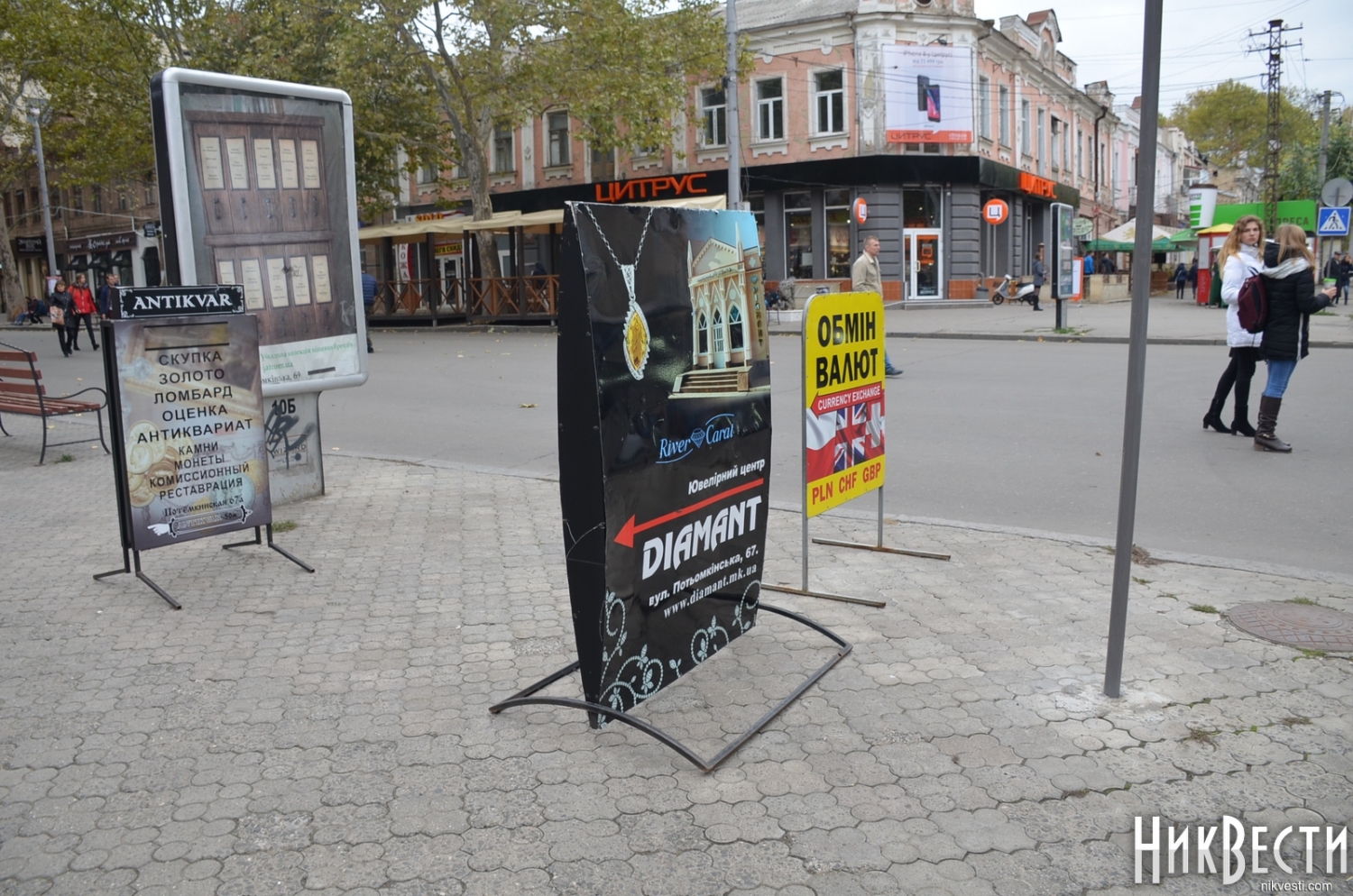 Сегодня, 2 ноября, в Николаеве, на улице Соборной прошел рейд на предмет нелегально и самовольно установленных рекламных конструкций. В ходе рейда было убрано несколько десятков штендеров, которые были выставлены на пешеходной зоне, либо не соответствовали размеру, установленому исполнительным комитетом Николаевского городского совета.
