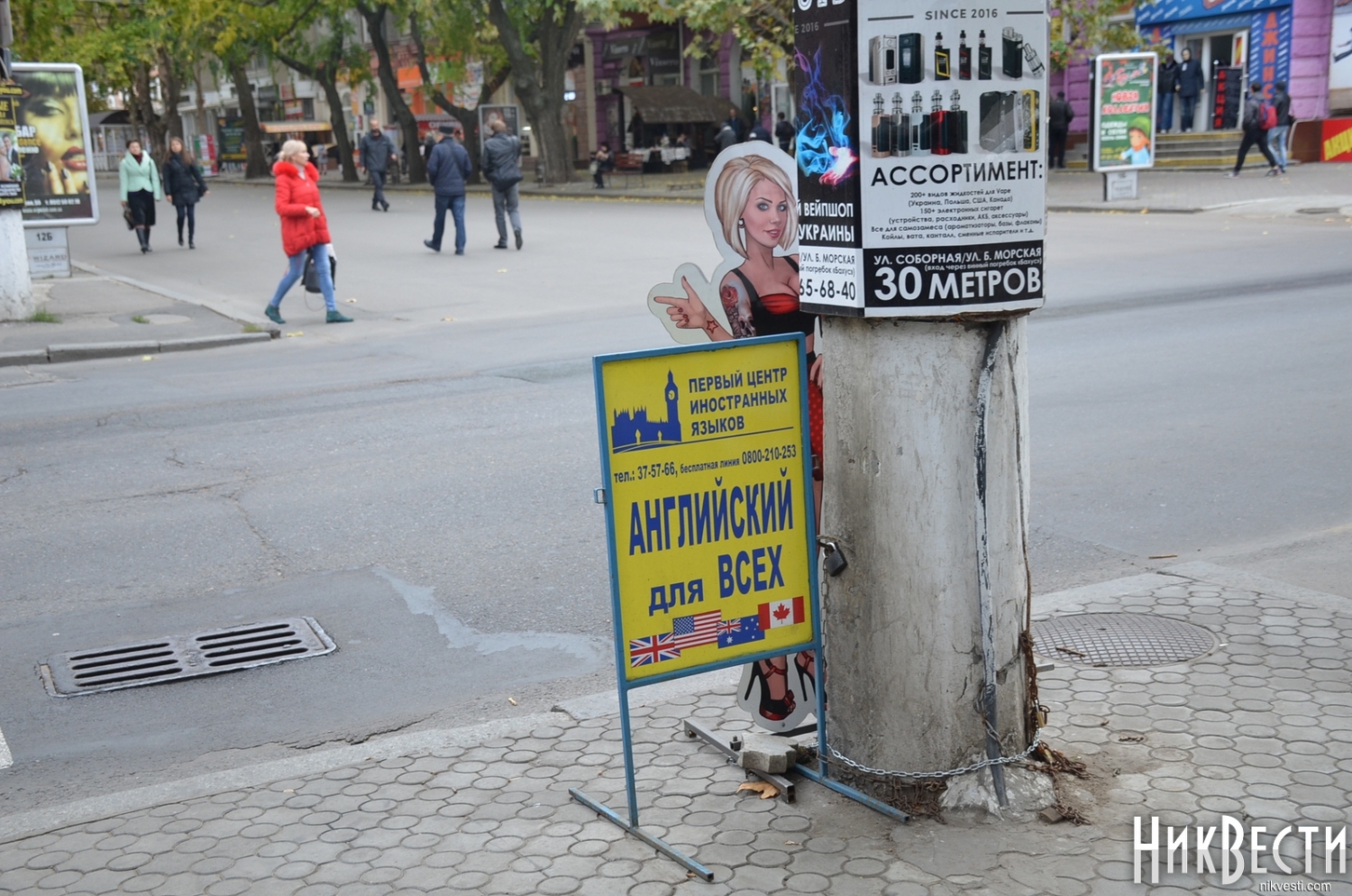 Николаев без рекламы: на Соборной улице устроили рейд по нелегально размещенным рекламным конструкциям