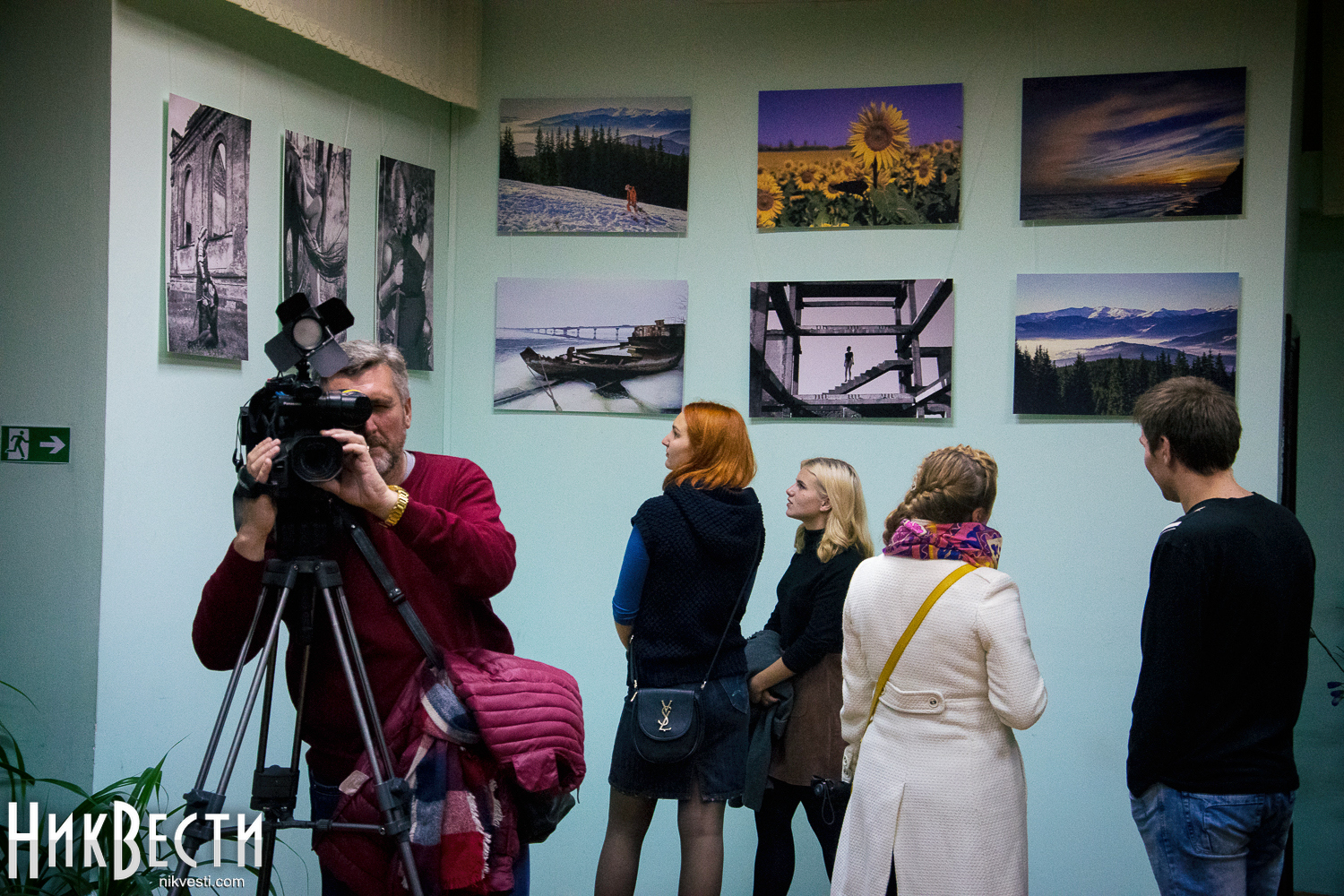 Константин Картузов, организатор выставки и директор библиотеки, рассказал, что первое название родилось из стихотворения Дмитрия Креминя, которое начинается со строчки «Небесне і земне. Земне й небесне…» Каждую фотографию он предложил рассматривать как намек на историю, которая разворачивается на глазах зрителей, причем с открытым финалом, передают НикВести.