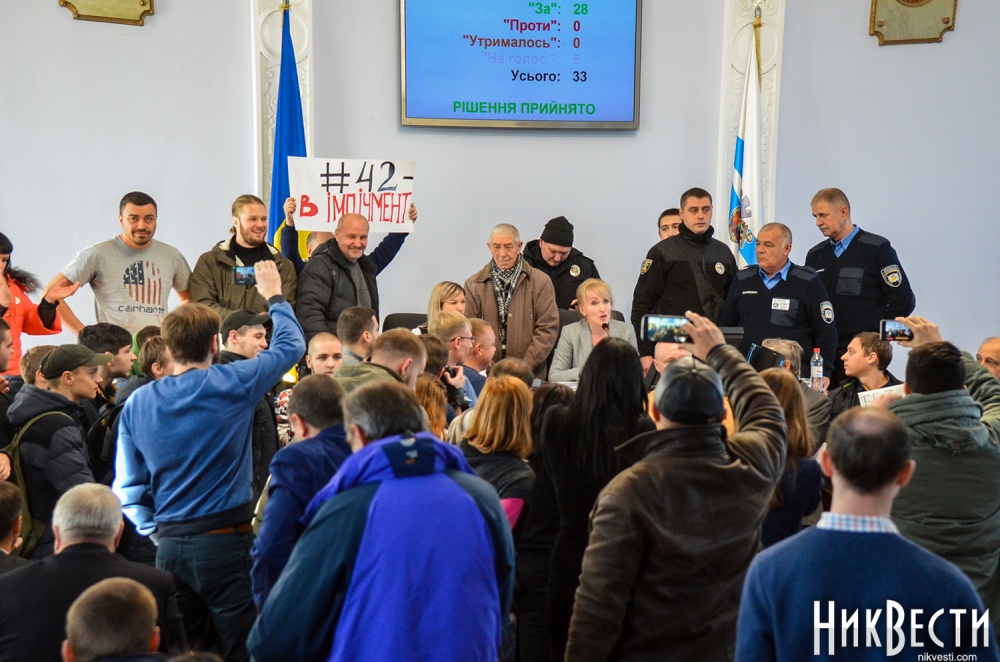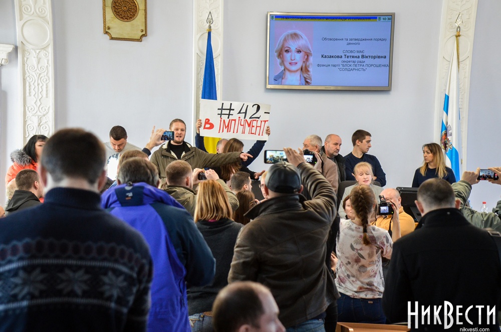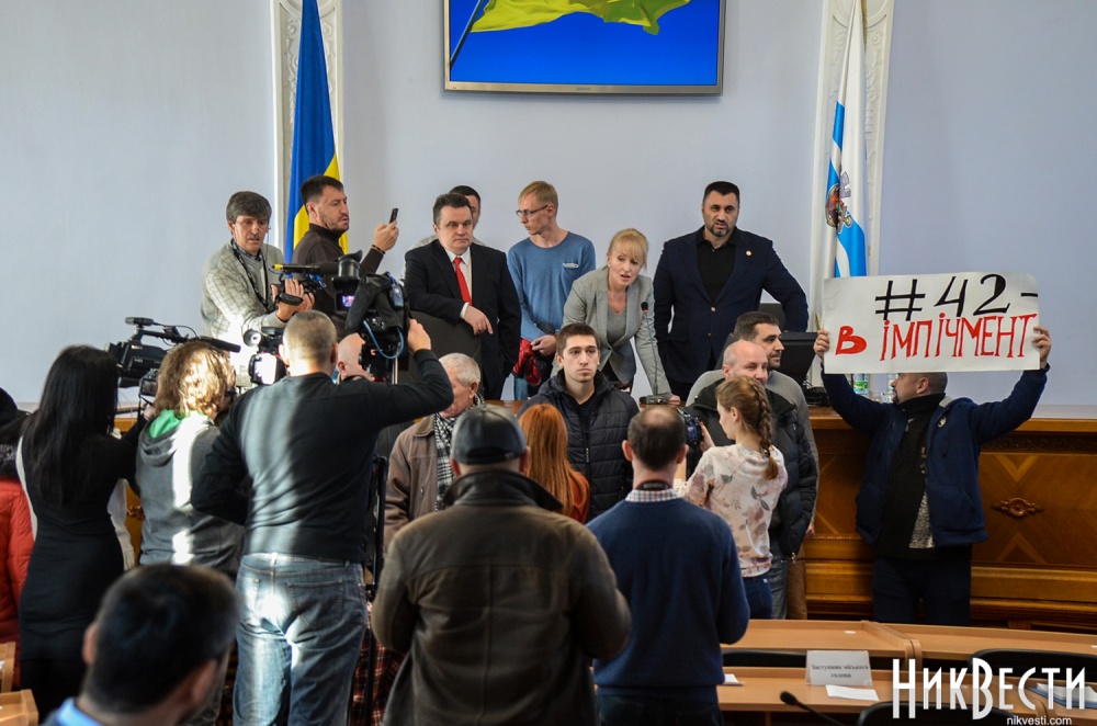 Депутаты Николаевского городского совета дважды проголосовали против выступления на сегодняшней сессии активистов, поддерживающих бывшего мэра Николаева Александра Сенкевича.